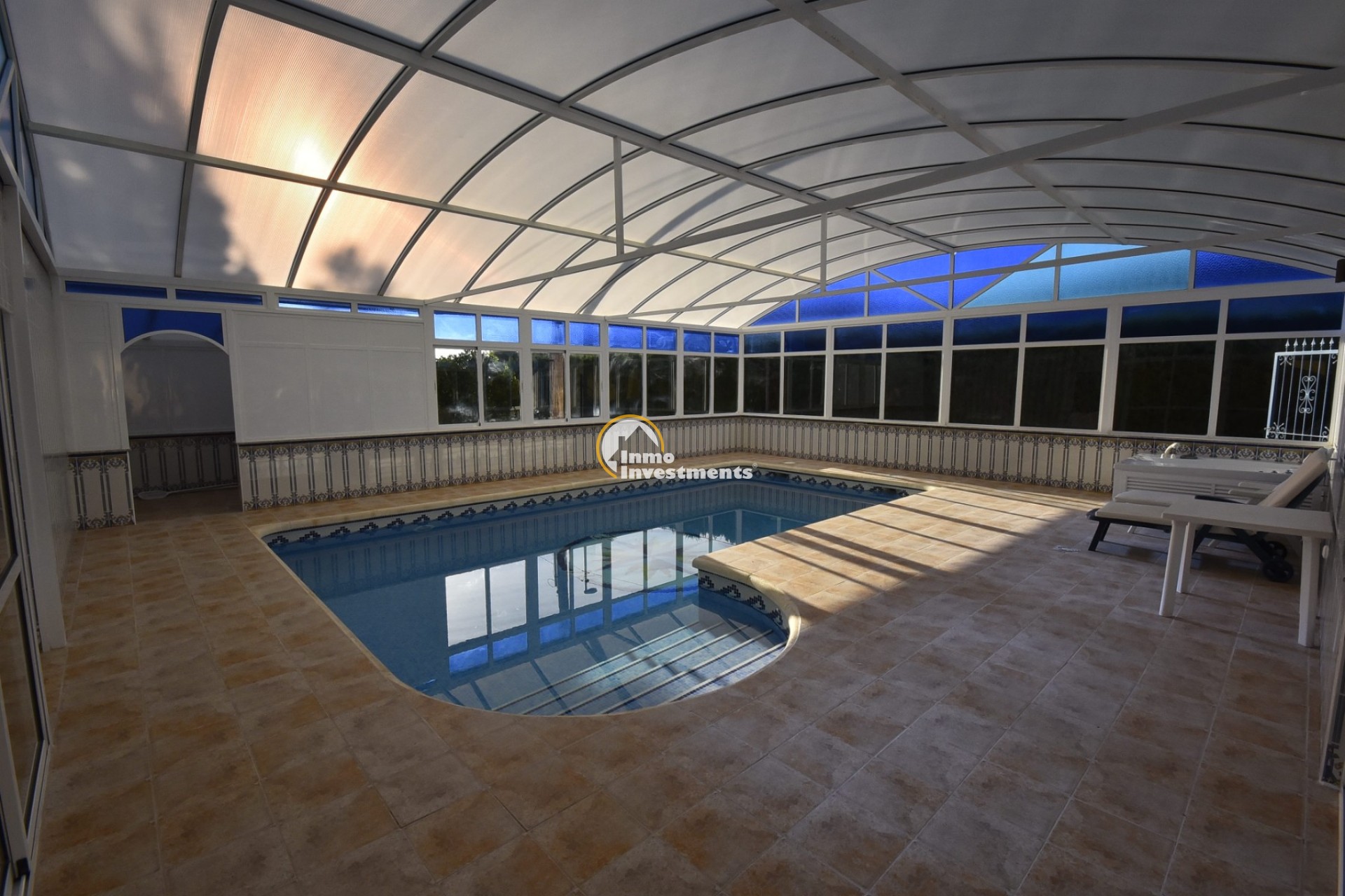 Hacienda mit einzigartigem Bergblick und absoluter Privatsphäre in La Matanza, Orihuela Beschreibung der Immobilie Dieses spektakuläre Landhaus bietet spektakuläre Ausblicke auf die Berge Orihuela und Abanilla, inmitten einer Oase des Friedens, der Ruhe und der Entspannung. Das Grundstück, auf dem sich das Herrenhaus befindet, hat eine Fläche von 13.627 m2. Das gesamte Gebäude besteht aus einem Herrenhaus (430 m2), einem Personal- oder Gästehaus mit Außenterrasse (75 m2) und einem Lagerhaus (181 m2). Darüber hinaus verfügt das Haus über einen Garten mit Olivenbäumen, Palmen, Tannen, Zypressen, Zitronen- und Orangenbäumen. Das Erdgeschoss der Luxusvilla hat eine Fläche von 190 m2 und umfasst 3 Schlafzimmer, 2 Badezimmer, ein Wohnzimmer, eine Waschküche und eine große Küche. Es verfügt außerdem über einen riesigen Innenhof mit einem 4 x 9 Meter großen Innenpool (mit Whirlpool, Duschen und Toiletten) und zwei voll ausgestatteten Küchen, eine außerhalb des Wohnzimmers und die andere in der Nähe der Küche. Swimmingpool mit Granittisch und Stühlen des gleichen Typs. Im Untergeschoss (240 m2) gibt es außerdem 1 Schlafzimmer, 1 Badezimmer, 1 Keller und auch Räume, in denen Spiele, Fitnessraum und Büros eingerichtet werden können, sowie 1 Garage. Wir können garantieren, dass alle Freunde und Familie von Ihrem Landhaus beeindruckt sein werden. Das Personal- oder Gästehaus verfügt über 2 Schlafzimmer, 1 Küche, 1 Wohnzimmer, 1 Badezimmer und eine Außenterrasse. Die Garage kann als Büro, Arbeitszimmer oder Hobbyraum genutzt werden Diese Immobilie wurde in besonderer Weise konzipiert und für Kunden konzipiert, die abseits von Hektik und Lärm, aber gleichzeitig in der Nähe von Städten, dem Flughafen, dem Golfplatz und dem Meer wohnen möchten. Details zur Lage der Villa auf der Karte: Die Hacienda befindet sich in La Matanza. Der Ort hat rund 1.100 Einwohner und gehört administrativ zur Kulturstadt Orihuela. Entfernung von der Stadt Orihuela ca. 91.000 Einwohner = 10 Kilometer Entfernung zur Stadt Murcia ca. 438.000 Einwohner = 29 Kilometer Entfernung zur Stadt Alicante ca. 335.000 Einwohner = 57 Kilometer Entfernung zum Flughafen Alicante = 50 Kilometer Entfernung zur Autobahnauffahrt Murcia-Alicante = 3 Kilometer Entfernung zum Meer =40 Kilometer Entfernung zu Golfplätzen = 24 Kilometer Für weitere Informationen stehen wir Ihnen jederzeit gerne zur Verfügung.