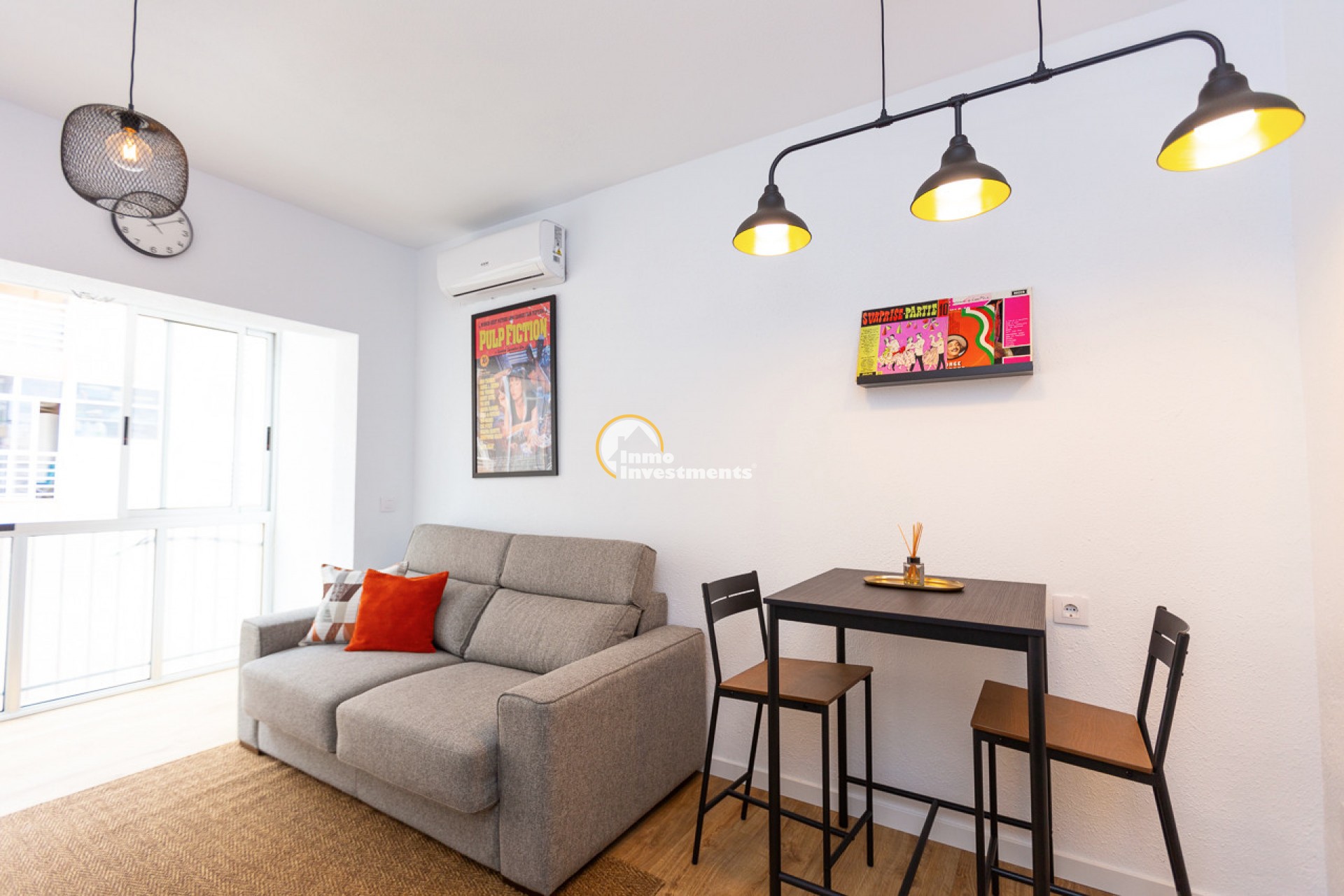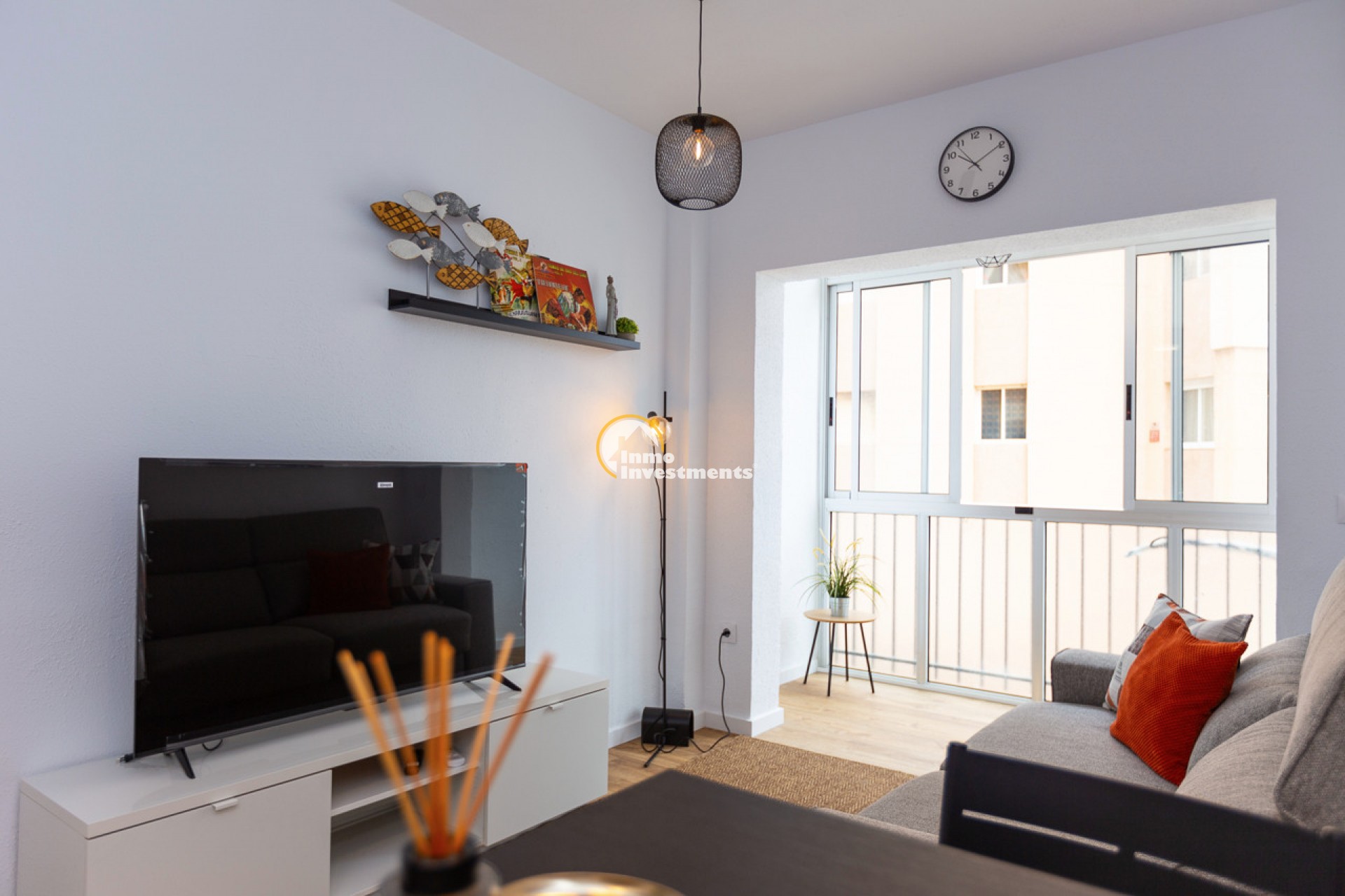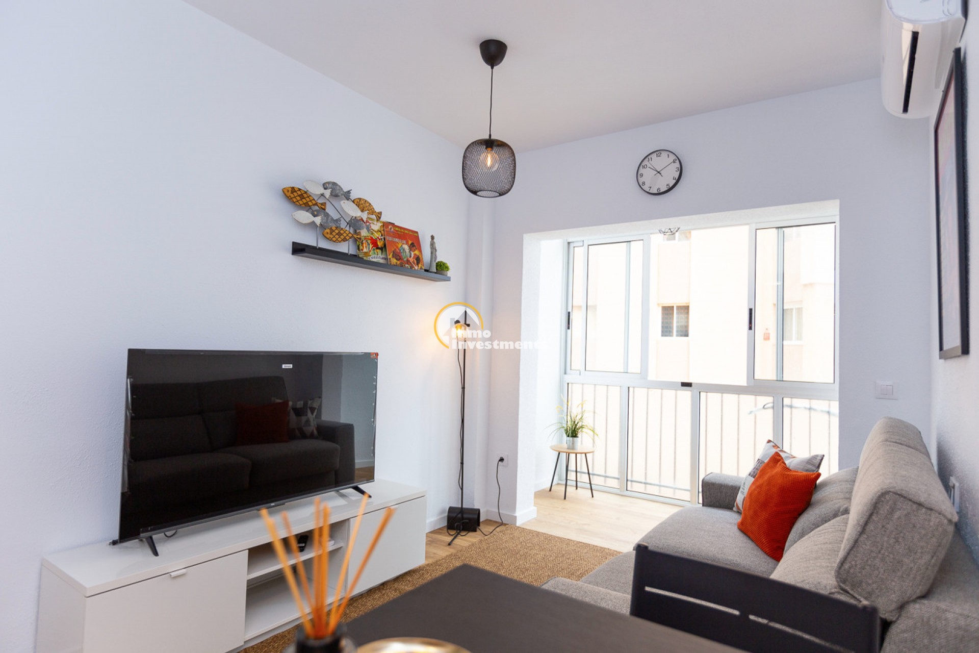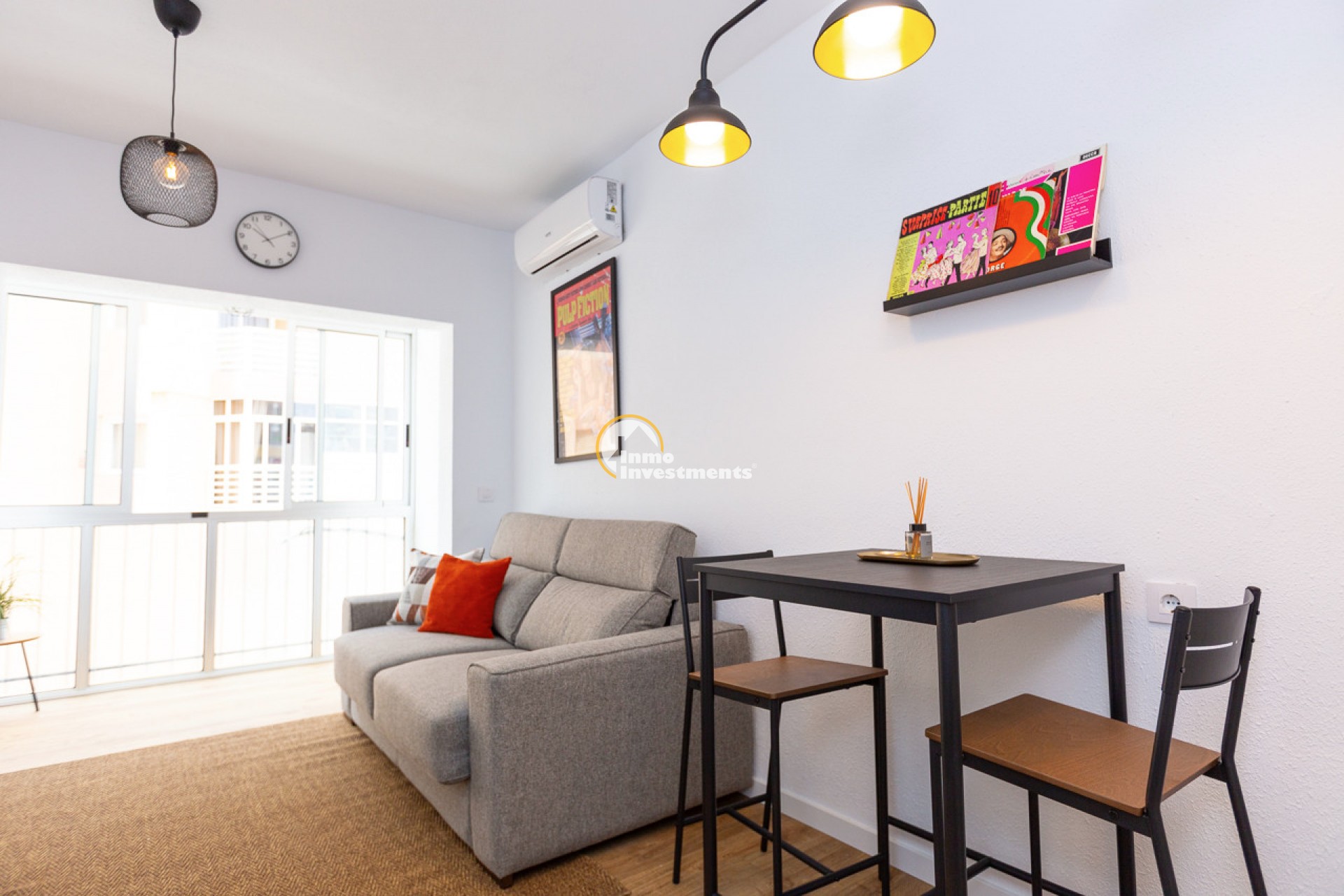 Zum Verkauf steht ein liebevoll und sorgfältig renoviertes Studio-Apartment in Torrevieja, nur wenige Gehminuten vom Playa de los Locos entfernt. Dieses gepflegte Zuhause bietet einen offenen Wohn-/Ess- und Schlafbereich mit Schlafsofa, ein verglaster Wintergarten schafft zusätzlichen Raum zum Entspannen, und die moderne Küchenzeile bietet viel Stauraum und Arbeitsfläche zum Kochen. Ein modernes Duschbad vervollständigt die Wohnung. Das Apartment wurde 2024 komplett in einem modernen und stilvollen Design renoviert, mit vielen Extras wie neuen Wasserleitungen, Elektrik, hochwertigen Einbaumöbeln und Parkettböden. Wird voll möbliert verkauft, alles neu, unbenutzt und im Originalzustand, einschließlich neuer kleiner Elektrogeräte, weißer Ware und einer Klimaanlage für warme und kalte Luft. Gelegen in einer sicheren, gepflegten Wohnanlage mit Aufzug für die Bewohner. Die Gemeinschaft bietet eine Tiefgarage; auch wenn diese Wohnung keinen eigenen Stellplatz hat, stehen derzeit Garagenplätze zur Miete zur Verfügung.