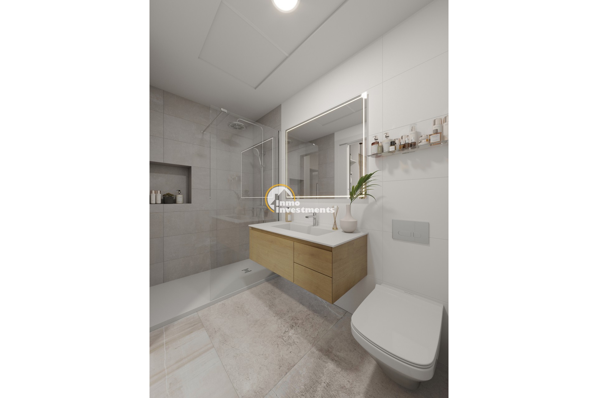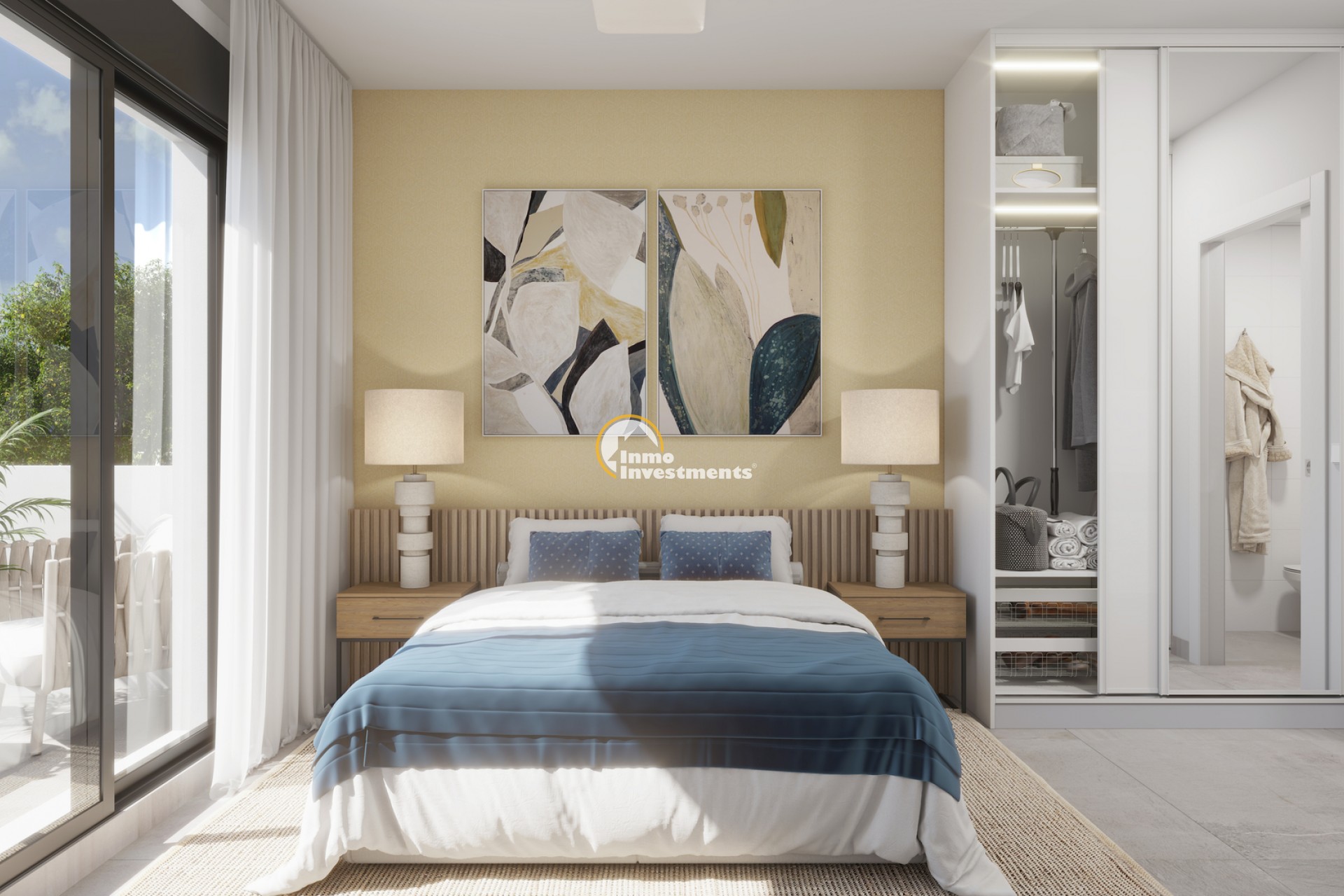 Das Innere der neu gebauten Villen in Los Alcázares ist so gestaltet, dass es geräumige, helle und moderne Räume bietet. Mit einer bebauten Fläche von 118m² und einer Wohnfläche von 100m² verfügen die Häuser über 3 Doppelschlafzimmer und 3 komplette Bäder. Das Erdgeschoss besteht aus einem hellen Wohn-/Esszimmer mit offener Küche, die mit allen notwendigen Geräten ausgestattet ist, und einem zusätzlichen Raum von 13m², der als drittes Schlafzimmer, separates Esszimmer oder Garage genutzt werden kann. Im ersten Stock befindet sich das Hauptschlafzimmer mit eigenem Bad, zwei Einbauschränken und Zugang zu einem Balkon, sowie ein weiteres Doppelschlafzimmer mit Einbauschränken und Zugang zu Balkonen. Ein drittes Badezimmer vervollständigt diese Etage. Eine Treppe führt hinauf zur privaten Dachterrasse. Die Villen sind bereits mit einer Klimaanlage, motorisierten Jalousien und Duschabtrennungen ausgestattet, um ein komfortables und funktionales Umfeld zu gewährleisten.