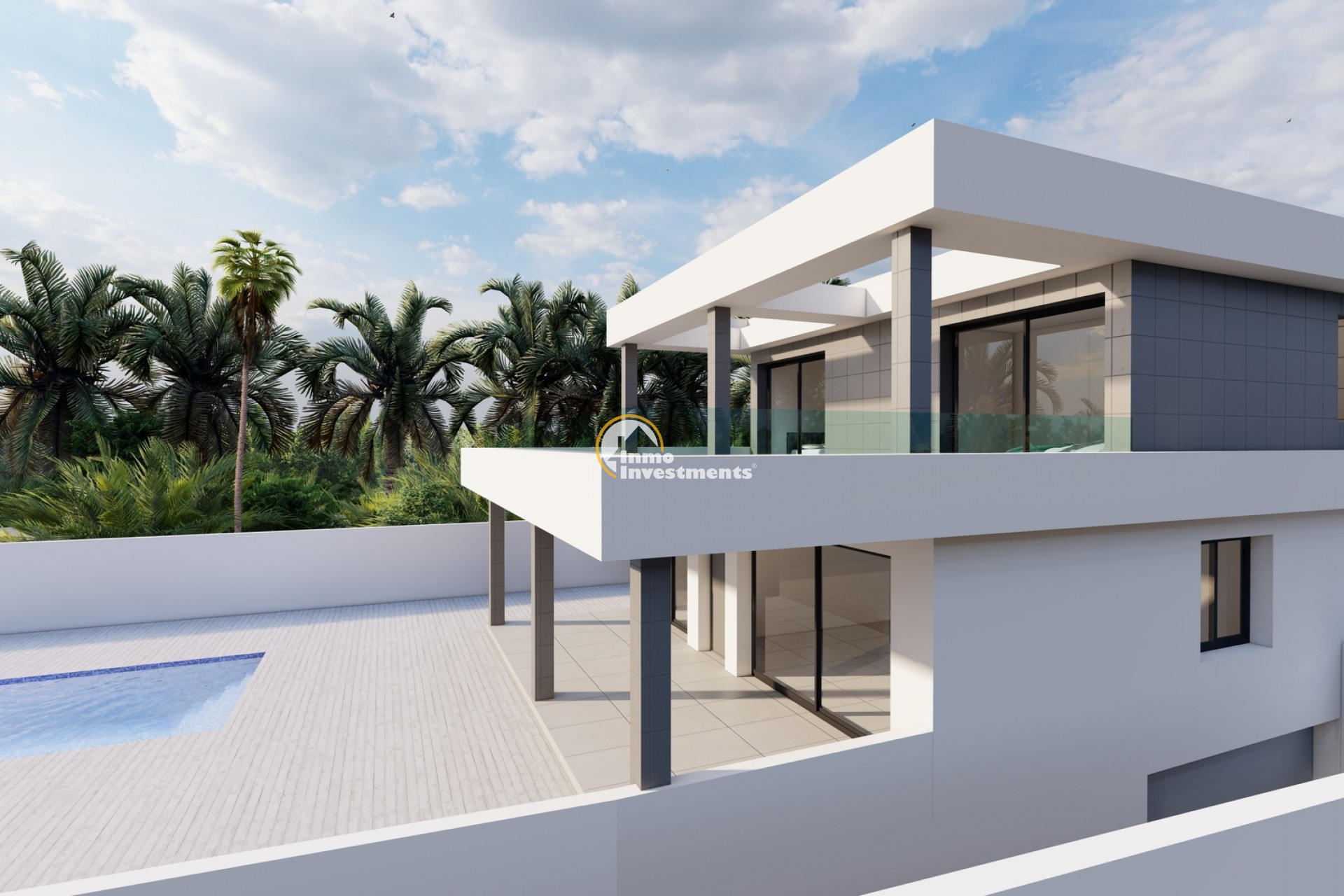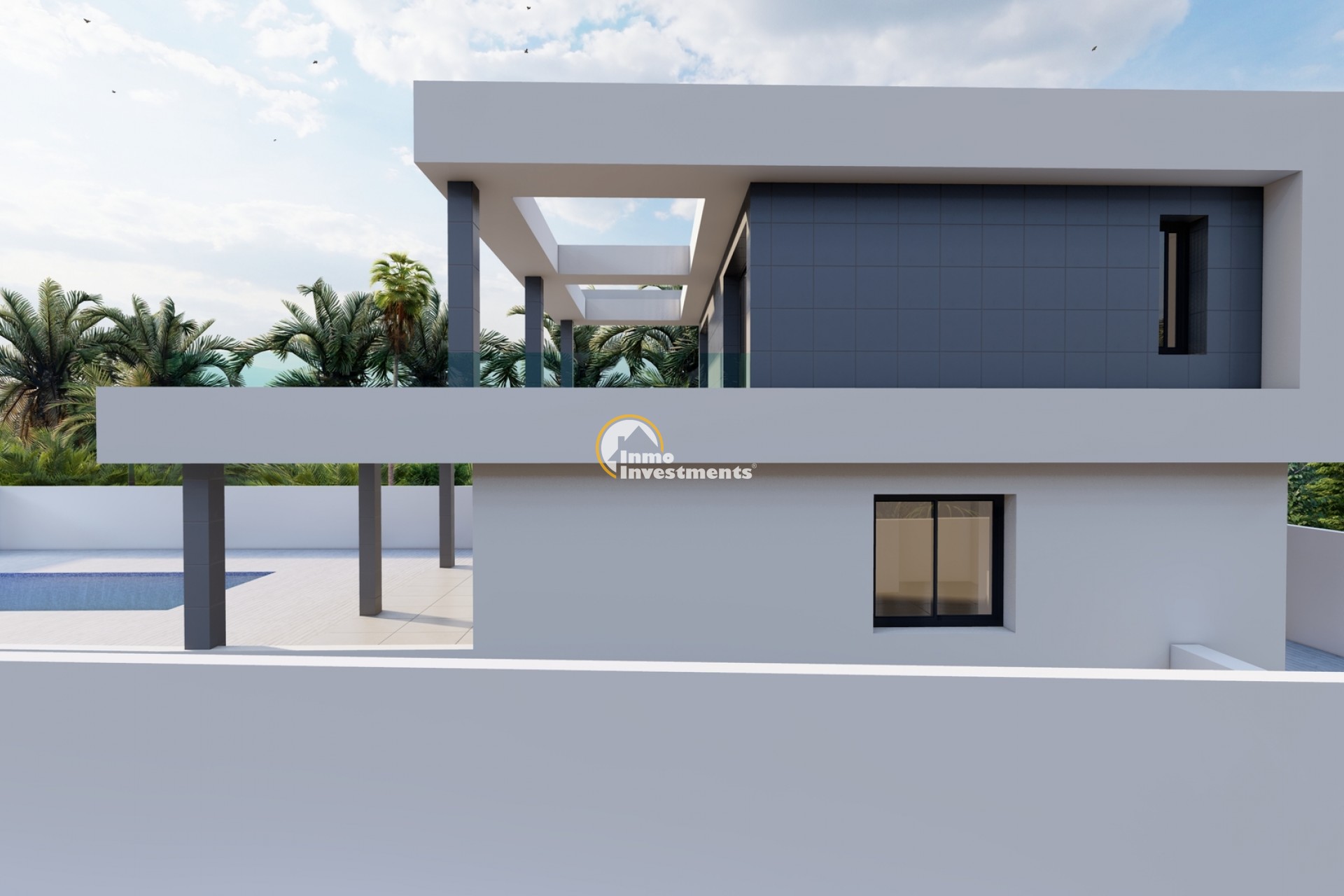 Das Innere der Villa ist so gestaltet, dass es möglichst viel natürliches Licht erhält und eine moderne und einladende Atmosphäre bietet. Im Erdgeschoss befinden sich ein geräumiges Wohnzimmer, das zur Küche hin offen ist, ein Schlafzimmer mit Zugang zum Außenbereich, ein Badezimmer und eine Waschküche. In der ersten Etage befinden sich zwei Schlafzimmer mit eigenem Bad und eine 40 m² große Terrasse. Die verwendeten Materialien sind von höchster Qualität, die Verarbeitung spiegelt die Liebe zum Detail und das elegante Design wider. Der geräumige Keller mit zwei Abstellräumen und einem Parkplatz bietet zusätzlichen Platz und Komfort.