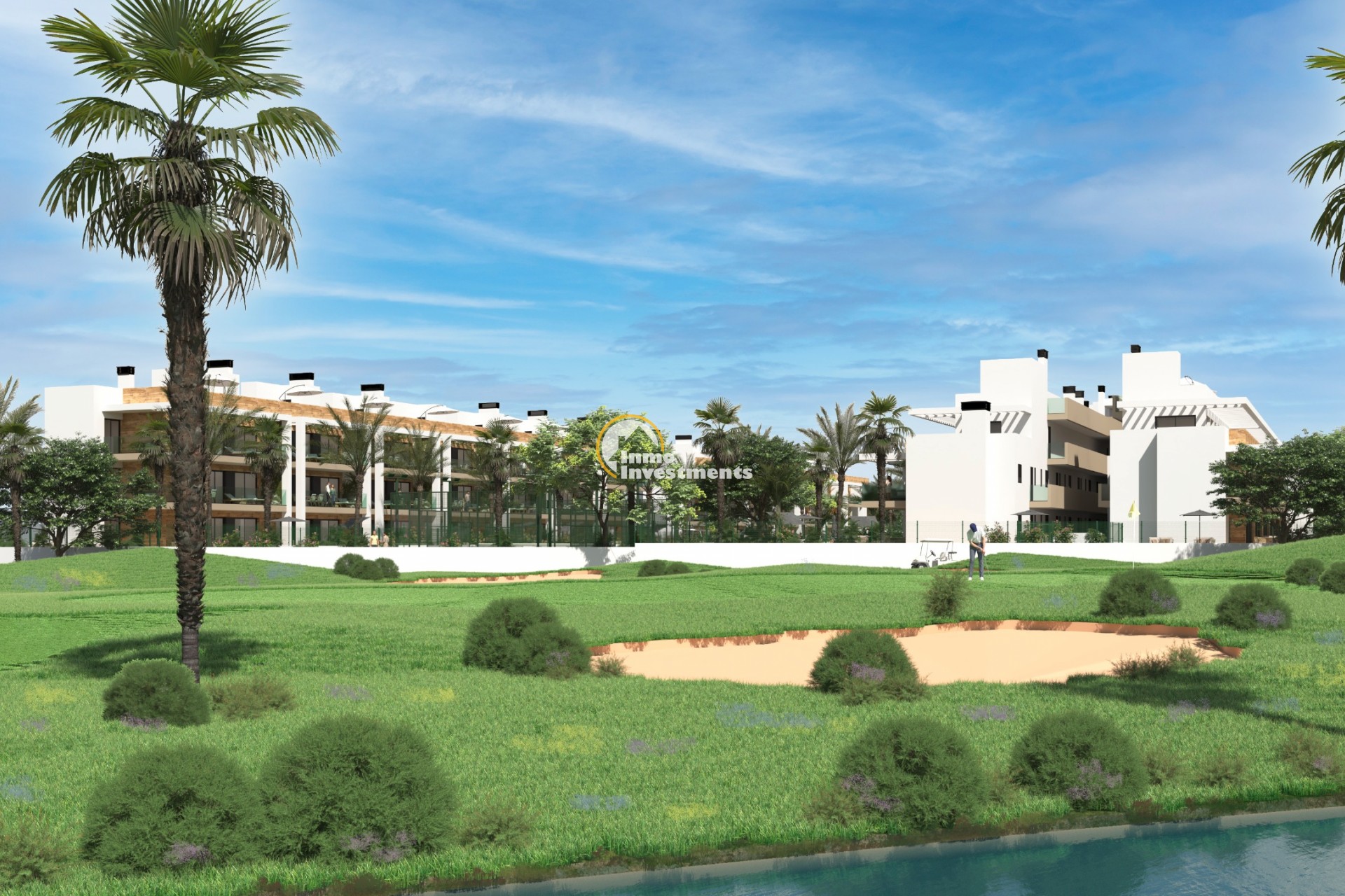 Neuer Wohnkomplex in der Nähe von La Serena Golf, Los Alcazares. Diese exklusive neue Wohnanlage besteht aus 244 Wohnungen mit 2 und 3 Schlafzimmern, die auf 8 Blöcke verteilt sind, sowie 20 privaten Villen. Die Wohnungen befinden sich in privilegierter Lage direkt am Golfplatz von La Serena und sind auf Komfort und Modernität ausgelegt. Den Bewohnern stehen Gemeinschaftspools, großzügige Gemeinschaftsbereiche und spektakuläre Ausblicke auf den Golfplatz und die umliegenden Grünflächen zur Verfügung. Zu jeder Wohnung gehören ein Parkplatz und ein privater Abstellraum. Die Übergabe der Immobilien ist für 2024 geplant und bietet eine einzigartige Gelegenheit, in einer der besten Gegenden der Costa Cálida zu leben.