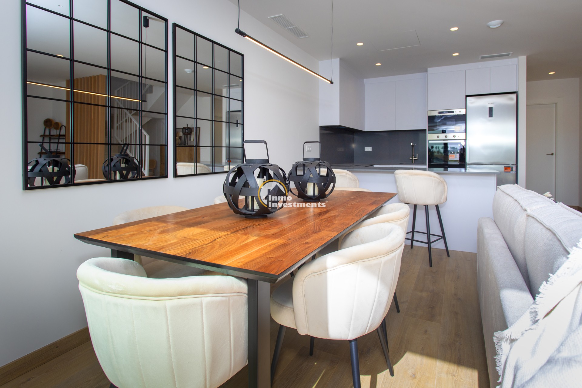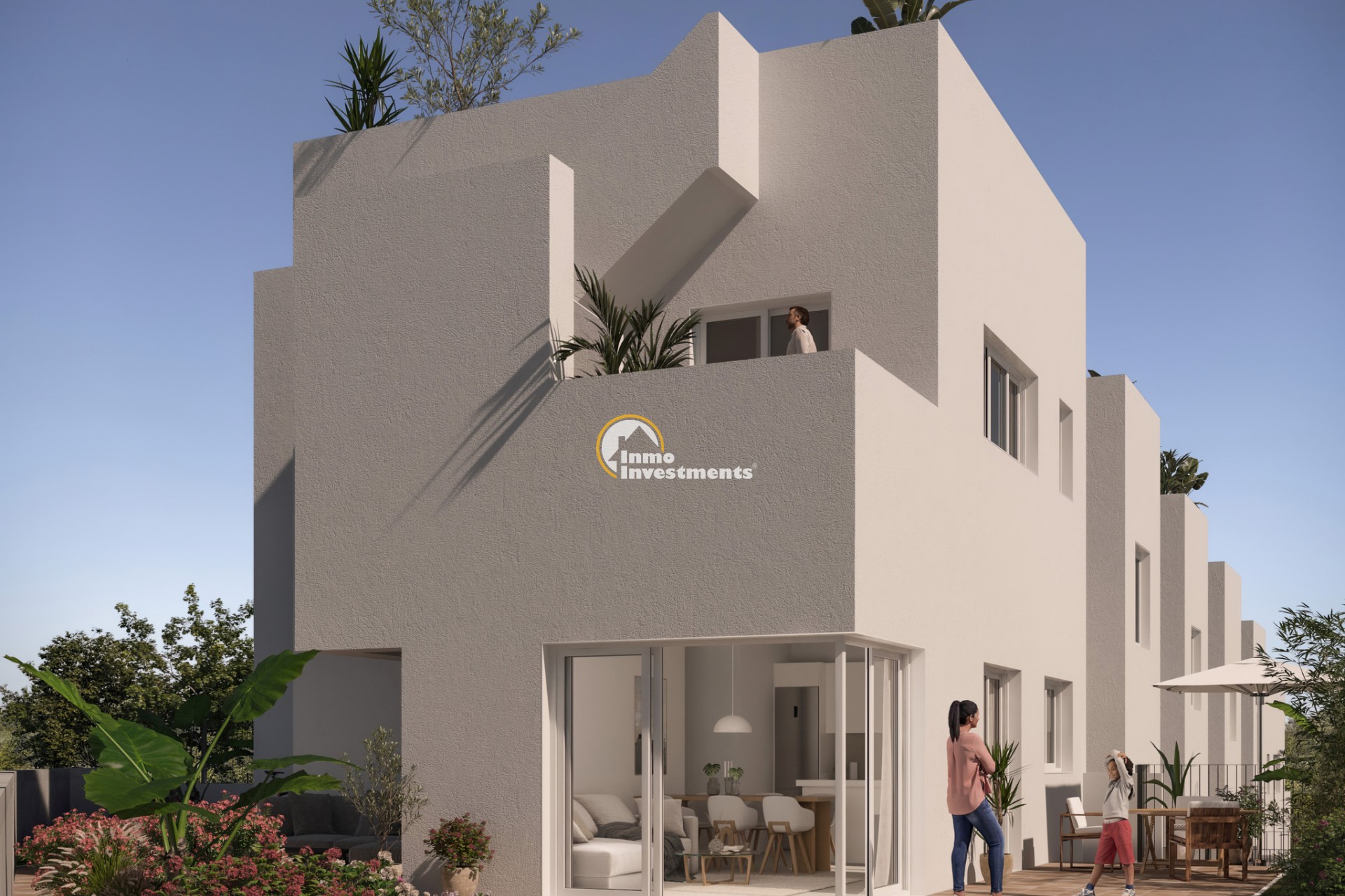 Alle Wohnungen haben einen eigenen Garten auf dem Grundstück, eine Dachterrasse und eine Garage. Die Häuser verfügen über eine vollständige aerothermische Energieversorgung, ein erneuerbares Energiesystem, das externe Umweltenergie nutzt. Sie haben die Wahl zwischen vier verschiedenen Wohnungstypen.