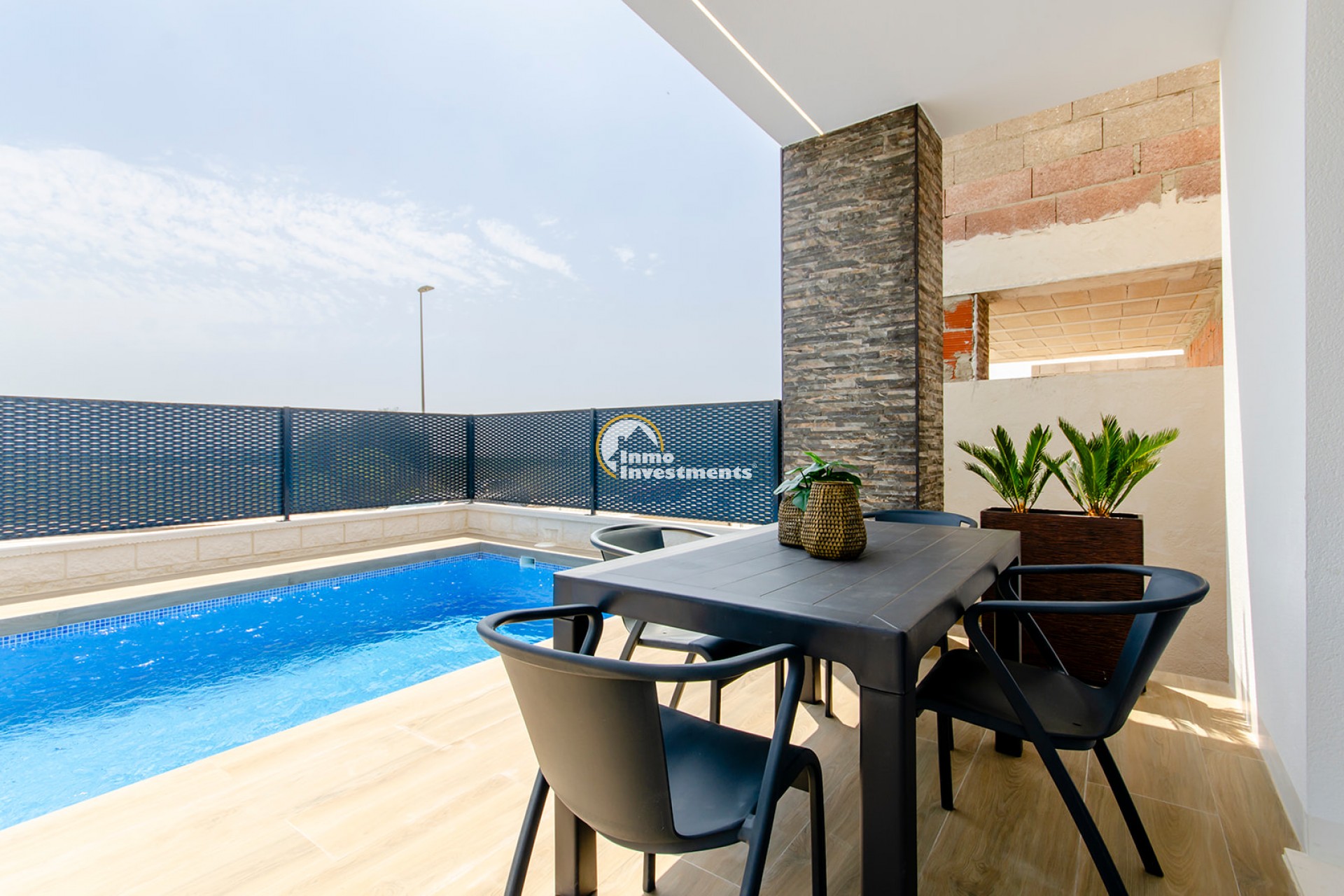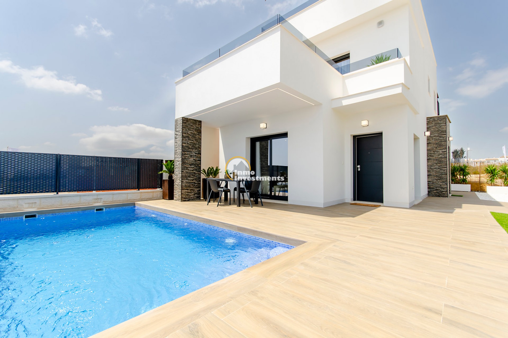 Die Villen stehen auf großen Grundstücken mit mindestens 174 m2 mit Gartenbereich, privatem Swimmingpool und Parkplatz für das Auto. Im Inneren bestehen die Villen aus 3 Schlafzimmern, 3 Bädern und einem geräumigen Wohnzimmer mit offener Küche. Auf dem Dach befinden sich Sonnenkollektoren und es besteht die Möglichkeit, eine zusätzliche Dachterrasse anzulegen, auf der Sie den ganzen Tag über die spanische Sonne genießen können. Darüber hinaus verfügen alle Villen über voll ausgestattete Badezimmer mit Fußbodenheizung, eine voll ausgestattete Küche mit allen Geräten, Einbauschränke und elektrische Jalousien.