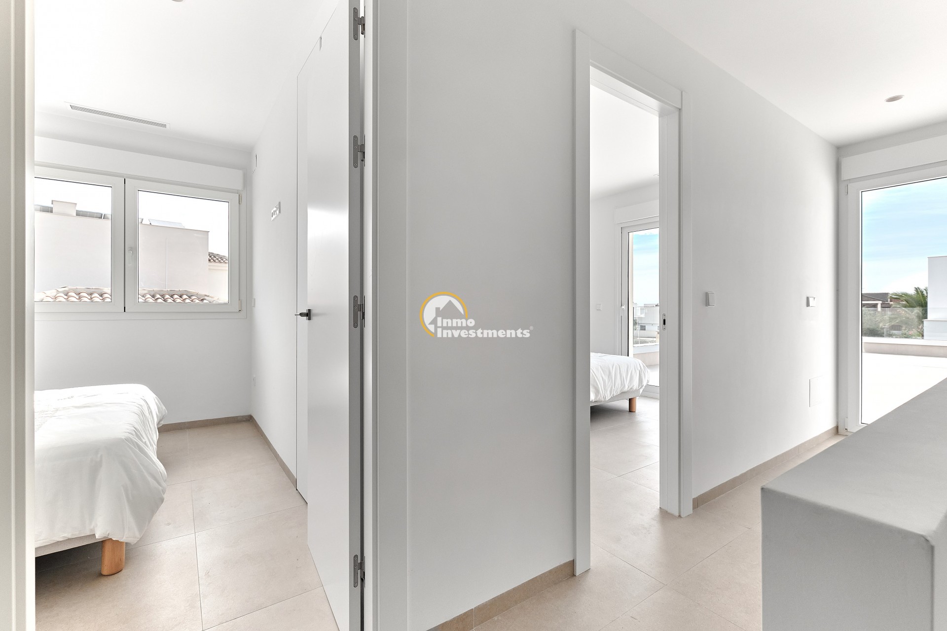 Die 142 m² große Villa verfügt über drei Schlafzimmer, darunter eine spektakuläre Master-Suite mit Ankleideraum, zwei Badezimmer und ein Gäste-WC. Der Wohnbereich vereint Wohnzimmer, Esszimmer und offene Küche in einem einzigen, fließenden und lichtdurchfluteten Raum, dank seiner großen Fenster. Das integrierte Hausautomationssystem macht es einfach, Licht und Jalousien zu steuern und bietet zusätzlichen Komfort, Energieeffizienz und Modernität. Es ist möbliert und mit Elektrogeräten, Klimaanlage und Heizung ausgestattet.