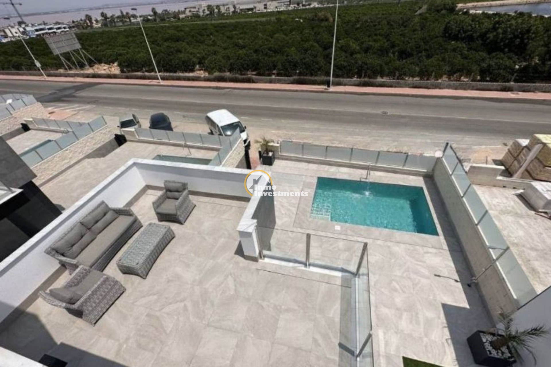 Eine luxuriöse 197 m² große Villa zum Verkauf in einer der besten Gegenden von Torrevieja – Los Altos!Hauptmerkmale: 3 Etagen mit geräumigem und elegantem Wohnraum, 3 Schlafzimmer, 3 Badezimmer. Privater Pool für eine gemütliche Pause mit atemberaubender Aussicht auf den rosa See, das Meer und die Orangenhaine. 90 m² große Garage – Möglichkeit, einen zusätzlichen Raum mit Bad zu schaffen. Große Terrasse und Solarium mit Panoramablick. Es verfügt über 12 Solarmodule (6 kW), 2 Speicherbatterien und einen Wechselrichter. Offizieller Stromverkauf an das Netz – minimale Stromrechnungen! Das Haus verfügt über eine Alarm- und Videoüberwachungsanlage.Ideale Lage: 5 Minuten – gute Schule, Kindergarten, Krankenhaus und große Supermärkte. Eine 10-minütige Autofahrt entfernt – das größte Einkaufszentrum, La Zenia BoulevardIdeal sowohl für das Familienleben als auch für den Urlaub.Rufen Sie uns an, um einen Besichtigungstermin zu vereinbaren!Wenn Sie einen virtuellen Rundgang oder einen Grundriss wünschen, zögern Sie bitte nicht, uns zu kontaktieren.Darüber hinaus ist es eine sehr gute Investition und wir unterstützen Sie dabei mit unserem erfolgreichen Saisonmietservice. Kontaktieren Sie uns für weitere Informationen.