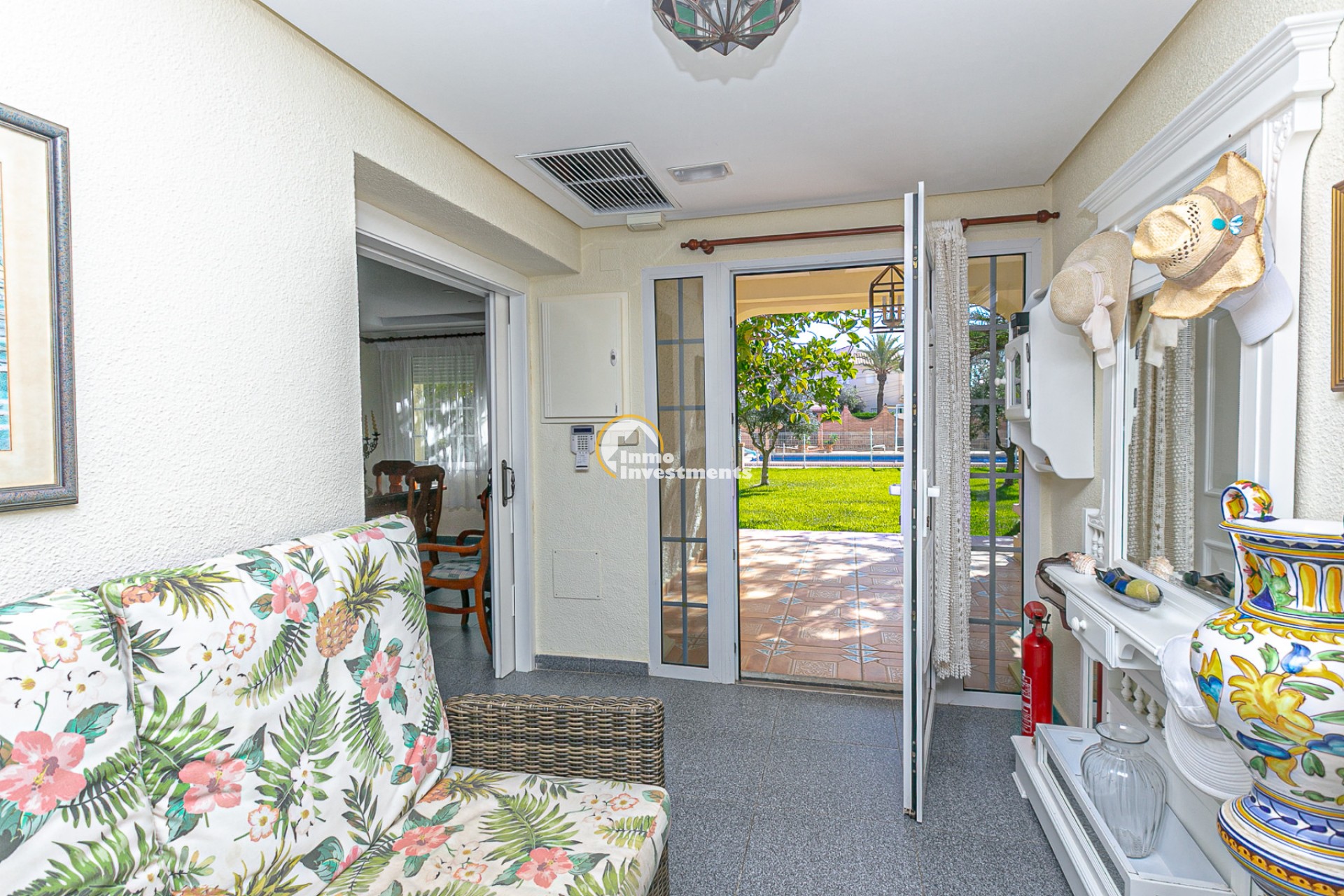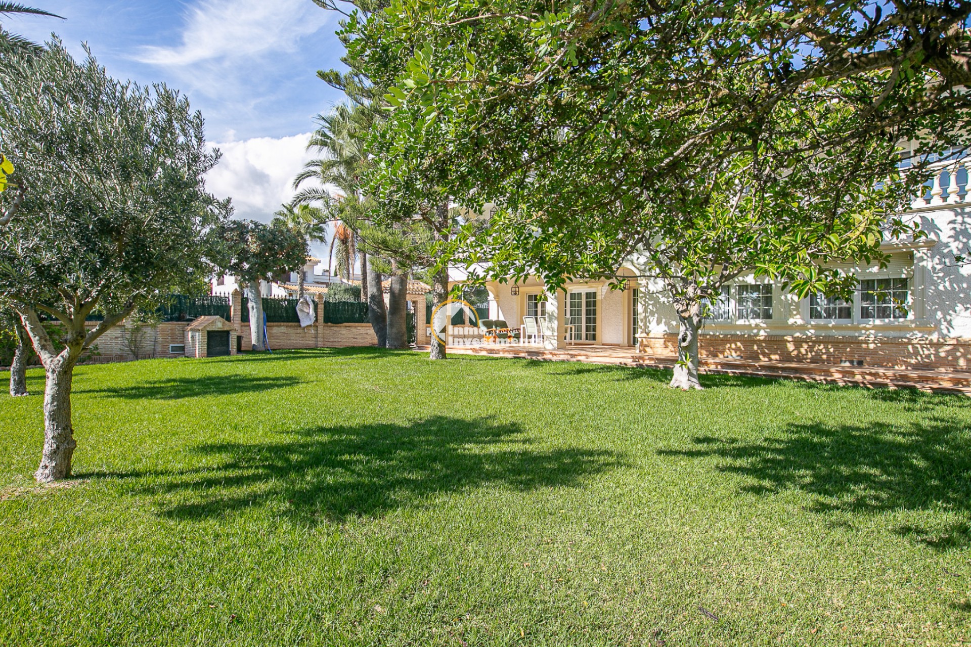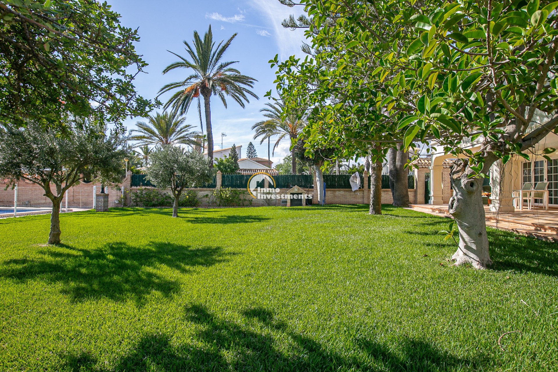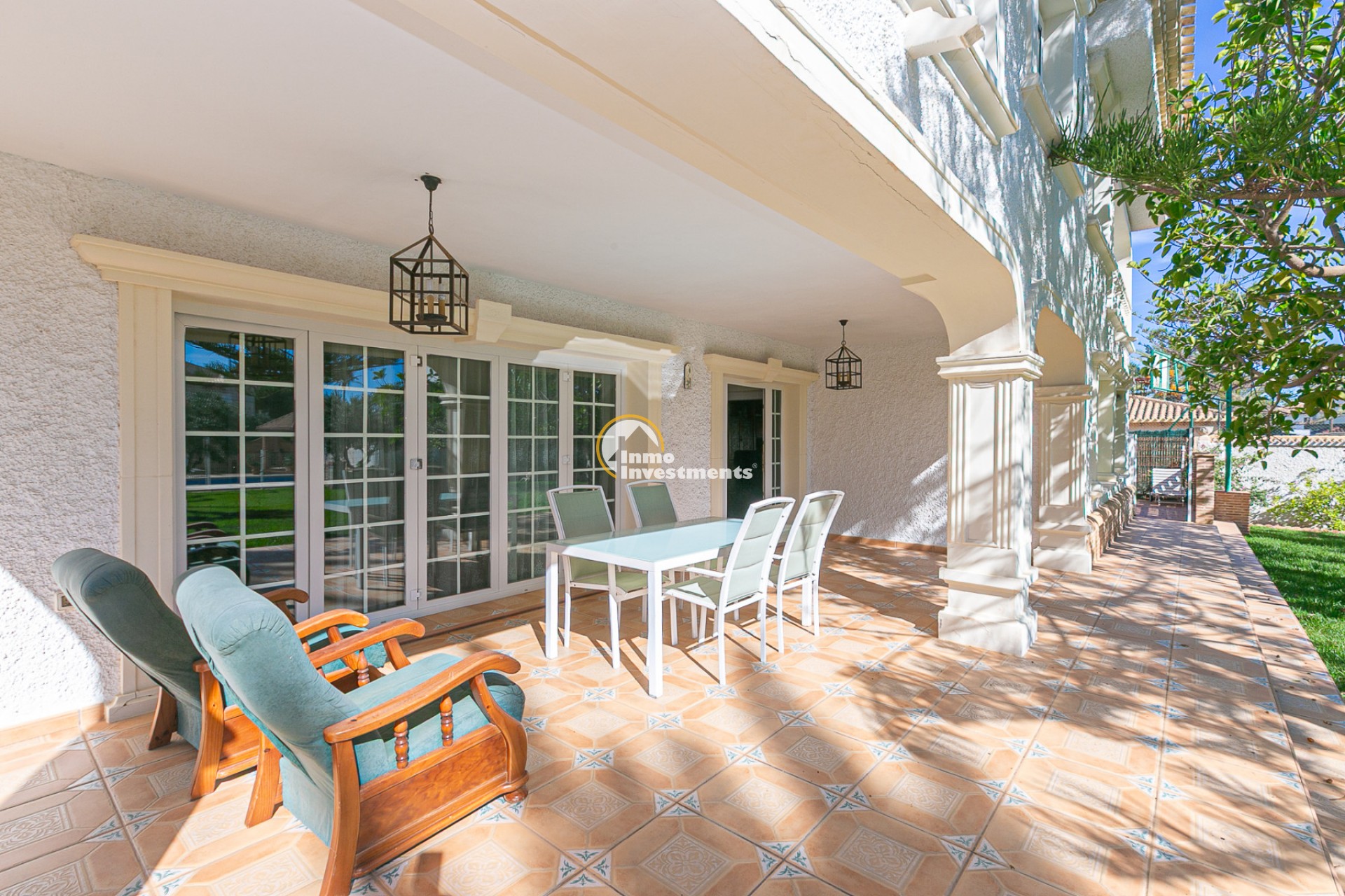 Der Außenbereich ist ein wahres Refugium. Ein gepflegter mediterraner Garten umgibt den privaten Swimmingpool und bietet die perfekte Umgebung zum Sonnenbaden, Entspannen oder für gesellige Abende im Freien. Mehrere Terrassen und überdachte Veranden laden dazu ein, das ganze Jahr über das milde Klima zu genießen. Eine Grillzone und Parkmöglichkeiten auf dem Grundstück runden das Angebot ab.