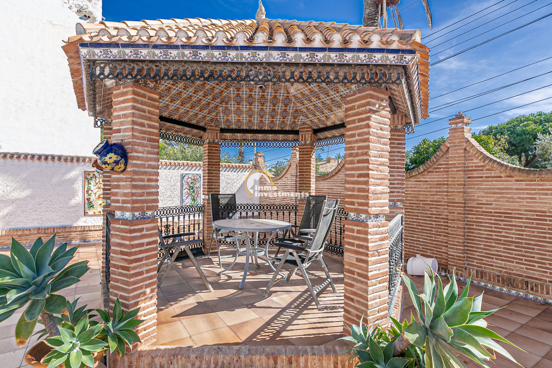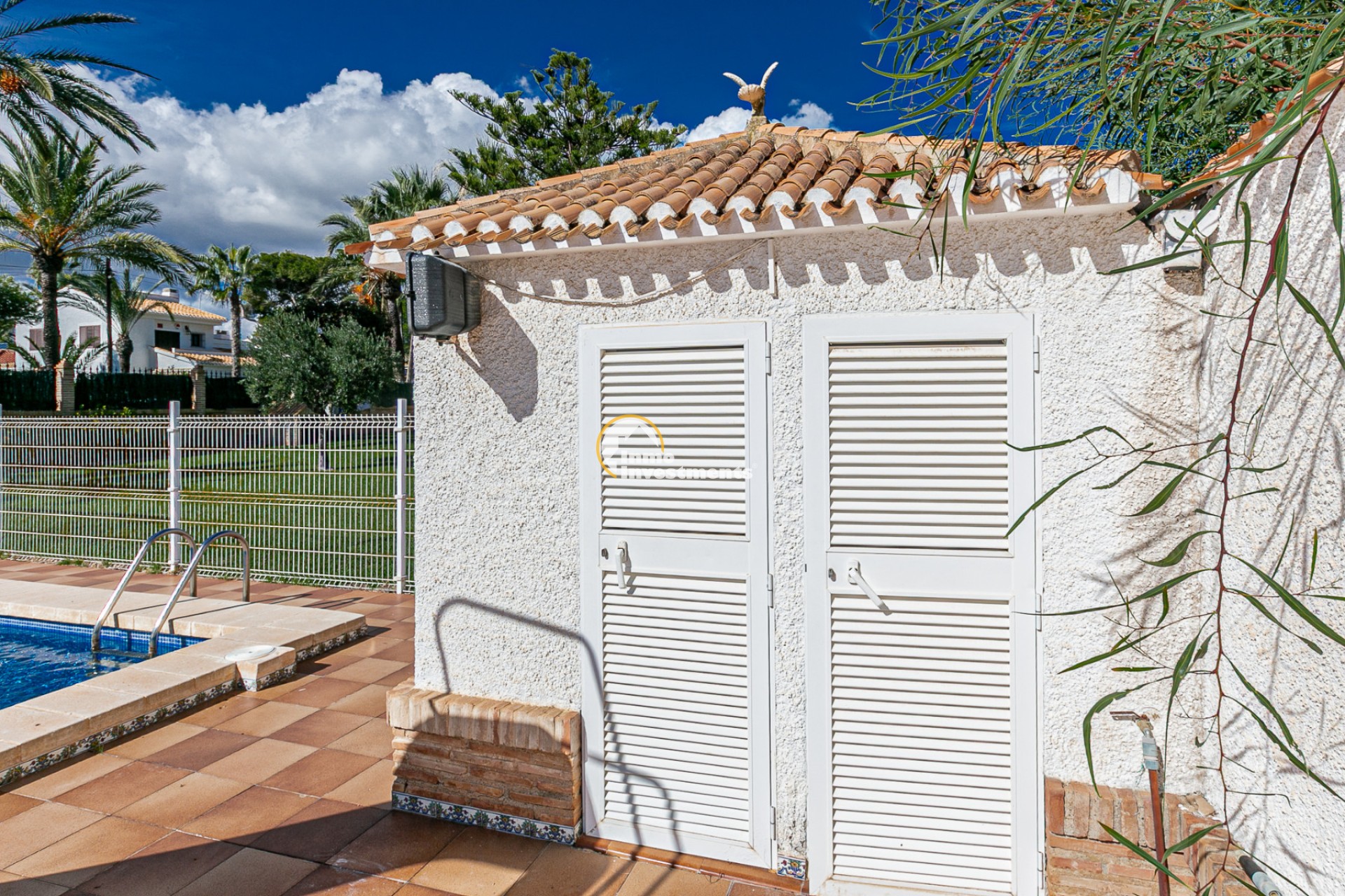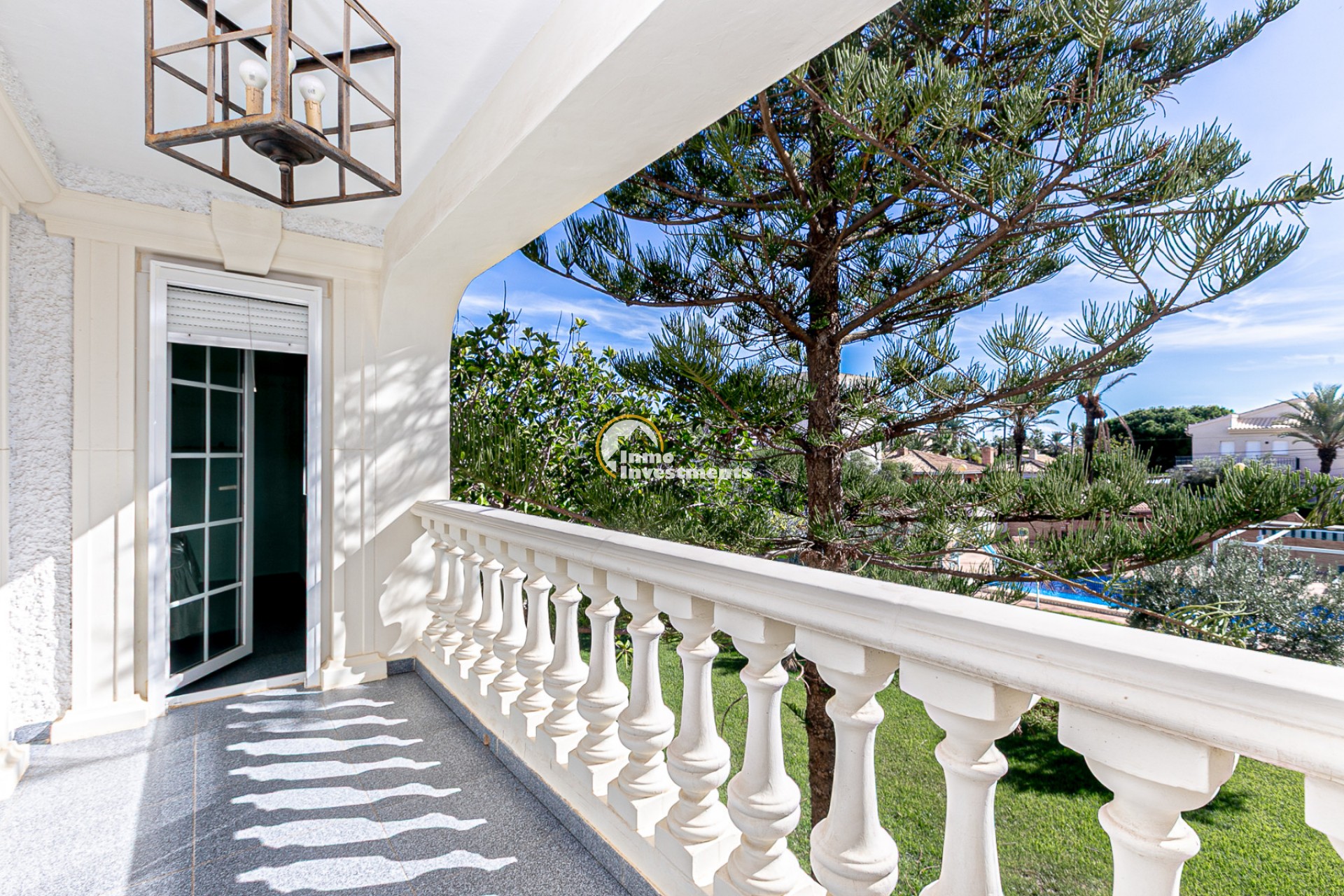 Der Außenbereich ist ein wahres Refugium. Ein gepflegter mediterraner Garten umgibt den privaten Swimmingpool und bietet die perfekte Umgebung zum Sonnenbaden, Entspannen oder für gesellige Abende im Freien. Mehrere Terrassen und überdachte Veranden laden dazu ein, das ganze Jahr über das milde Klima zu genießen. Eine Grillzone und Parkmöglichkeiten auf dem Grundstück runden das Angebot ab.