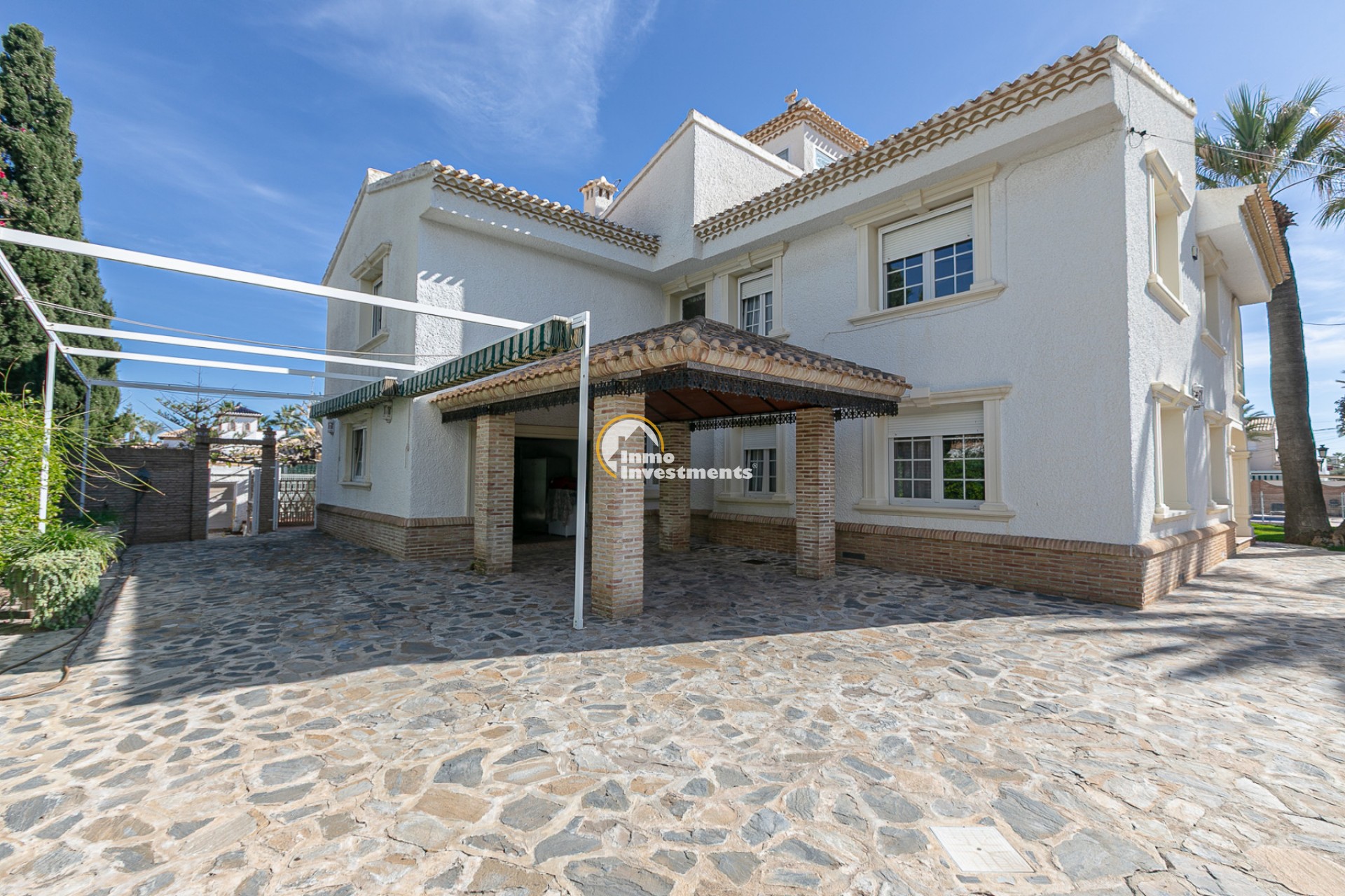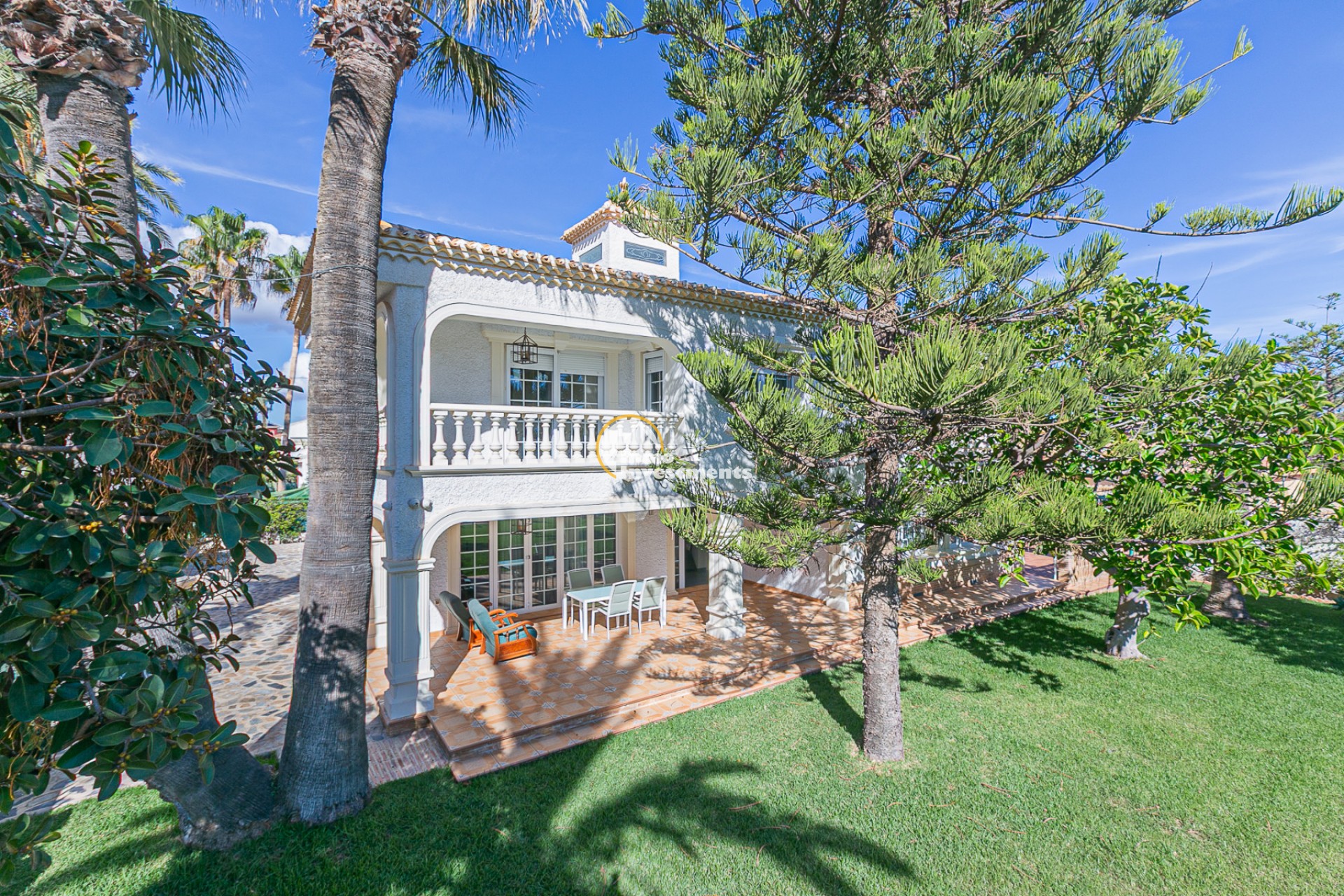 Im Herzen der renommierten Urbanisation Cabo Roig, einer der begehrtesten Wohngegenden an der südlichen Costa Blanca, erhebt sich diese beeindruckende freistehende Villa, nur 400 Meter vom Strand entfernt. Auf einem 1.500 m² großen Grundstück mit einer bebauten Fläche von 545 m² vereint sie Eleganz, Komfort und mediterranen Stil in einem ruhigen und privaten Umfeld.