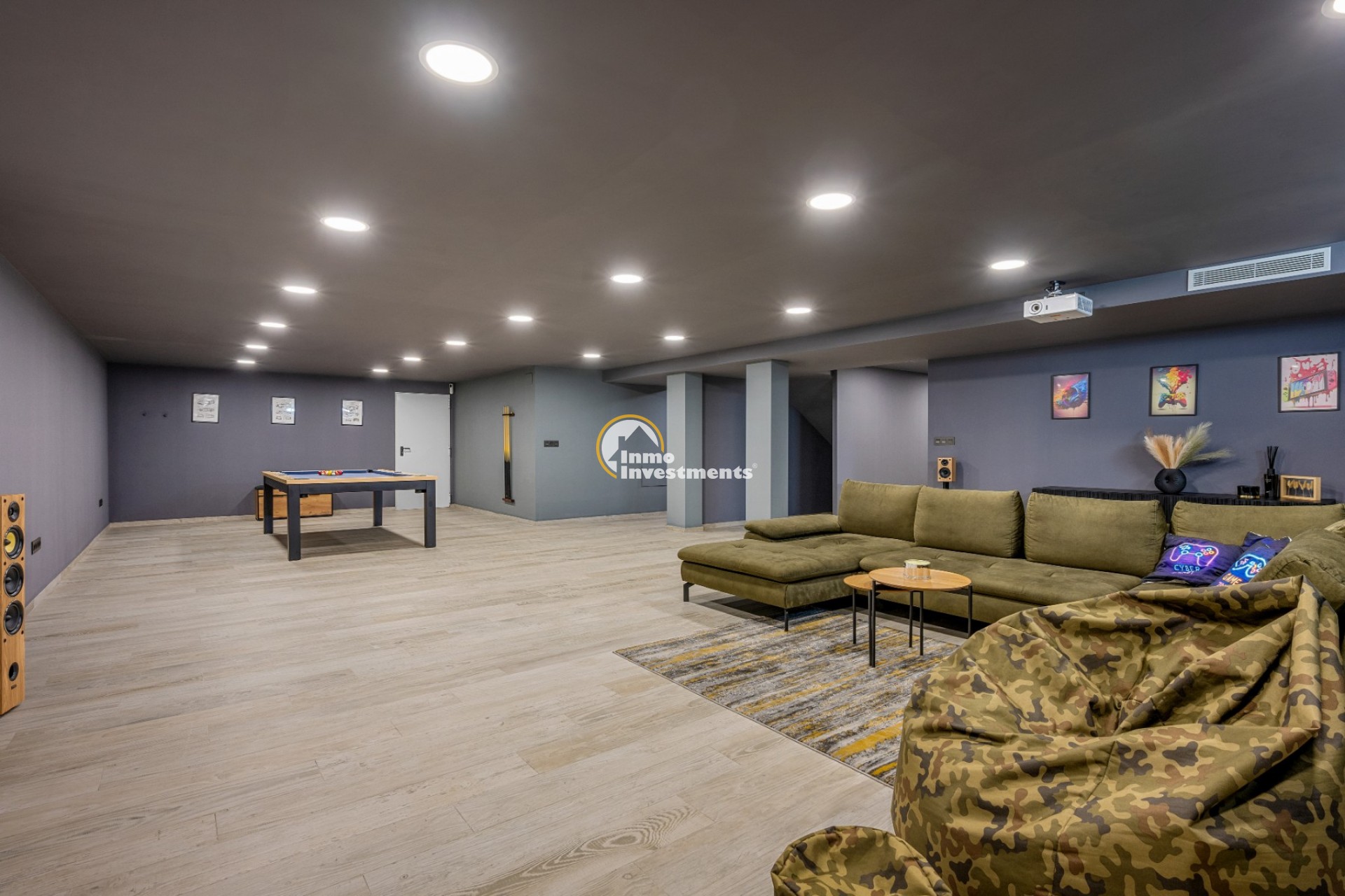 Der riesige Keller ist für Freizeit und Komfort ausgelegt und verfügt über einen Kinoraum, einen Billardtischbereich und eine Garage sowie ein zusätzliches Schlafzimmer, das bequem Platz für bis zu vier Personen bietet – ideal für Gäste oder Familienfeiern.