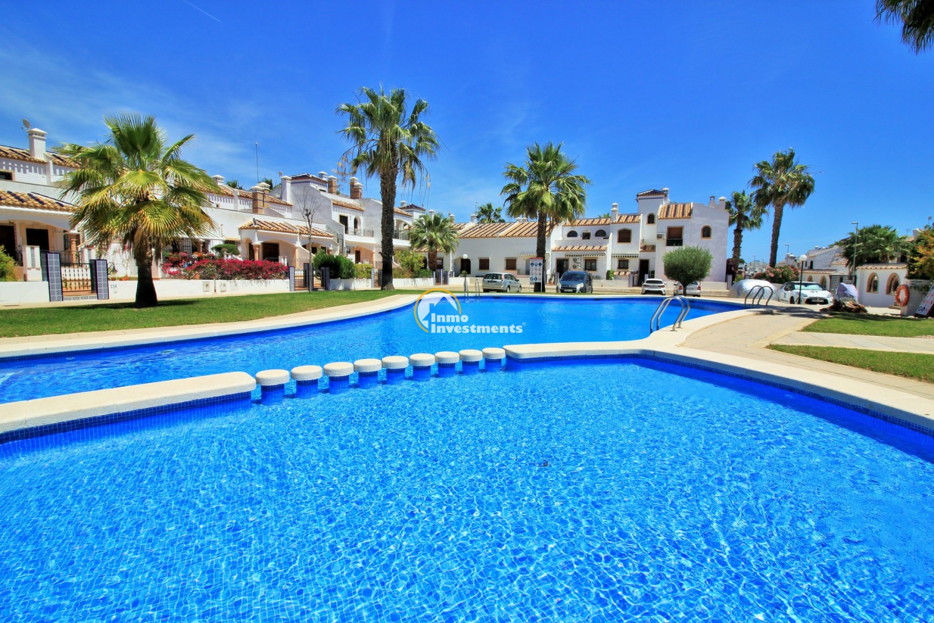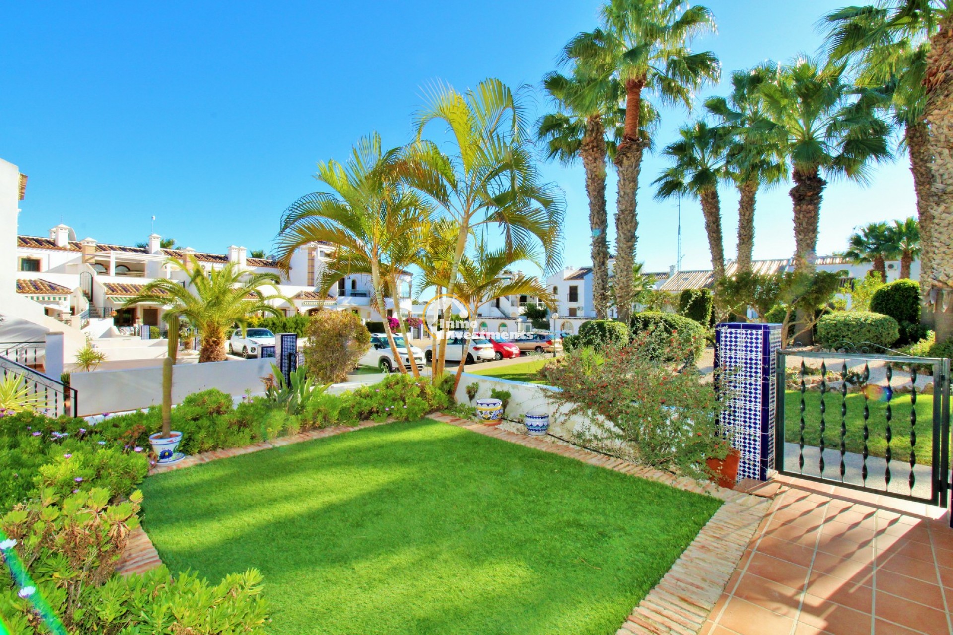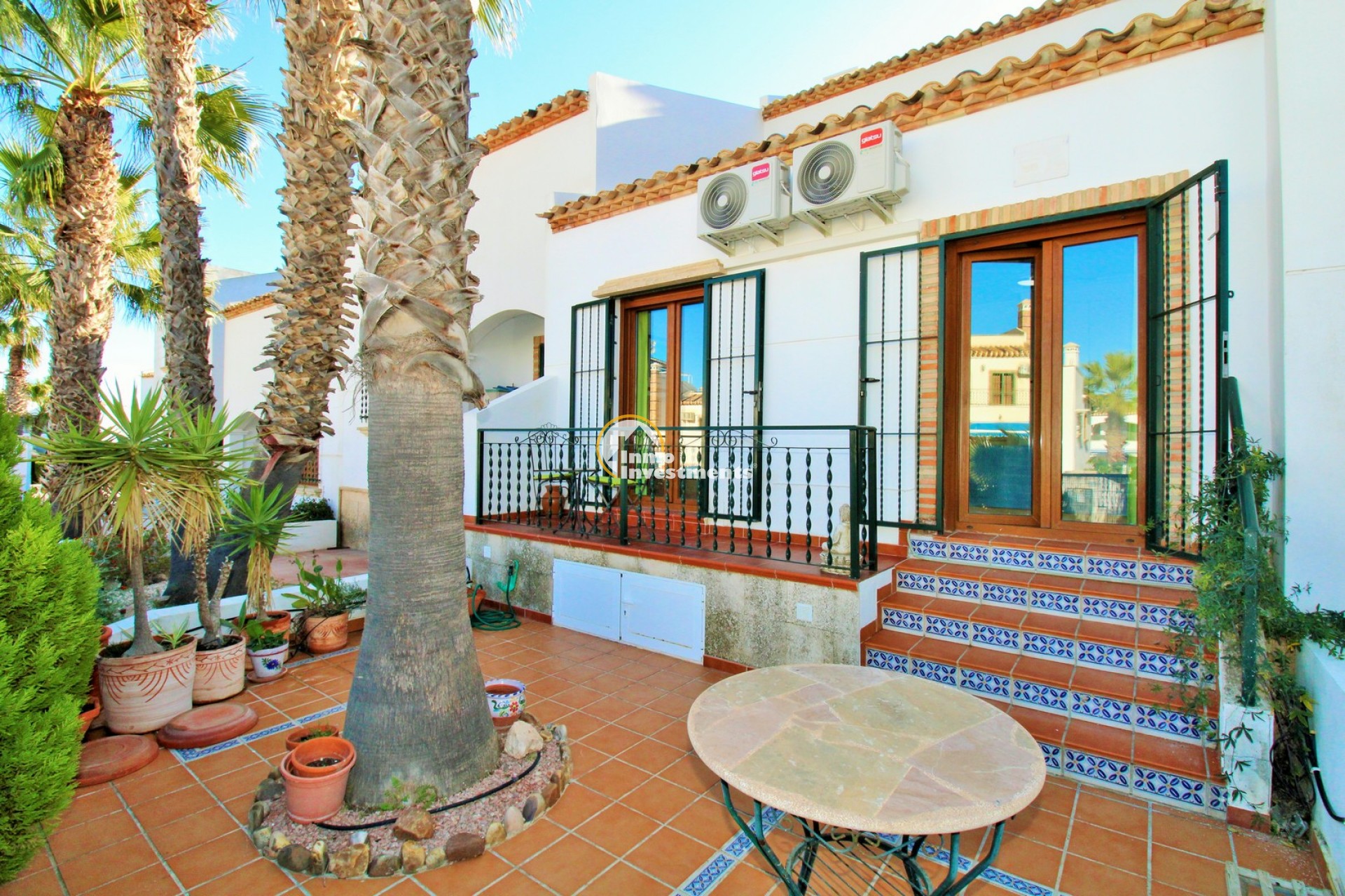 Verbesserter Bungalow im Lola-Stil zum Verkauf in der begehrten, abgeschlossenen Wohnanlage R9 in Pau 8, Villamartin. Sorgfältig gepflegt vom gleichen Eigentümer seit Neubau, mit erstklassiger Lage nur 10 Gehminuten zur Villamartin Plaza und zum Villamartin Golfplatz, umgeben von Restaurants, Bars und Dienstleistungen. Die Anlage ist gut gepflegt, mit Gemeinschaftspool, gemeinschaftlichem Parkplatz, und wird bis Ende Q2 2026 vollständig neu gestrichen. Die Immobilie bietet private Gärten vorne und hinten, sowie eine erweiterte vordere Terrasse mit Blick auf die Grünanlage. Innen gibt es ein helles Wohn-/Esszimmer, eine renovierte, voll ausgestattete Küche, sowie zwei Doppelschlafzimmer mit Einbauschränken. Das Hauptschlafzimmer verfügt über ein En-suite-Bad mit begehbarer Dusche und direkten Zugang zum hinteren Garten. Das zweite Schlafzimmer wurde mit Terrassentüren ausgestattet, die auf eine kleine Juliet-Terrasse mit Treppe zum Garten führen. Darunter befindet sich zusätzlicher Stauraum. Externe Treppen führen zum privaten Solarium, wo ein zusätzliches Annex mit Gästezimmer und En-suite-Bad hinzugefügt wurde. Die Immobilie wird möbliert verkauft, mit Geräten, Klimaanlage, Zentralheizung und Stadtgas. Eine hervorragende Gelegenheit — eine frühzeitige Besichtigung wird empfohlen.