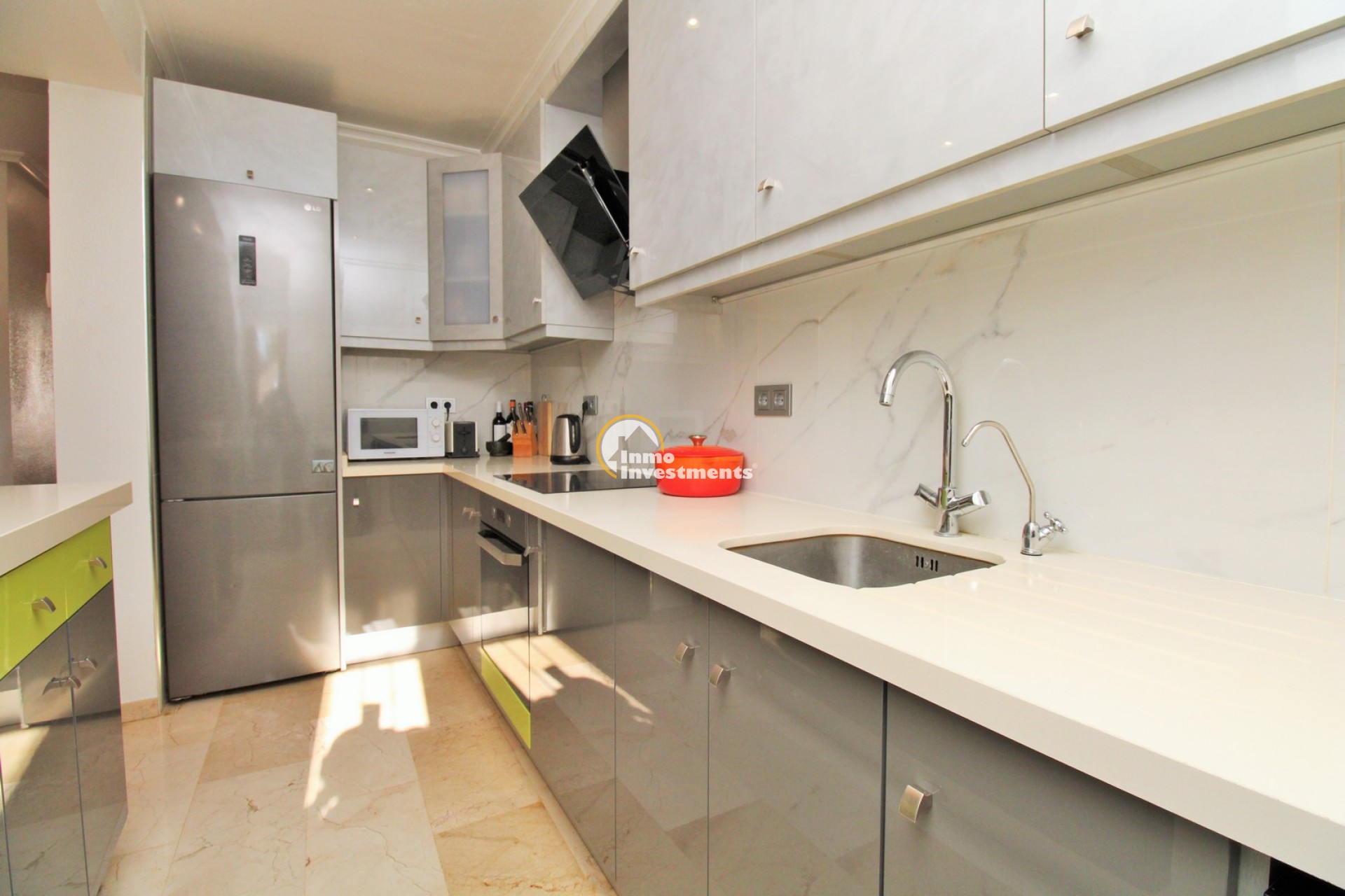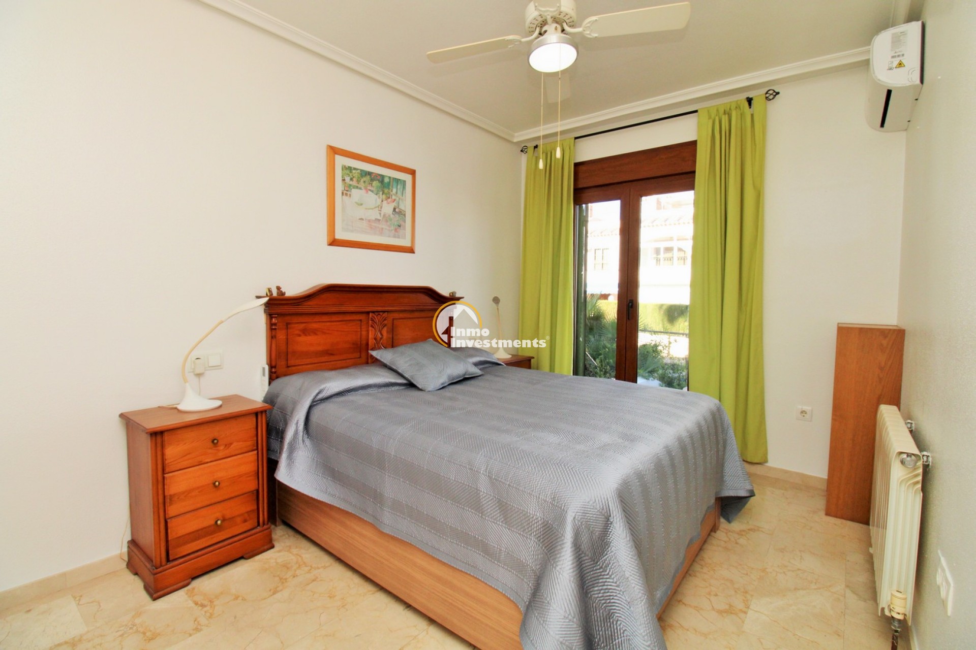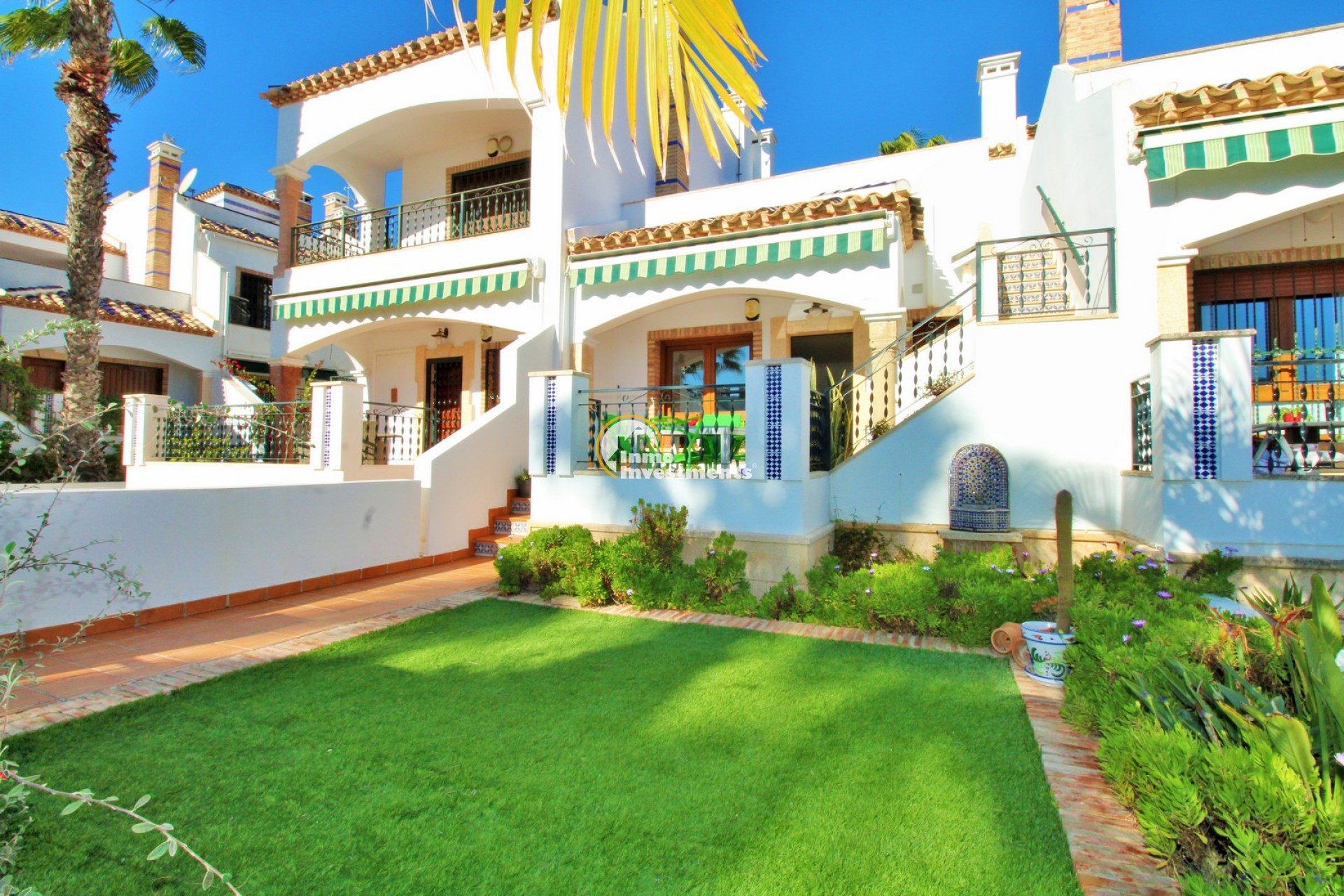 Verbesserter Bungalow im Lola-Stil zum Verkauf in der begehrten, abgeschlossenen Wohnanlage R9 in Pau 8, Villamartin. Sorgfältig gepflegt vom gleichen Eigentümer seit Neubau, mit erstklassiger Lage nur 10 Gehminuten zur Villamartin Plaza und zum Villamartin Golfplatz, umgeben von Restaurants, Bars und Dienstleistungen. Die Anlage ist gut gepflegt, mit Gemeinschaftspool, gemeinschaftlichem Parkplatz, und wird bis Ende Q2 2026 vollständig neu gestrichen. Die Immobilie bietet private Gärten vorne und hinten, sowie eine erweiterte vordere Terrasse mit Blick auf die Grünanlage. Innen gibt es ein helles Wohn-/Esszimmer, eine renovierte, voll ausgestattete Küche, sowie zwei Doppelschlafzimmer mit Einbauschränken. Das Hauptschlafzimmer verfügt über ein En-suite-Bad mit begehbarer Dusche und direkten Zugang zum hinteren Garten. Das zweite Schlafzimmer wurde mit Terrassentüren ausgestattet, die auf eine kleine Juliet-Terrasse mit Treppe zum Garten führen. Darunter befindet sich zusätzlicher Stauraum. Externe Treppen führen zum privaten Solarium, wo ein zusätzliches Annex mit Gästezimmer und En-suite-Bad hinzugefügt wurde. Die Immobilie wird möbliert verkauft, mit Geräten, Klimaanlage, Zentralheizung und Stadtgas. Eine hervorragende Gelegenheit — eine frühzeitige Besichtigung wird empfohlen.