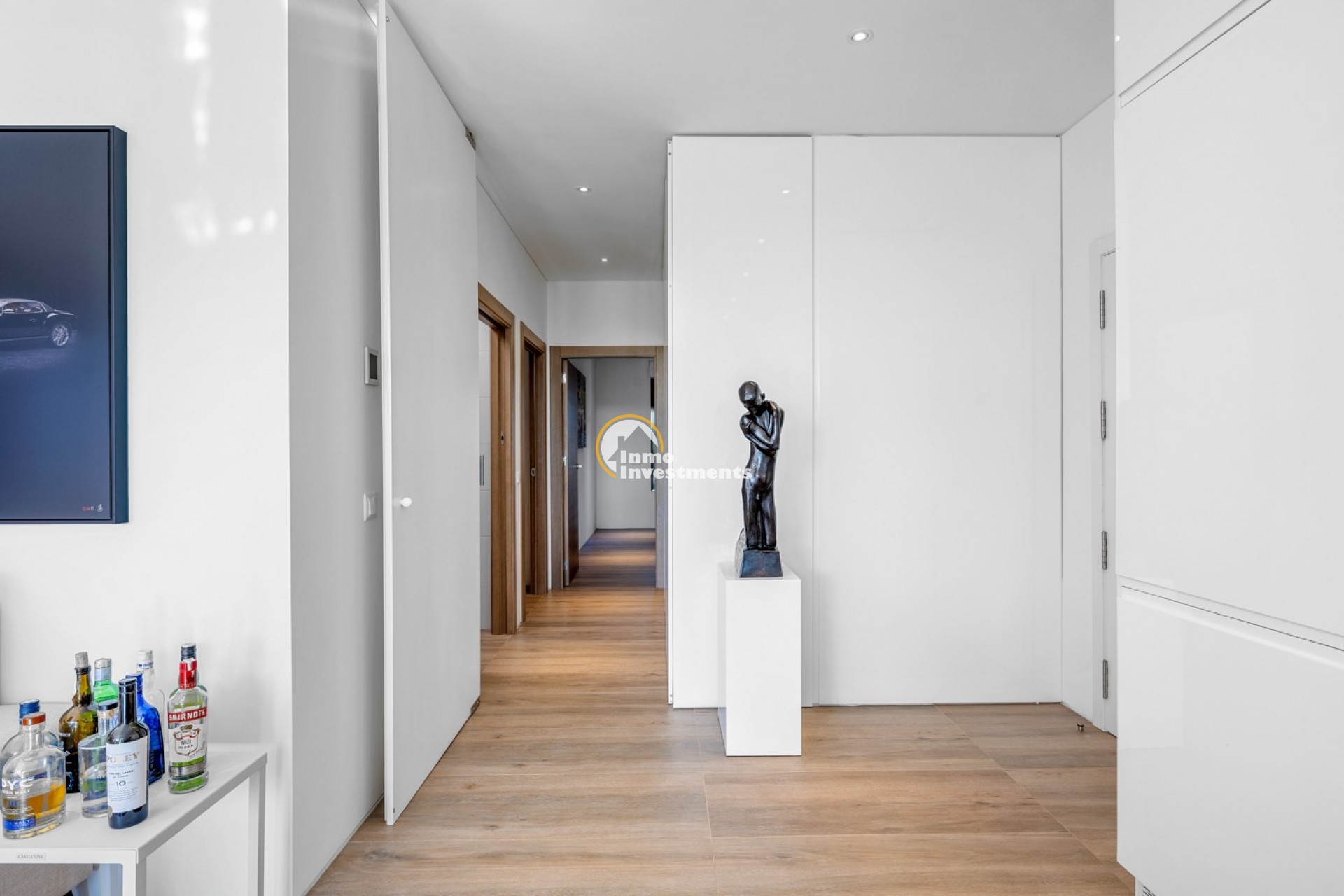 Die Immobilie bietet einen großzügigen und lichtdurchfluteten Wohnbereich mit offener Küche, ideal für komfortables Wohnen und entspanntes Genießen. Große Schiebefenster, die vollständig in den Wänden verschwinden, schaffen eine nahtlose Verbindung zwischen Innen und Außen, sodass Wohnbereich und großzügige Terrasse zu einer Einheit werden.