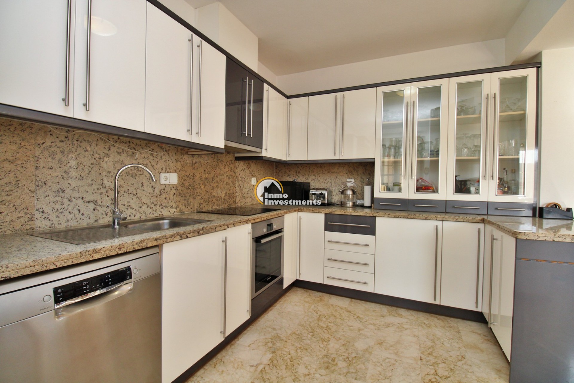 Diese attraktive freistehende Villa befindet sich in zweiter Linie zum Las Ramblas Golfplatz und bietet eine hervorragende Lage in einer der begehrtesten Wohnanlagen der Orihuela Costa. Das Haus steht auf einem großzügigen 500m² Grundstück und verfügt über eine durchdachte Raumaufteilung. Im Erdgeschoss befinden sich ein heller Wohn-/Essbereich mit offener Küche, zwei Schlafzimmer, ein Badezimmer sowie ein Gäste-WC. Im Obergeschoss liegt das Hauptschlafzimmer mit eigenem Bad und direktem Zugang zu einer großen Dachterrasse mit herrlichem Blick auf den Golfplatz. Der Außenbereich überzeugt mit einem gepflegten Garten, privatem Pool, Grillbereich und Garage. Die Villa liegt in einer ruhigen Privatstraße ohne Durchgangsverkehr.