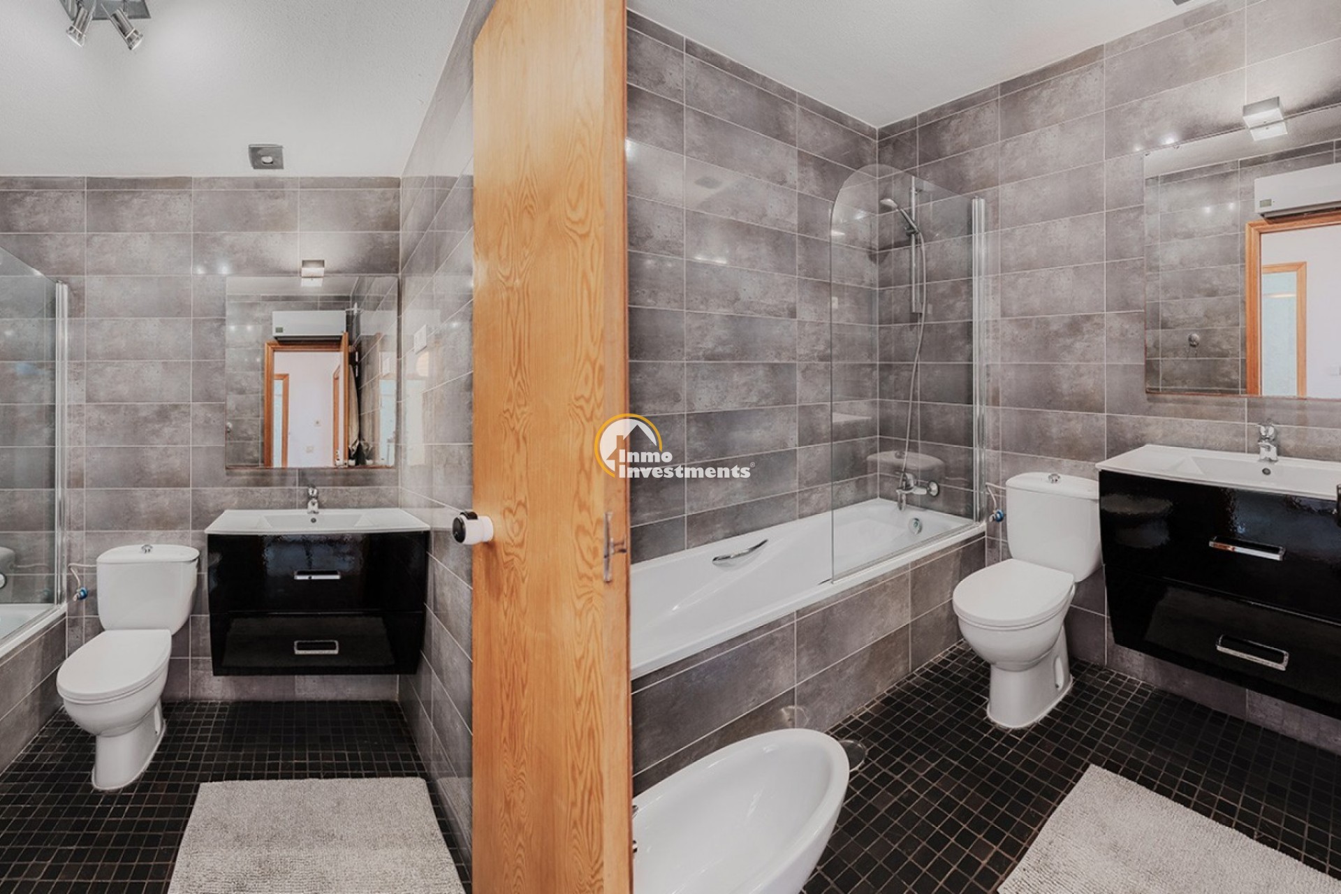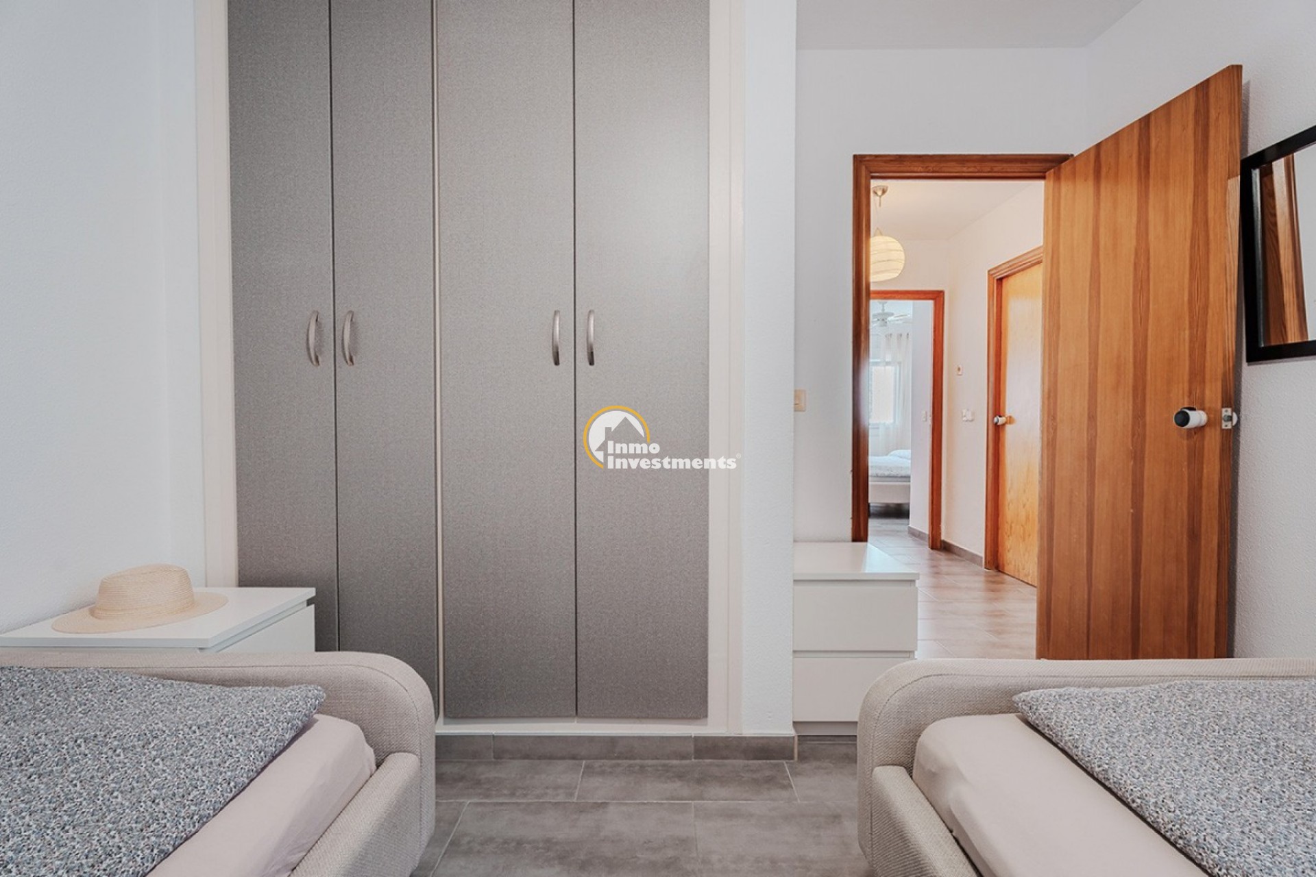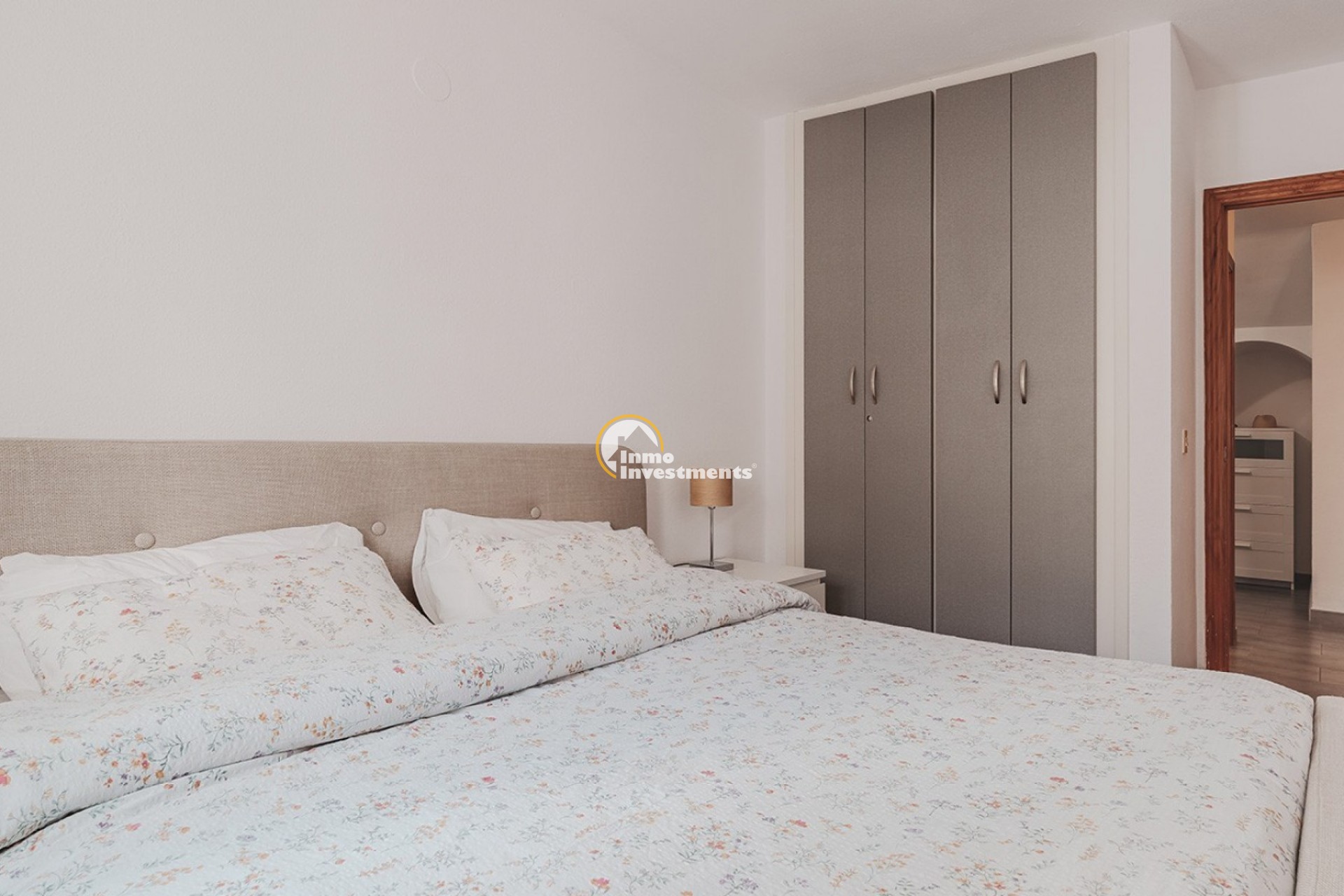 Die Immobilie umfasst drei Schlafzimmer mit Einbauschränken, zwei renovierte Badezimmer sowie ein zusätzliches Gäste-WC im Erdgeschoss. Im Obergeschoss befindet sich eine private Dachterrasse mit Platz für Sitzgelegenheiten sowie ein großer Abstellraum, der zusätzlichen Stauraum bietet.