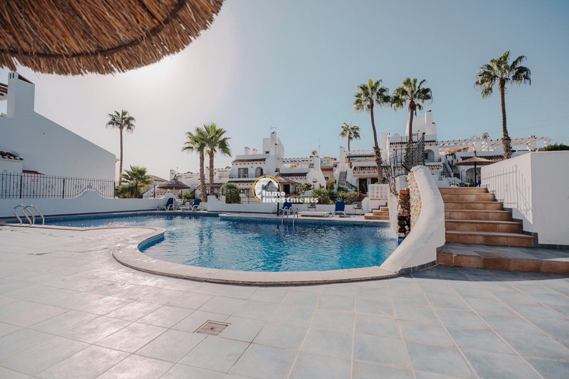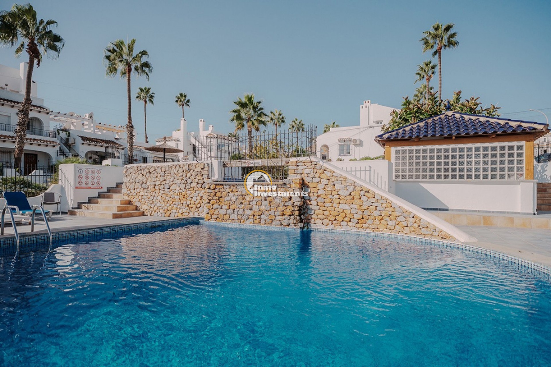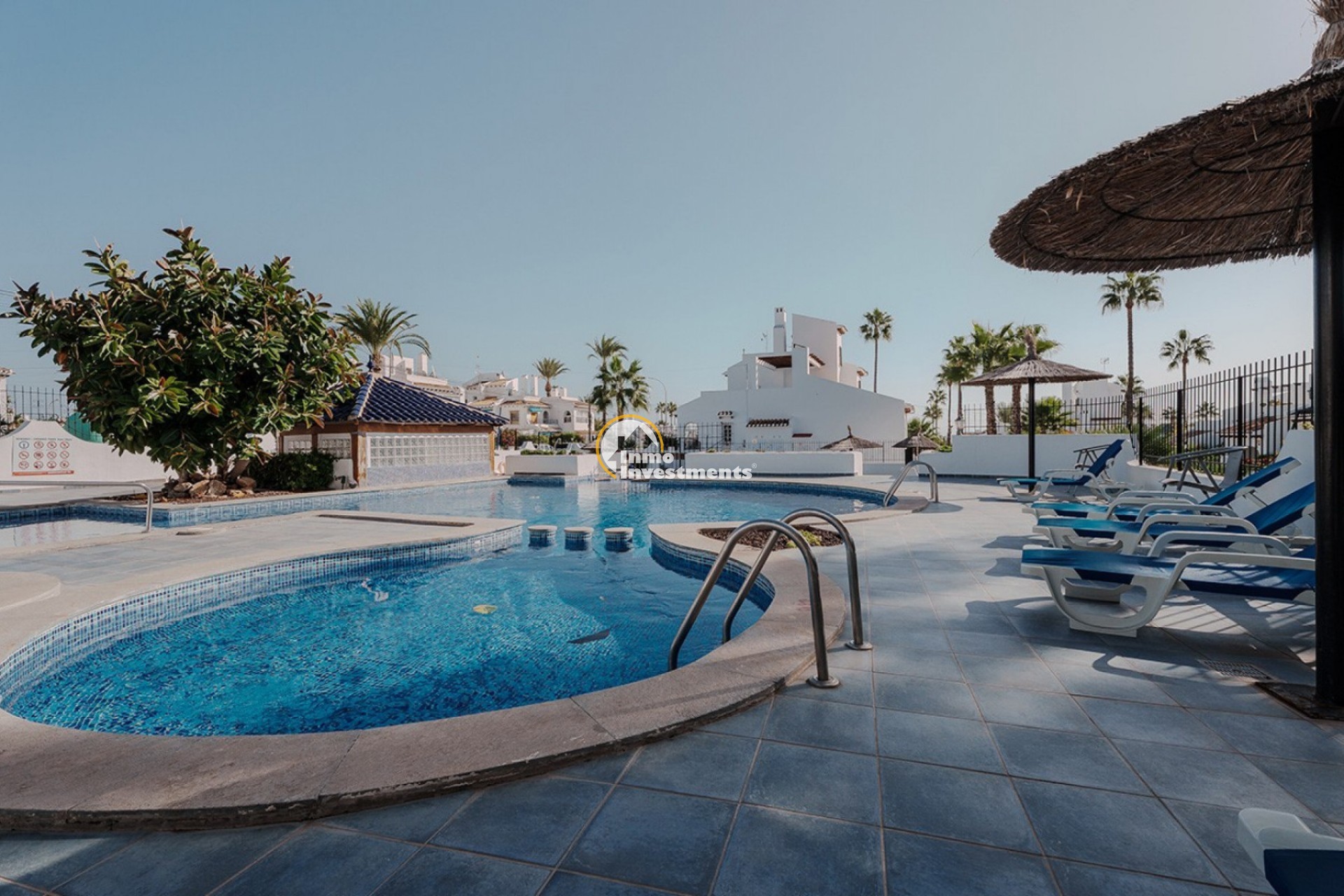 Den Bewohnern stehen gepflegte Gemeinschaftsbereiche mit Swimmingpool und angelegten Gärten zur Verfügung. Das Haus liegt in Villamartín, in der Nähe von Golfplätzen, Restaurants und Einkaufszentren sowie nur eine kurze Autofahrt von den Stränden der Orihuela Costa entfernt. Die Immobilie eignet sich sowohl als Dauerwohnsitz als auch als Feriendomizil.