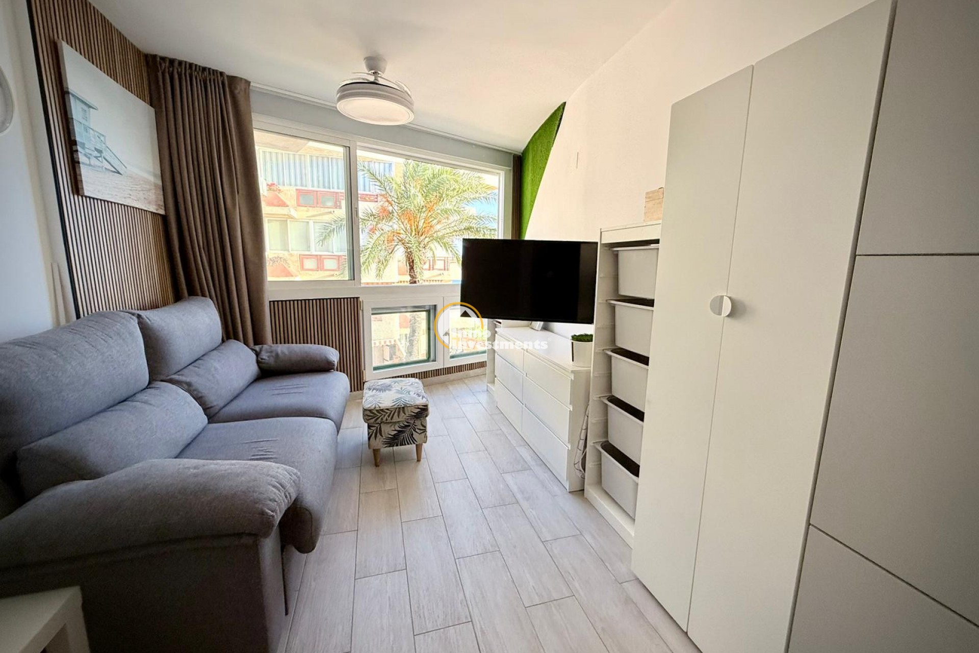Dieses vollständig renovierte Studio-Apartment befindet sich nur einen kurzen Spaziergang vom Strand und der Promenade von Mil Palmeras entfernt. Die Immobilie verfügt über einen offenen Grundriss, der Wohn-, Ess- und Schlafbereich kombiniert, einschließlich eines Klappbetts (Murphy Bed) und eines zusätzlichen Schlafsofas, einer Küchenzeile sowie eines Familienbadezimmers. Gelegen in der gepflegten Wohnanlage Vistamar 9, bietet das Gebäude einen Aufzug, einen Gemeinschaftspool und Meerblick. Alle Annehmlichkeiten sowie der Strand sind fußläufig erreichbar. Eine ideale Option als Ferienwohnung oder Anlageimmobilie. Kontaktieren Sie uns für weitere Informationen.