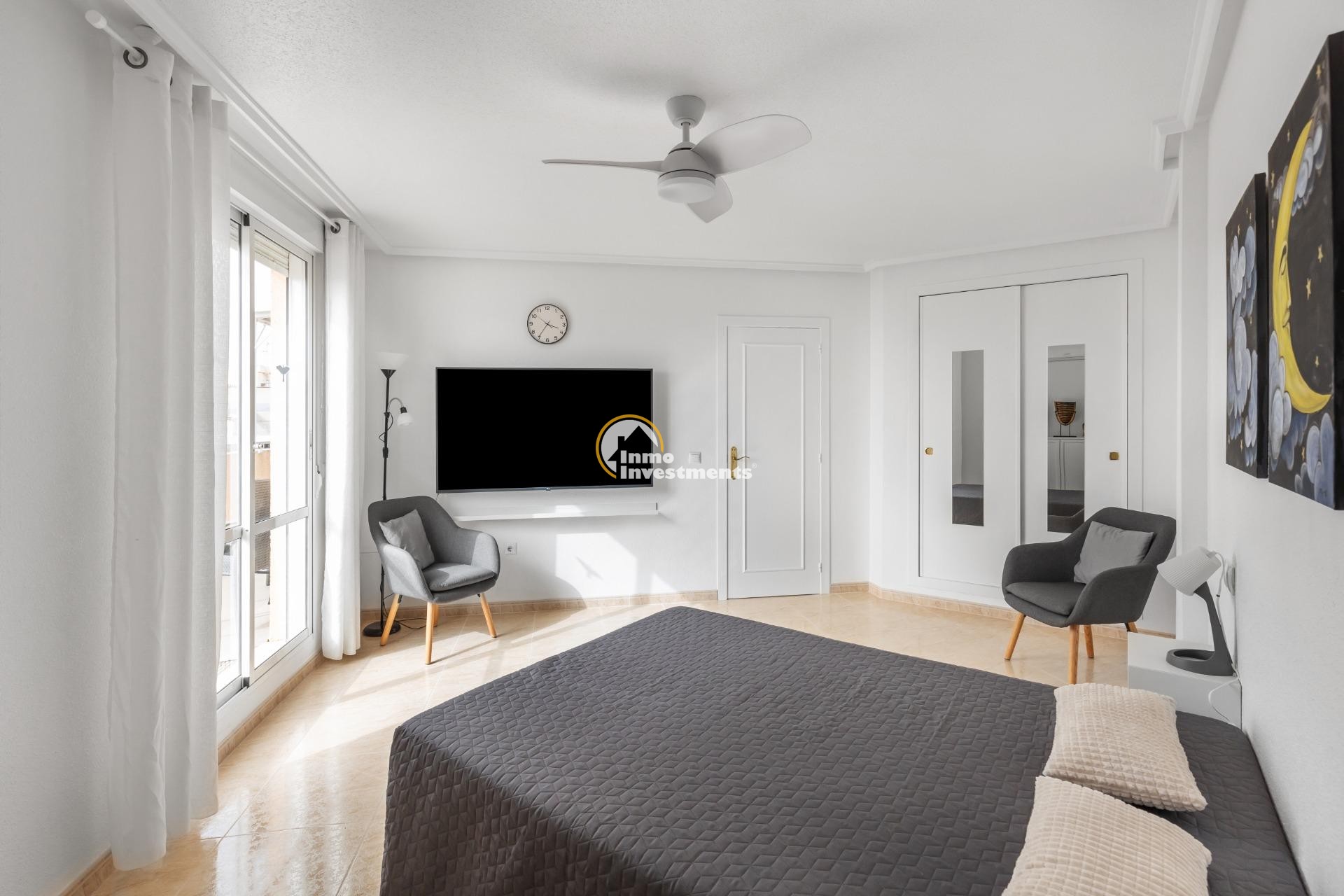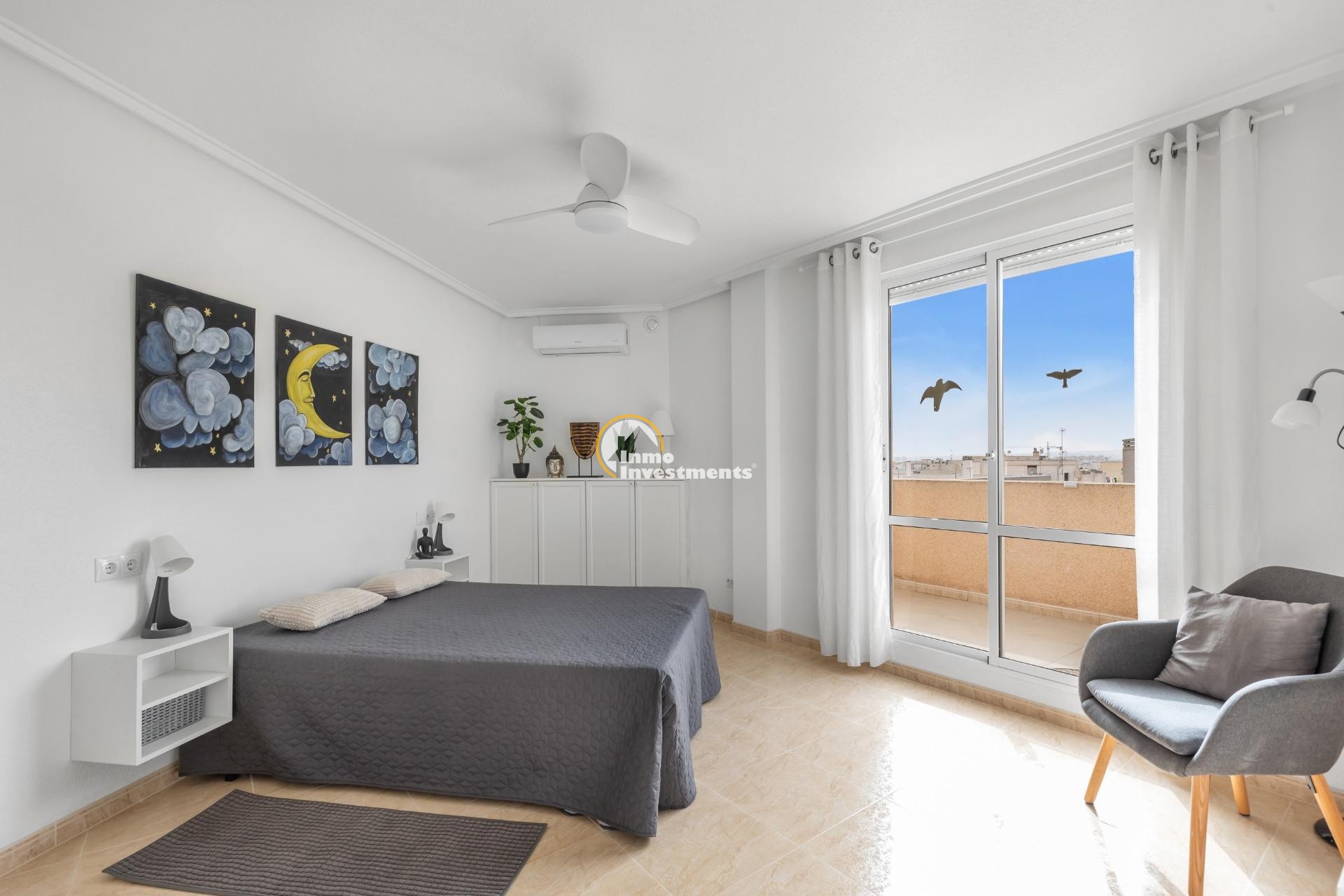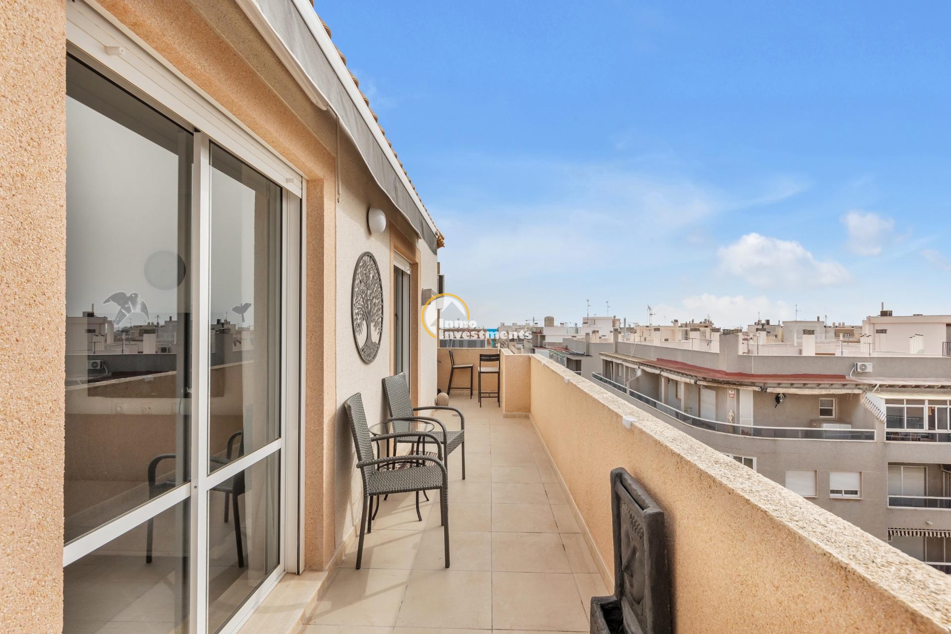 Ihre sonnige Oase erwartet Sie! Wir präsentieren Ihnen dieses spektakuläre, teilrenovierte Penthouse in der exklusiven Wohnanlage Santa Gema. Ein Zuhause für alle, die Komfort, modernes Design und eine erstklassige Lage in perfekter Harmonie suchen.~~✨ Highlights~Wohnfläche: 85 m2, bis ins kleinste Detail optimiert.~Schlafzimmer: 3 geräumige Schlafzimmer (zwei davon mit Zugang nach draußen).~Das Hauptschlafzimmer bietet direkten Zugang zur Terrasse – ideal, um den ersten Kaffee des Tages im Freien zu genießen.~Badezimmer: 1 Badezimmer mit Dusche.~Küche: Separat, voll ausgestattet und bereit für Ihre Lieblingsrezepte.~~Das absolute Highlight: Eine einzigartige Terrasse~Die Ecklage bietet eine spektakuläre, 20 m2 große Terrasse mit Süd- und Westausrichtung. Genießen Sie den ganzen Tag Sonne und unglaubliches Tageslicht im Inneren und bewundern Sie die schönsten Sonnenuntergänge in Torrevieja.~~Im Kaufpreis ist ein privater Parkplatz enthalten – ein unverzichtbarer Mehrwert in dieser Gegend. Darüber hinaus verfügt die Wohnanlage über einen fantastischen Gemeinschaftspool, der sich ideal zum Abkühlen in den Sommermonaten in einer gepflegten und ruhigen Umgebung eignet.~~Verpassen Sie nicht diese Investitionsmöglichkeit oder die Chance, in einer der begehrtesten Gegenden zu wohnen.~~Der Immobilienpreis beinhaltet nicht die Notar- und Grundbuchgebühren (die tarifabhängig sind und je nach Kaufpreis variieren) sowie die Steuern (die in der Region Valencia je nach Kaufpreis und den persönlichen Umständen des Käufers variieren).