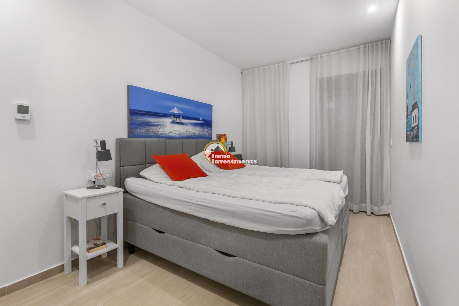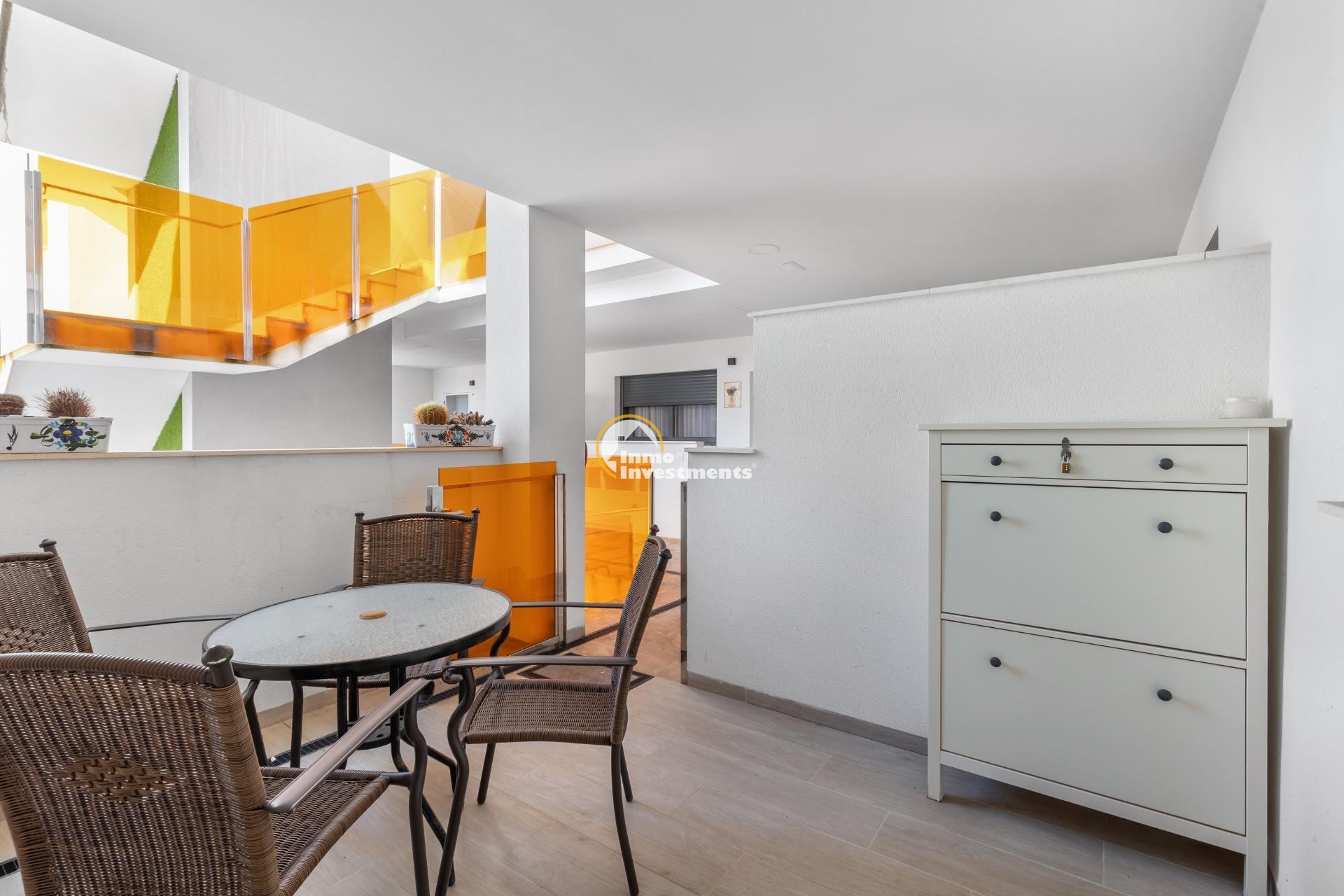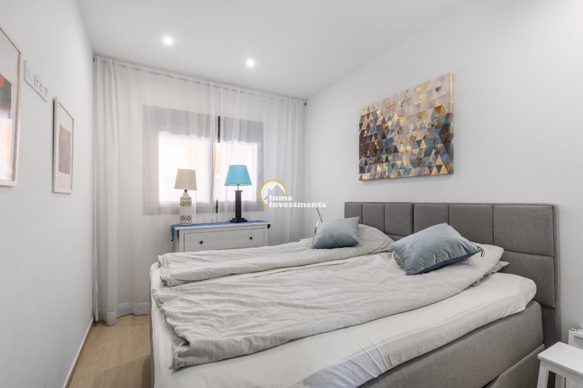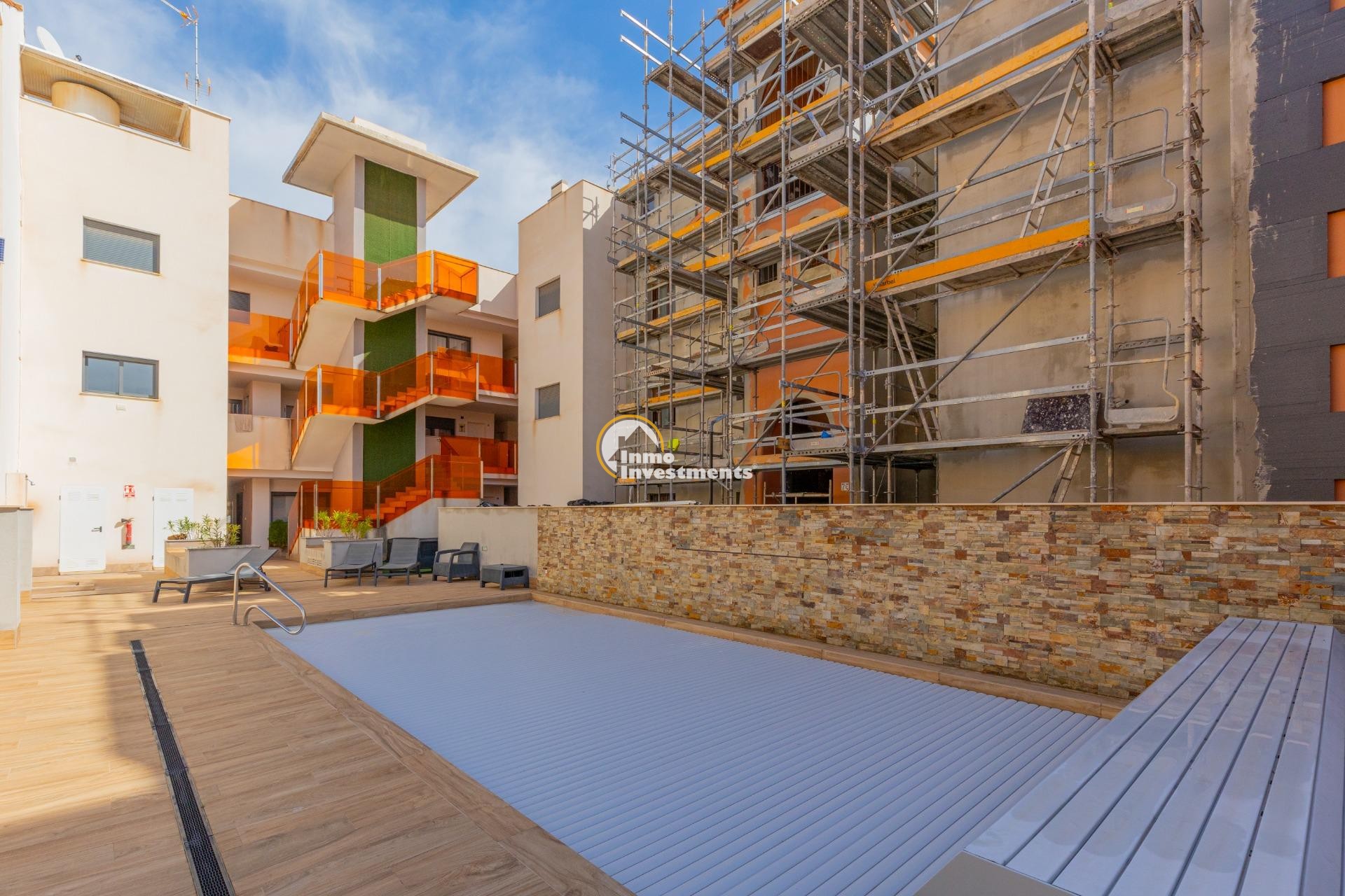 Direkt gegenüber den Buchten von Torrevieja und nur 200 Meter vom Playa de los Locos entfernt. Ost-Ausrichtung mit Morgensonne und leichtem Meerblick.~~Ausstattung:~~3 Schlafzimmer~~2 Badezimmer (WC und Dusche, eines en-suite)~~Offene Küche im Wohnzimmer integriert~~Terrasse am Wohnzimmer~~Große Eingangsterrasse~~Klimaanlage über Kanalsystem~~Alarmanlage~~Gemeinschaftsbereiche:~~Beheizter Pool~~Sauna~~Garage~~Abstellraum~~Modernes Gebäude mit nur drei Etagen. Komplett möbliert zu verkaufen.