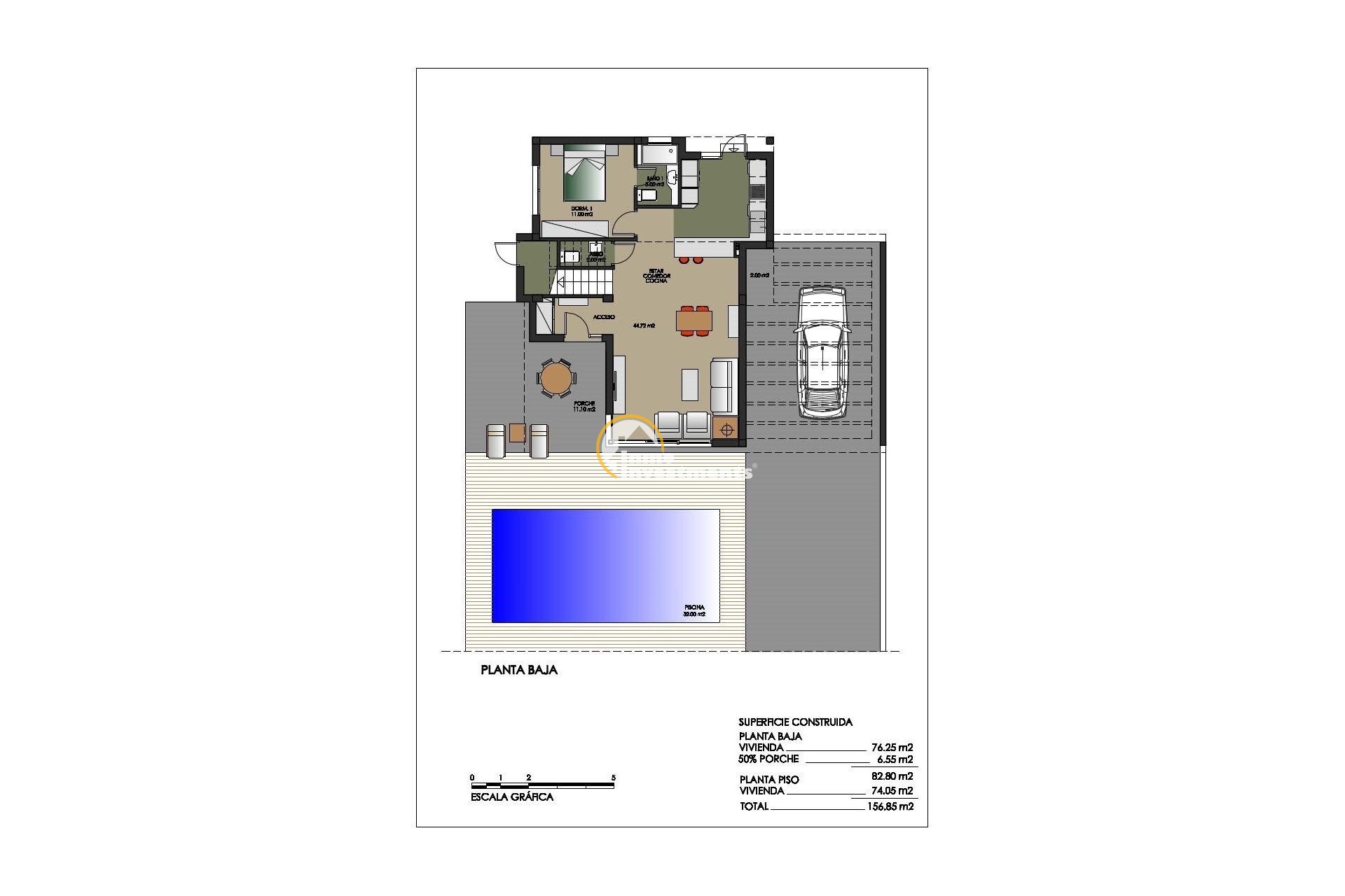 NEU GEBAUTE VILLA IN ORIHUELA COSTA (CAMPOAMOR)~ ~ Möchten Sie einen exklusiven Urlaub am Meer genießen? Unmöglich, nicht auf diese hochmoderne Villa in Orihuela Costa mit 2 Schlafzimmern, 2 Bädern, privatem Pool, Garten und luxuriösen Extras nach persönlichen Vorlieben hereinzufallen. Seine empfindliche Infrastruktur integriert sich in die Natur und bietet eine ruhige und isolierte Umgebung.~ ~ Dieses elegante Anwesen wurde mit den hochwertigsten Materialien erbaut und ist von üppiger Vegetation umgeben und nur wenige Meter von den saubersten Stränden von Campoamor entfernt: Playa de la Glea, Aguamarina und Cabo Roig. Es ist eine Freude, diese drei wunderschönen Strände, die mit der Blauen Flagge ausgezeichnet wurden, in Reichweite zu haben. Wann immer Sie einen Moment der Besinnung brauchen, können Sie das kristallklare Wasser berühren oder sich auf den weichen Sand legen, um ein Buch zu lesen, während Sie dem ruhigen Rauschen des Meeres lauschen.~ ~ In der Umgebung finden Sie alle wesentlichen Dienstleistungen, um das ganze Jahr über zu leben: Supermärkte, Apotheken, Cafés, Restaurants, Einkaufszentren ... Und wenn Sie sich auch für Golf begeistern, können Sie in weniger als 10 Minuten zwischen drei privilegierten Golfplätzen wählen international anerkannte Golfplätze, auf denen Sie Ihr Ziel unter Beweis stellen können: Las Colinas Golf, Villamartín oder Las Ramblas.~ ~ Die Aktion umfasst mehrere Hausmodelle mit 2,3,4 und bis zu 5 Schlafzimmern. Diese besondere Villa besteht aus 4 Doppelschlafzimmern, 2 Bädern, einer voll ausgestatteten amerikanischen Küche, einem offenen Wohn-Esszimmer mit toller Beleuchtung, Zugang zum Garten und dem schönen Pool.~ ~ Außerdem beinhaltet der Preis:~ Fußbodenheizung und Spiegel im Badezimmer~ Innen- und Außenbeleuchtung~ Einbauschränke~ Sicherheitstür~ Vorinstallation der Klimaanlage~ Geräte von Top-Marken~ ~ Das Haus folgt dem Trend des offenen Konzeptdesigns, bereichert großzügige Räume und bietet mehr Komfort und Wohlbefinden in seinen Innenräumen.
