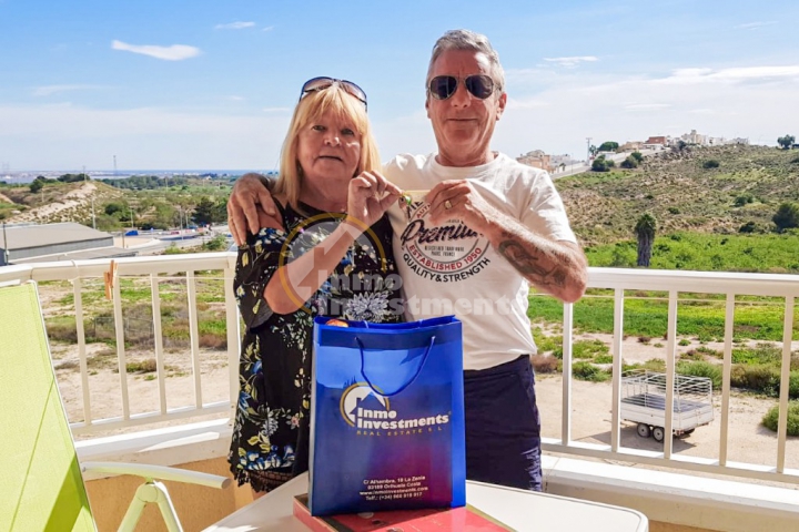 Audrey und Tommy freuten sich, die Schlüssel für ihr neues Zuhause im schönen San Miguel de Salinas abzuholen.