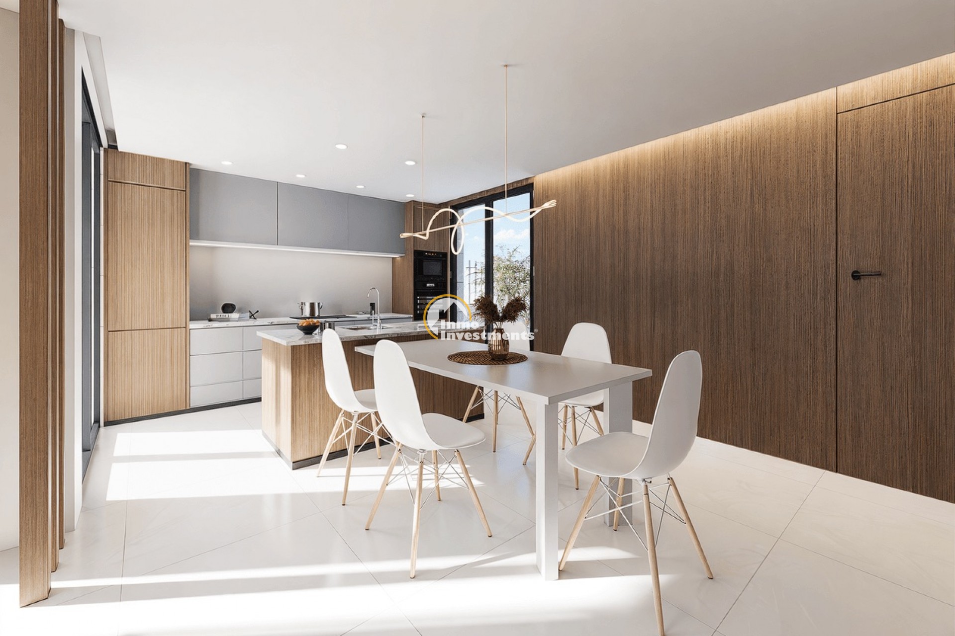 En el interior, las villas cuentan con tres dormitorios y tres baños, distribuidos en un diseño funcional que favorece la amplitud y la luminosidad. La cocina de concepto abierto se integra con el salón-comedor, creando un ambiente moderno y acogedor. Los acabados de alta calidad incluyen ventanas con rotura de puente térmico, doble acristalamiento, persianas motorizadas en los dormitorios, muebles de baño con mamparas de cristal y sistemas preinstalados de climatización por conductos. Además, el uso de paneles solares para autoconsumo y riego automático en el jardín refuerza el compromiso con la sostenibilidad y la eficiencia energética.