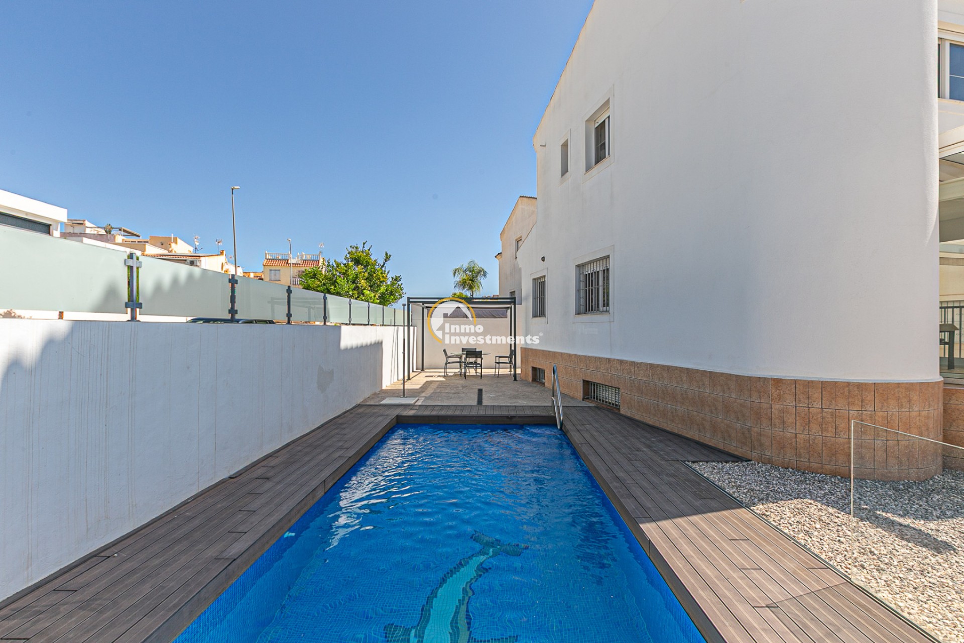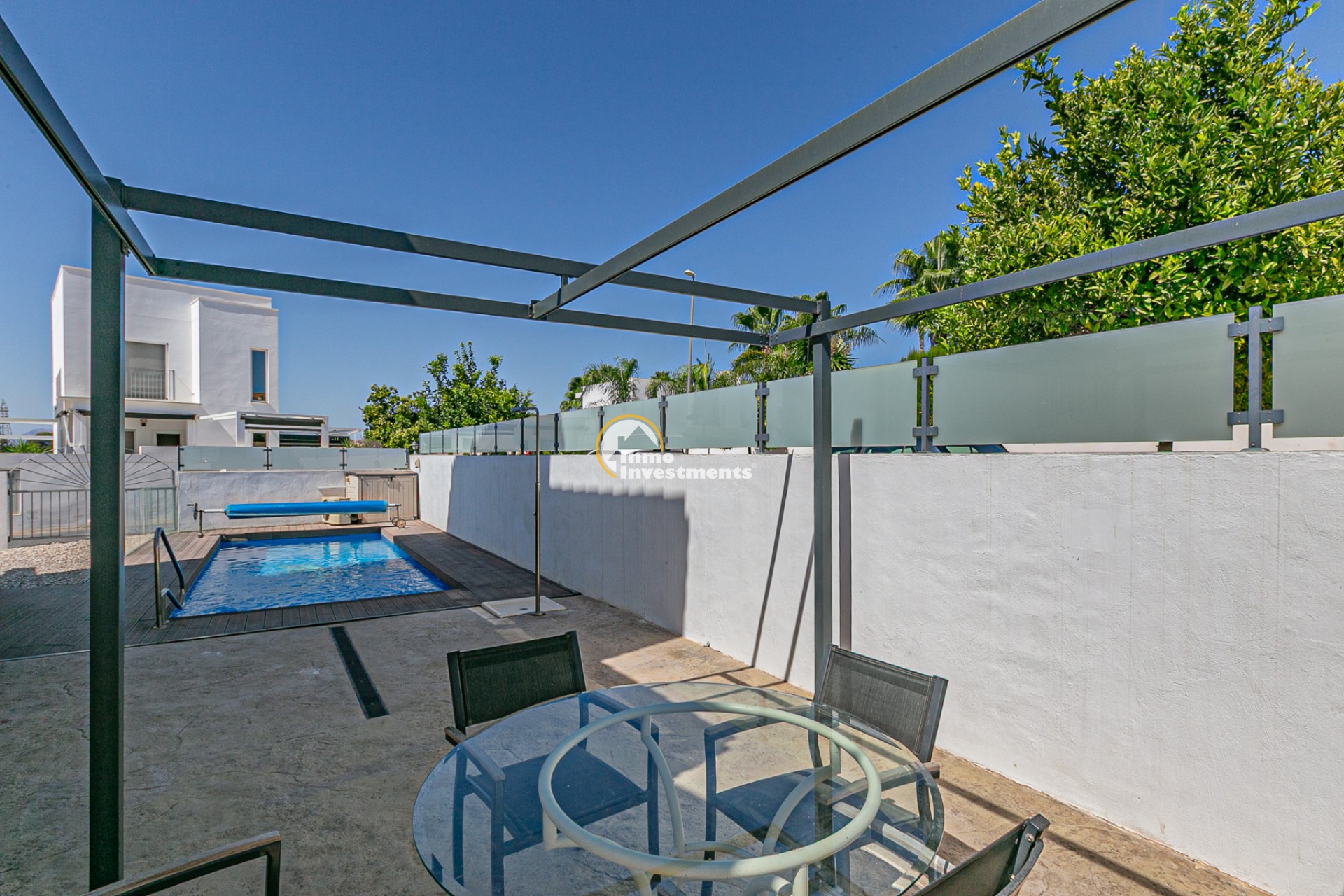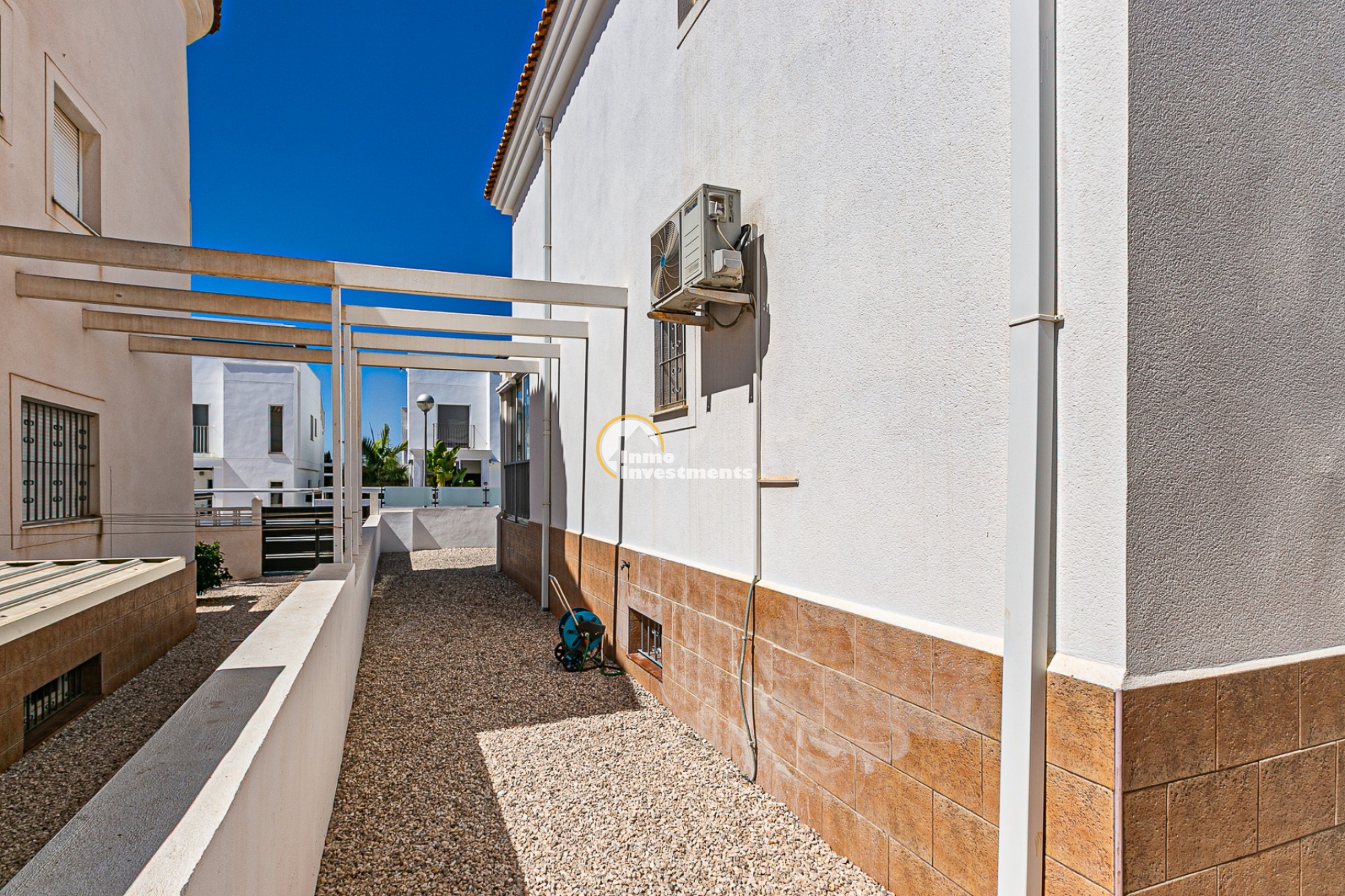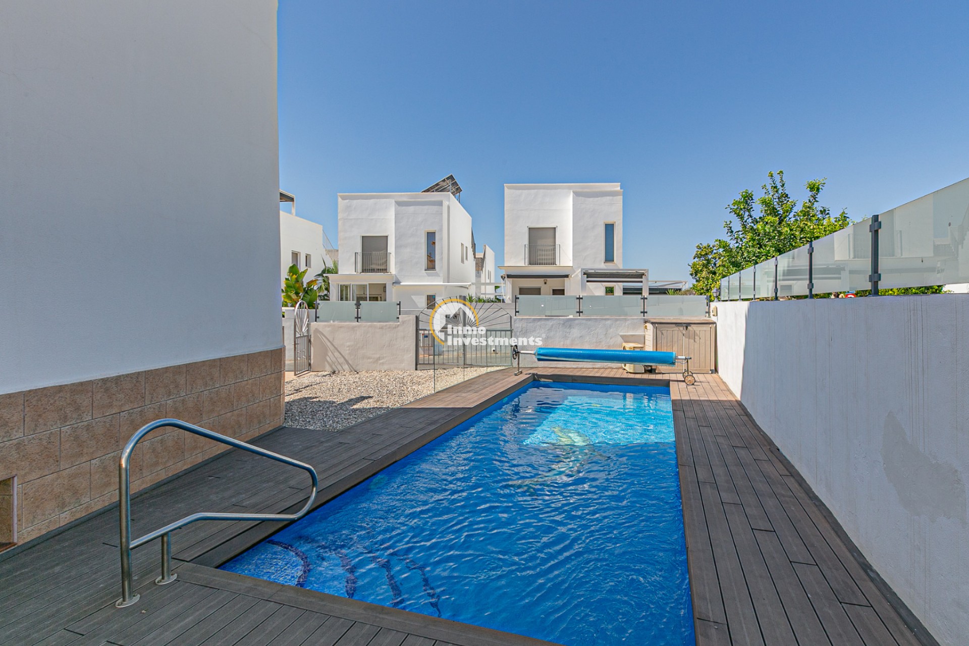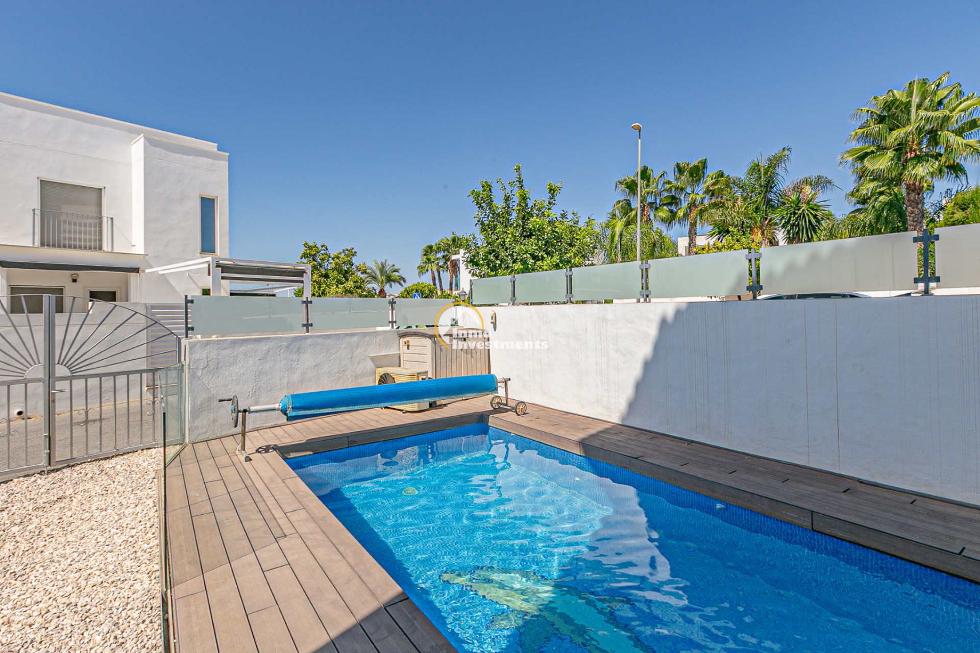 La vivienda cuenta con una superficie construida de 143,30 m² sobre una parcela en esquina de 245,40 m², totalmente independiente. En el exterior dispone de una piscina privada climatizada con bomba de calor y cubierta de lámina, además de acceso a una piscina comunitaria. La parcela, de fácil mantenimiento, convierte este hogar en la opción perfecta para disfrutar del clima mediterráneo.