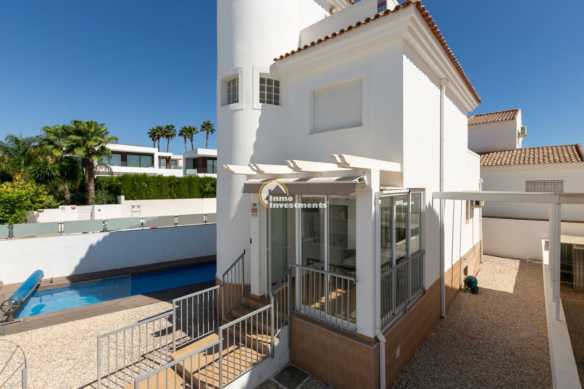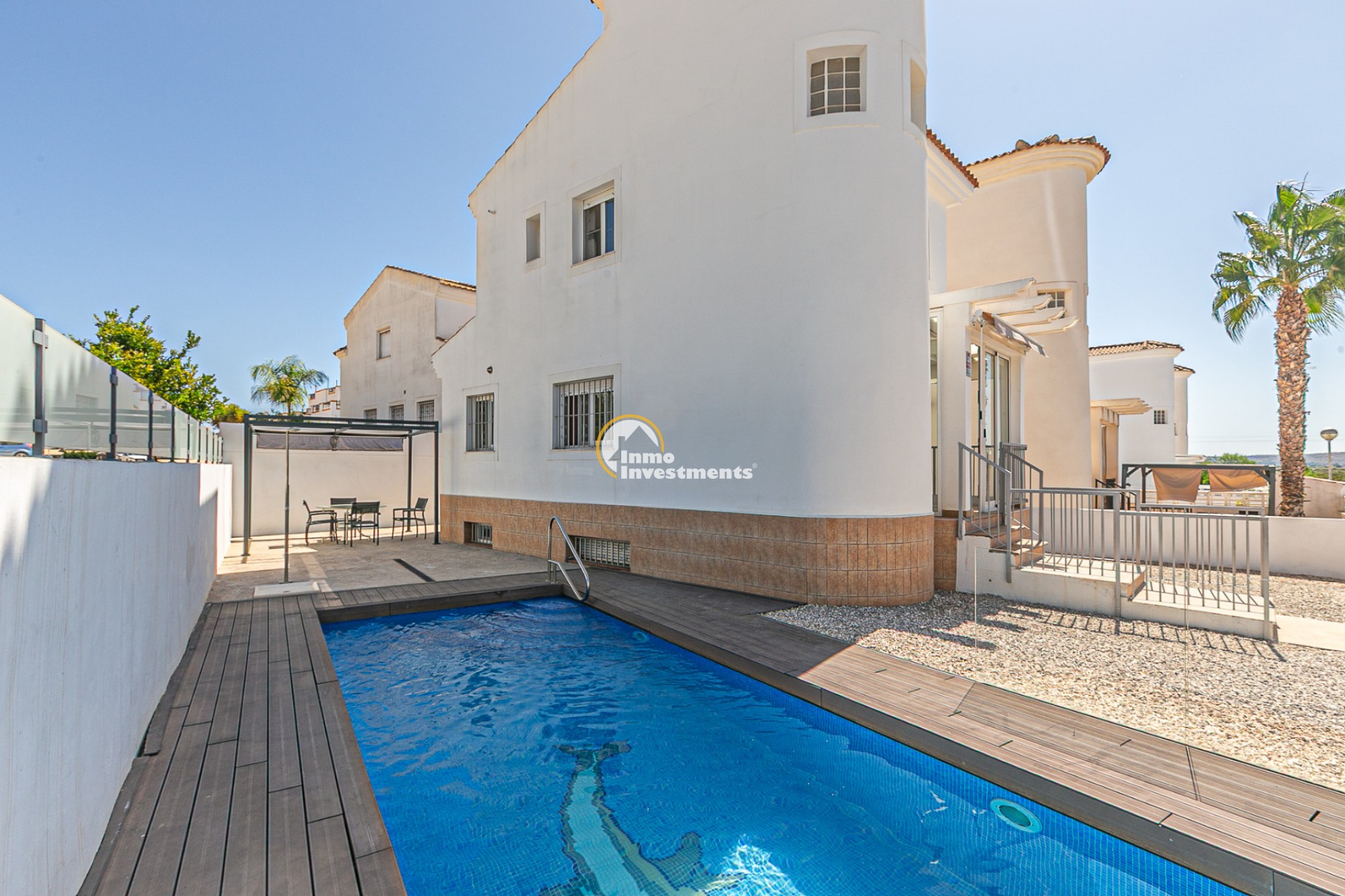 Presentamos este magnífico chalet independiente ubicado en la urbanización La Marina, en San Fulgencio (Alicante), una zona residencial muy demandada por su ambiente internacional, sus excelentes comunicaciones y la amplia oferta de servicios disponibles durante todo el año: supermercados, restaurantes, bares, farmacias, centro médico, bancos y ocio.