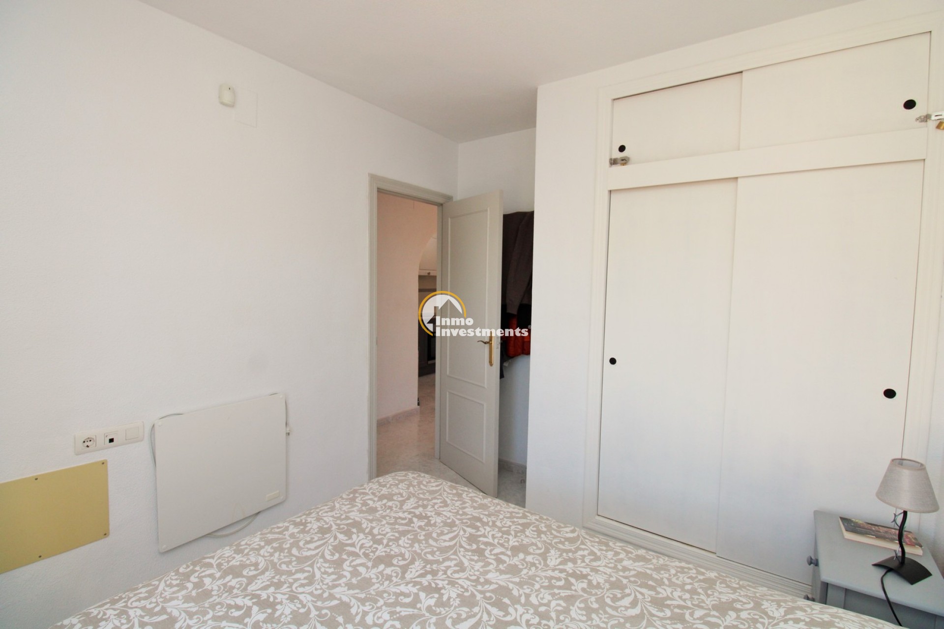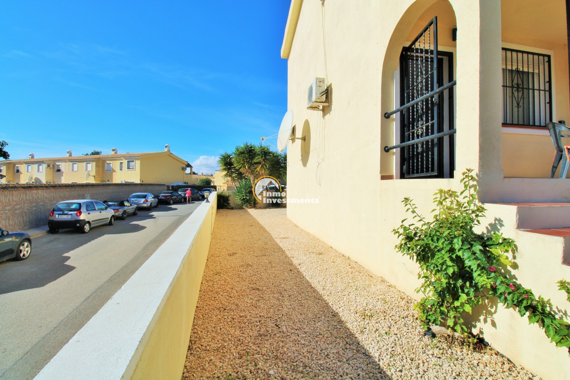 La vivienda ofrece una terraza elevada con vistas a la piscina, un luminoso salón-comedor, cocina independiente con lavadero, dos dormitorios dobles y un baño moderno con ducha. El dormitorio principal tiene acceso directo al soleado jardín de esquina, proporcionando un excelente espacio exterior para disfrutar del clima mediterráneo. Se vende amueblado y con aire acondicionado.