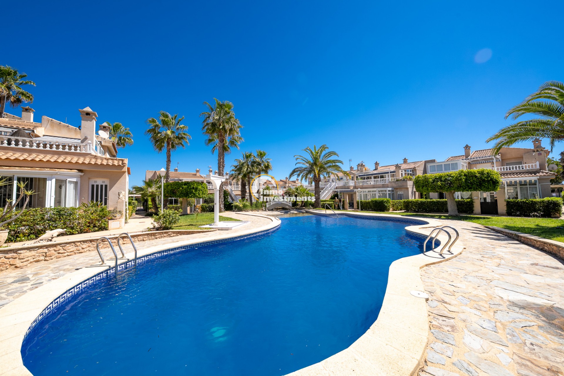 El espacio exterior incluye dos zonas ajardinadas: un jardín trasero sombreado ideal para los meses de verano y un jardín delantero soleado con vistas a la piscina y acceso directo a la comunidad, lo que lo hace especialmente adecuado para familias. La propiedad está bien cuidada y se vende completamente amueblada, incluyendo aire acondicionado, calefacción por suelo radiante en el baño, y está lista para entrar a vivir. Ubicada en una comunidad bien mantenida con jardines tropicales y dos piscinas, cerca de tiendas, restaurantes, La Zenia Boulevard y la playa. No deje pasar esta oportunidad y póngase en contacto con nosotros para concertar una visita.
