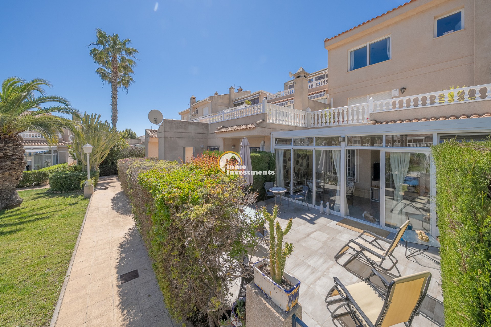 Encantador apartamento en planta baja en la codiciada urbanización Miraflores II en Playa Flamenca, con vistas a la piscina comunitaria y acceso directo a la piscina. La vivienda ofrece aprox. 65 m² de superficie habitable, incluyendo un amplio salón-comedor con chimenea, una cocina abierta, dos dormitorios dobles y un baño familiar. La zona exterior ofrece espacio para relajarse con vistas a la piscina, lo que la hace ideal para familias. La propiedad se vende completamente amueblada y se encuentra en una comunidad bien cuidada con jardines tropicales y dos piscinas, cerca de tiendas, restaurantes, La Zenia Boulevard y la playa. Póngase en contacto con nosotros para concertar una visita.