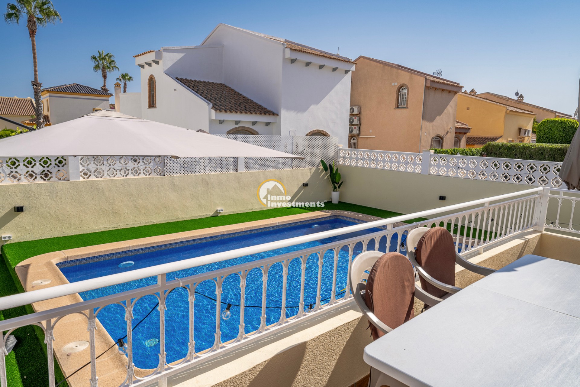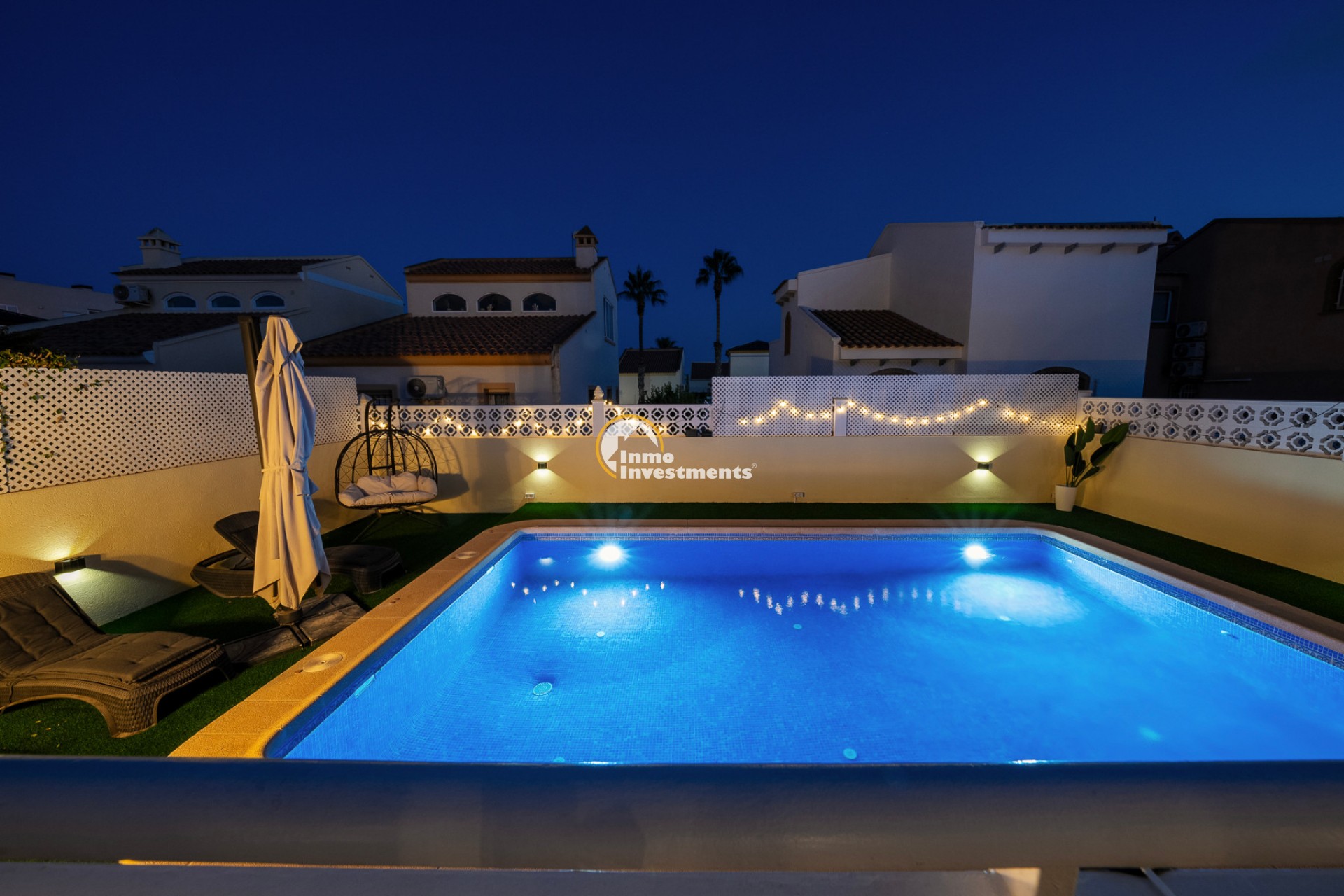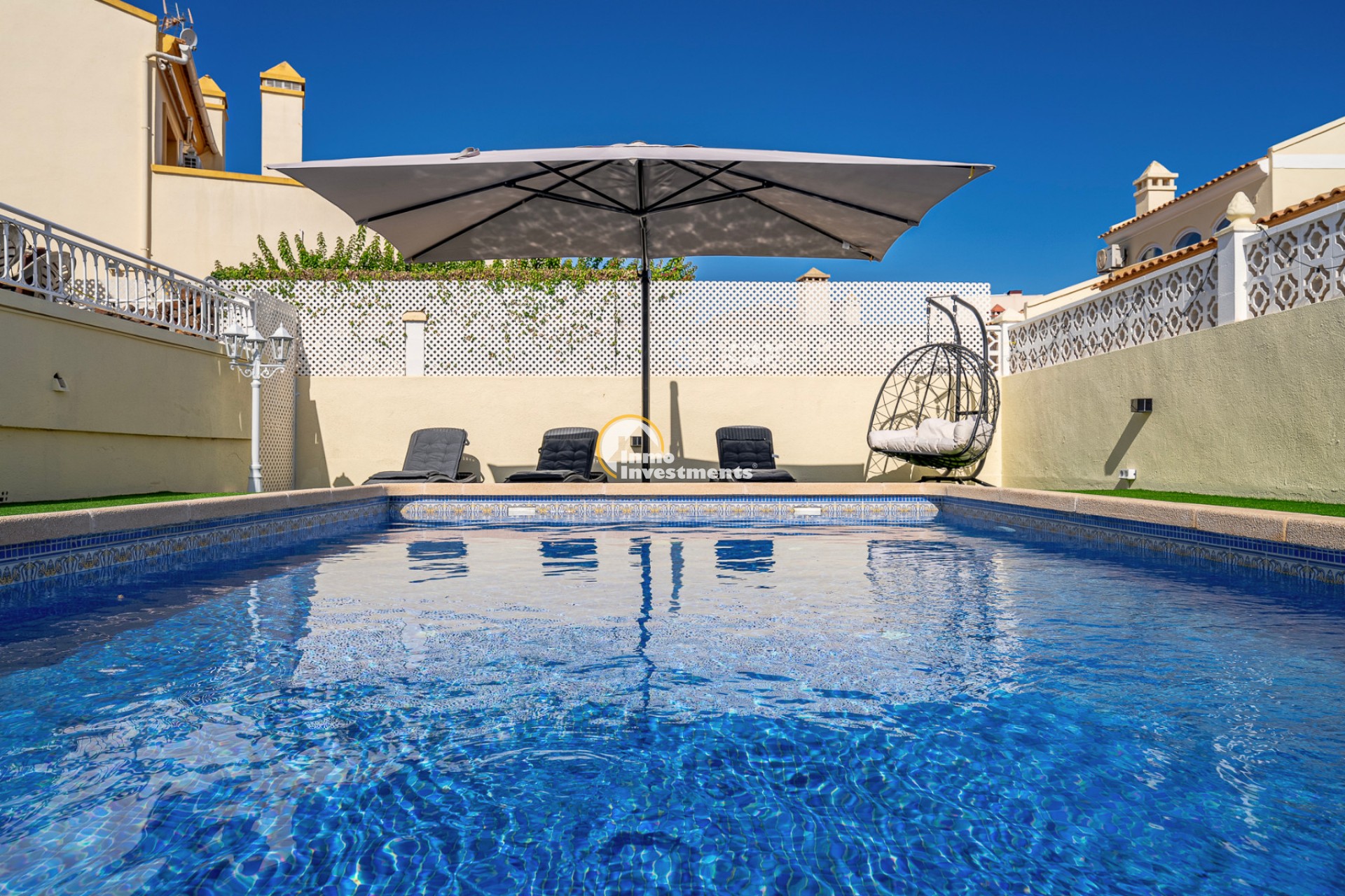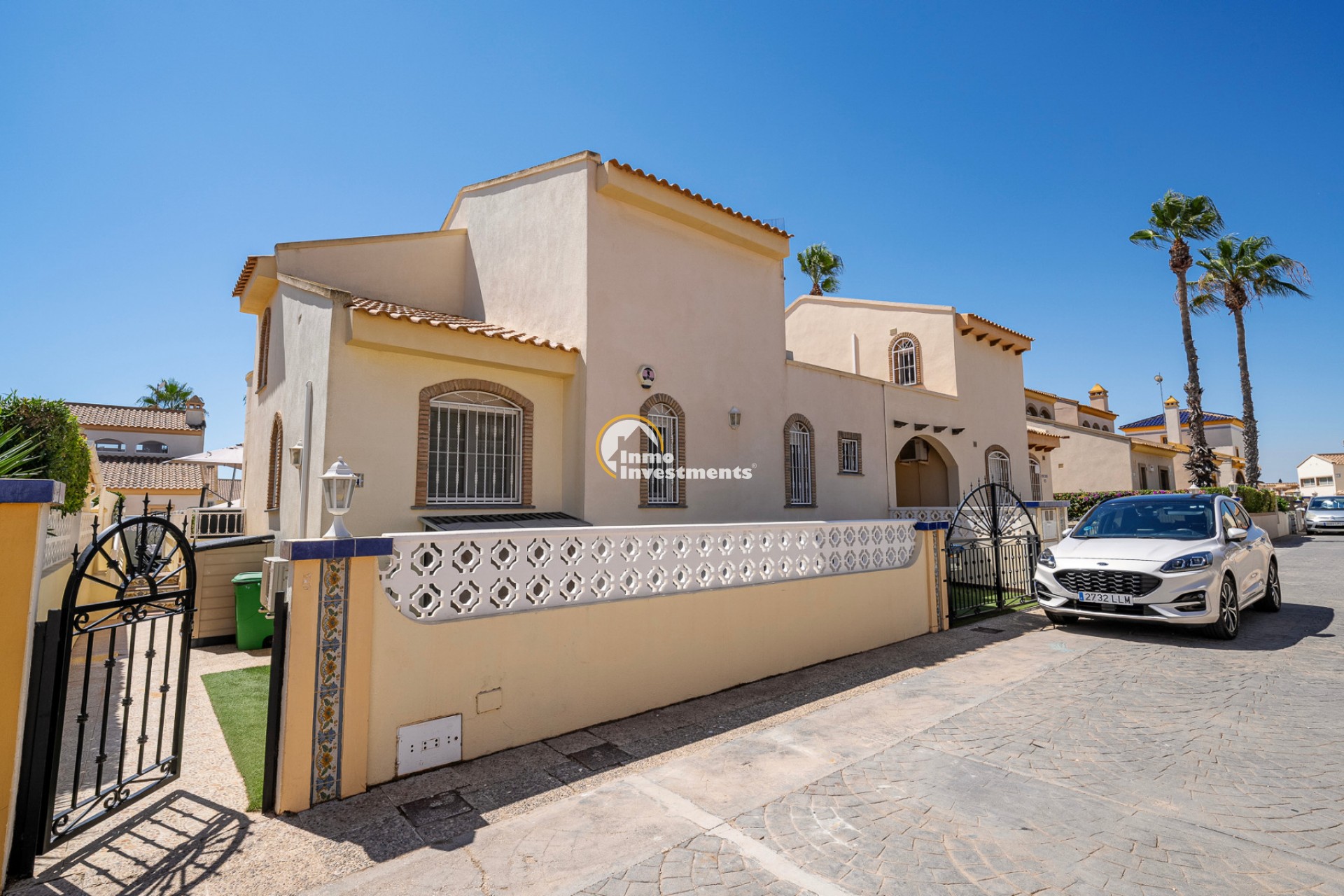 Esta villa reformada de 2 dormitorios y 2 baños se encuentra en una zona residencial consolidada de Playa Flamenca, dentro de una comunidad cerrada y segura. Ubicada en una parcela de 400 m², la propiedad ofrece privacidad, espacio exterior y una distribución práctica para una estancia vacacional cómoda.