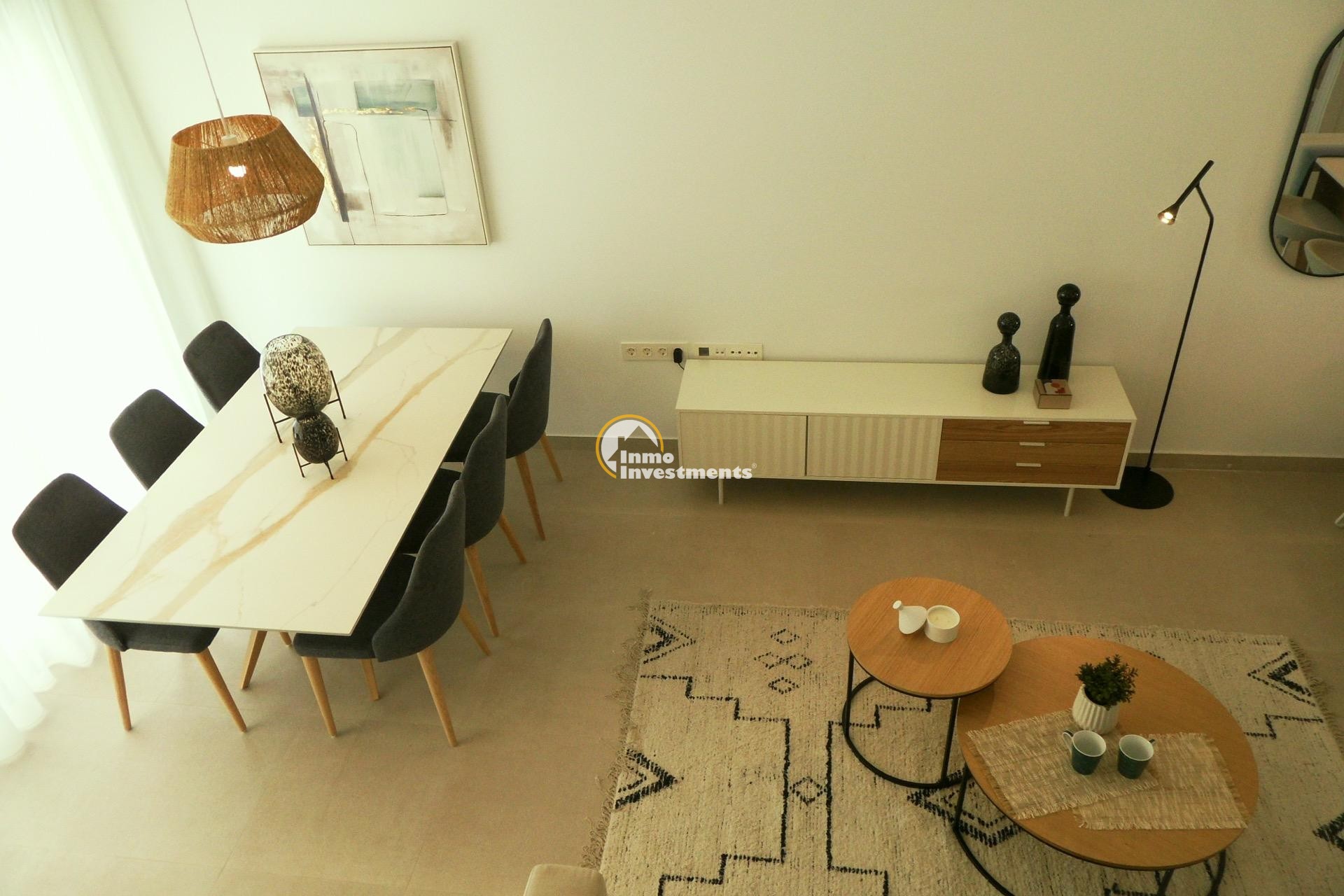 14 viviendas en Torre de la Horadada tipo duplex a un paso del mar ~PISCINA COMUNITARIA y JACUZZI CALEFACTADO~3 dormitorios y 3 baños, con solárium~Cocina amueblada con electrodomésticos~Zona para cocina o BBQ exterior en soláriums~Suelo radiante en salón, cocina y baños~Pre-instalación de Aire Acondicionado~Pack de iluminación interior y exterior incluido~Plaza de Garaje incluida~Y mucho más…~Precio solo queda uno en esquina por 450.000€~Entrega 2025 Abril