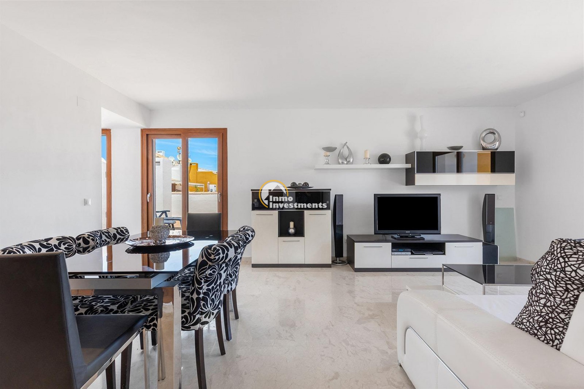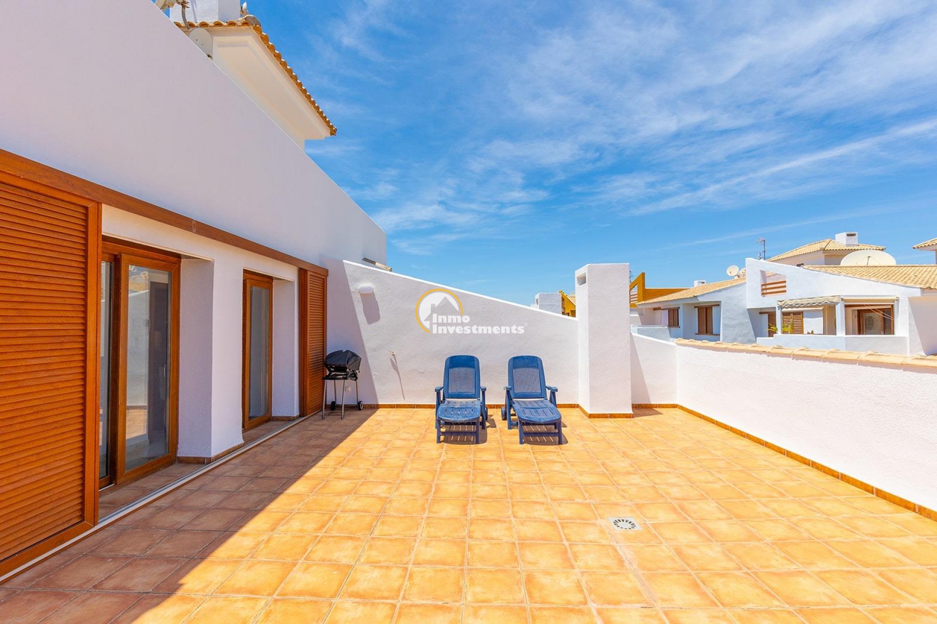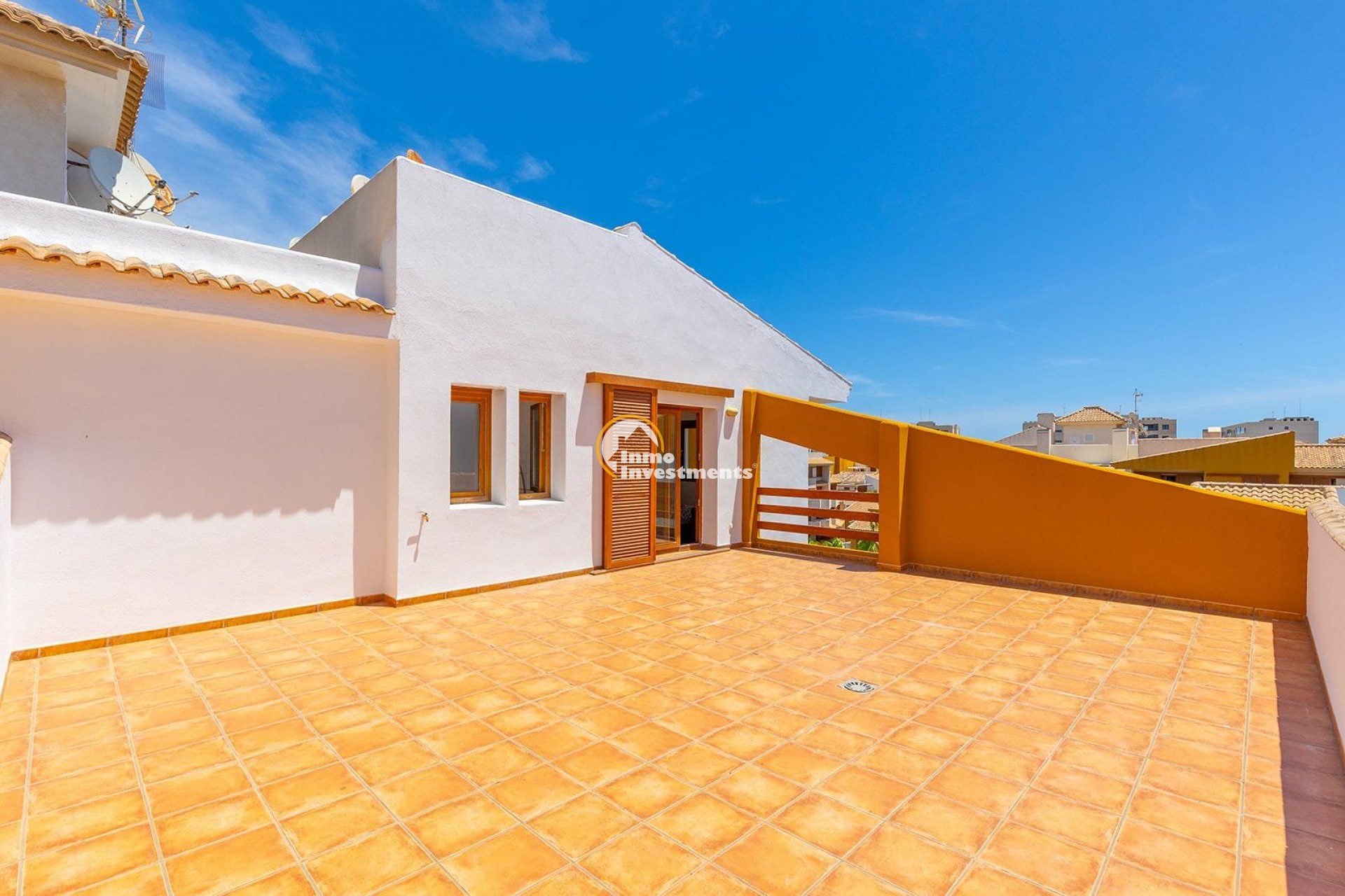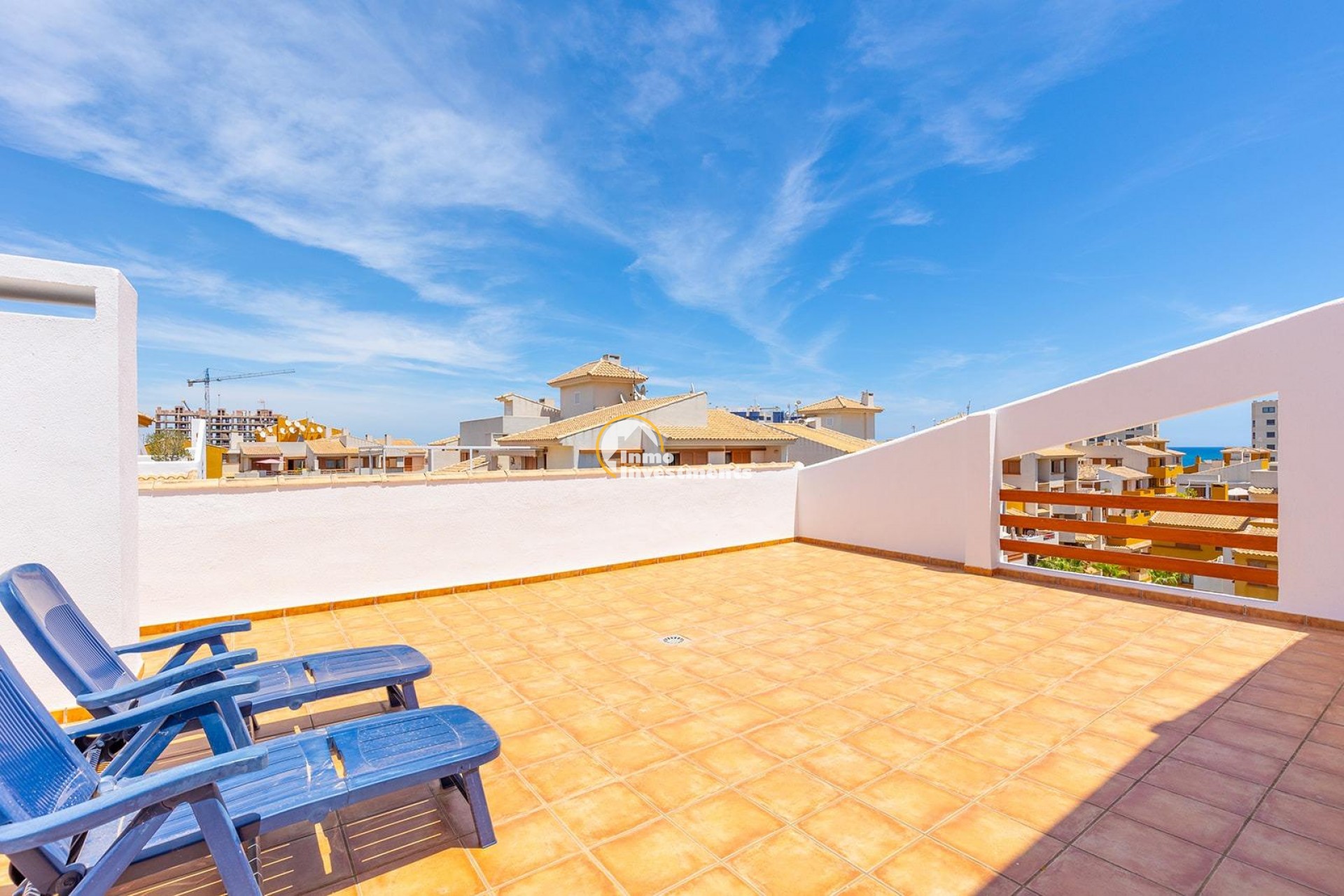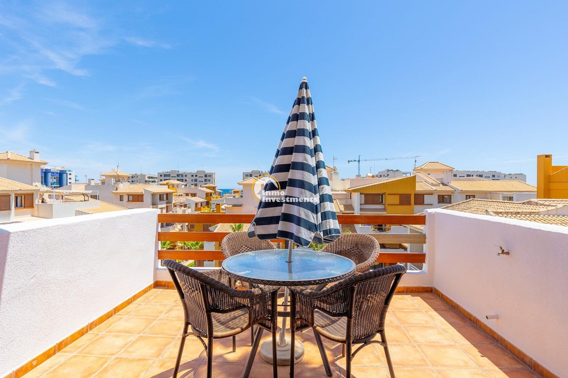 Bonito ático con 3 terrazas en el exclusivo residencial de La Recoleta, Punta Prima. La vivienda se distribuye en amplio salón-comedor, cocina americana, 2 dormitorios y 2 baños (1 de ellos en-suite). El piso también cuenta con 2 soláriums de 55m2 cada uno con orientación sur y norte y una terraza de 16m2 con orientación este y vistas las zonas comunes. Incluye plaza de parking subterráneo y trastero. El residencial cuenta con 3 piscinas comunitarias y zonas ajardinadas.~~Punta Prima es una urbanización a pie de mar, donde se puede disfrutar de deportes náuticos, ocio y playas. Se encuentra cercana a todos los servicios como del Centro Comercial Zenia Boulevard y centros deportivos. Distancia andando a Cala Piteras, Playa de Punta Prima y Playa Flamenca así como el resto de playas de bandera azul de Orihuela Costa y Torrevieja. Linda con la urbanización de Rocío del mar. A escasos minutos de los campos de Golf Las Colinas, Campoamor, Las Ramblas y Villamartín. Buena comunicación con la autopista del mediterráneo AP-7 y N-332.