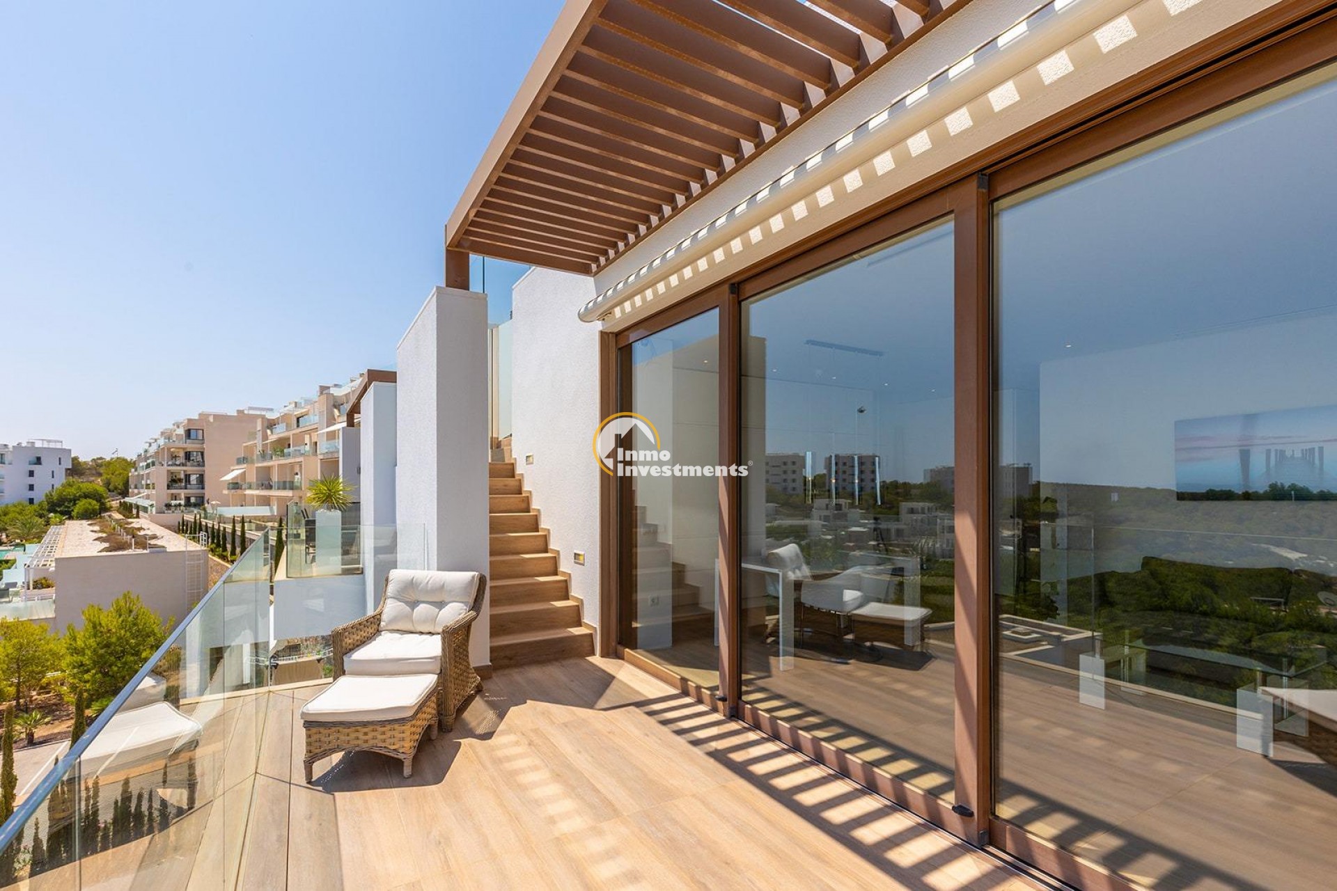 Lujoso ático en Las Colinas Golf, Orihuela Costa~~Este impresionante apartamento en última planta ofrece un amplio salón-comedor y cocina abierta, totalmente equipada con electrodomésticos junto con una terraza con vistas a la piscina comunitaria y zonas verdes. La vivienda cuenta con dos luminosas habitaciones y un solárium privado con cocina abierta. Incluido en el apartamento viene una plaza de aparcamiento y un trastero privado en el sótano.~~Las Colinas Golf & Country Club, el corazón de la Costa Blanca Sur, es una urbanización privilegiada rodeada no solo de uno de los mejores campos de golf en toda España, sino también hermosos paisajes mediterráneos, extensos campos de naranjos y limoneros, y paseos pintorescos por un entorno natural sin igual en la zona. Asimismo, Las Colinas Golf & Country Club ofrece una completa oferta deportiva y de ocio entre las que se encuentran: Las Colinas Sports & Health Club, un racquet club y tres restaurantes con una variada propuesta gastronómica. Situado a 40 minutos del aeropuerto de Alicante y a 1 hora del aeropuerto de Murcia – Corvera