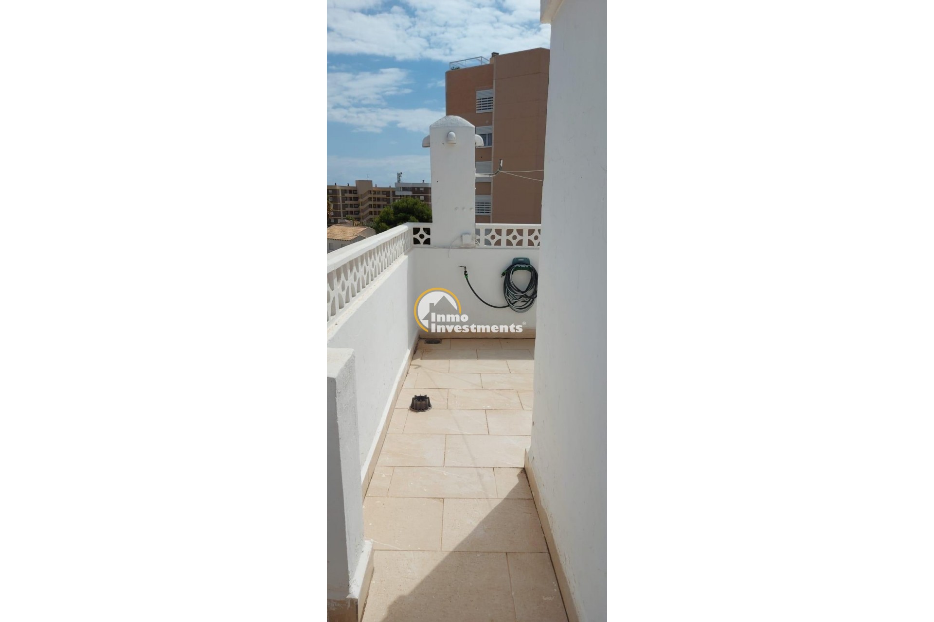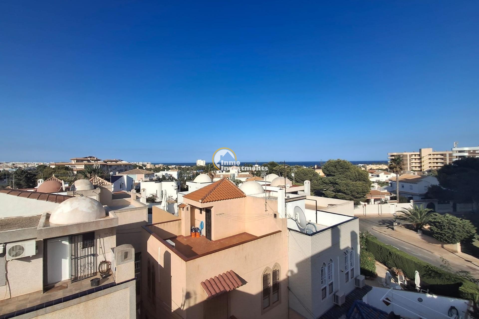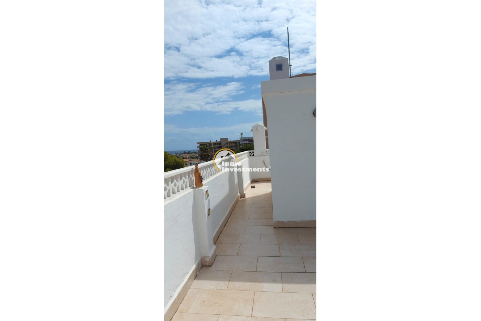 Descubre este impresionante ático ubicado en el corazón de Orihuela Costa, concretamente en la codiciada zona de La Zenia. Con una superficie amplia de 86 m2 distribuidos inteligentemente, esta propiedad ofrece tres luminosas habitaciones dobles y dos baños completos que garantizan comodidad para toda la familia. Su orientación sureste maximiza las horas de sol durante todo el día, creando un ambiente cálido y acogedor.~~La cocina está completamente equipada con electrodomésticos modernos que facilitan su uso diario. Entre sus características más destacadas se encuentran aire acondicionado para disfrutar del máximo confort incluso en los meses más calurosos del año; armarios empotrados amplios ideales para organizar tus pertenencias; además cuenta con un hermoso solárium donde podrás relajarte o compartir momentos inolvidables con amigos mientras disfrutas de excepcionales vistas al mar.~~Este atractivo inmueble también dispone tanto de terraza como terraza acristalada perfecta para disfrutar sin importar las inclemencias climáticas. Situado dentro una urbanización vallada bien cuidada, tendrás acceso a zonas ajardinadas rodeadas por árboles frondosos lo cual proporciona privacidad e intimidad.~~Ubicado estratégicamente cerca colegios locales así como parques recreativos adecuados para niños te permitirá vivir cómodamente junto a todos los servicios necesarios: supermercados , restaurantes etc., sin perderte ni un instante del espléndido litoral español ya que solo estás aproximadamente a seis minutos caminando desde uno playa espectacular . ~~El gasto mensual asociado es muy accesible siendo únicamente €200 euros comunidad dado todas estas maravillosas comodidades! No pierdas esta oportunidad única!