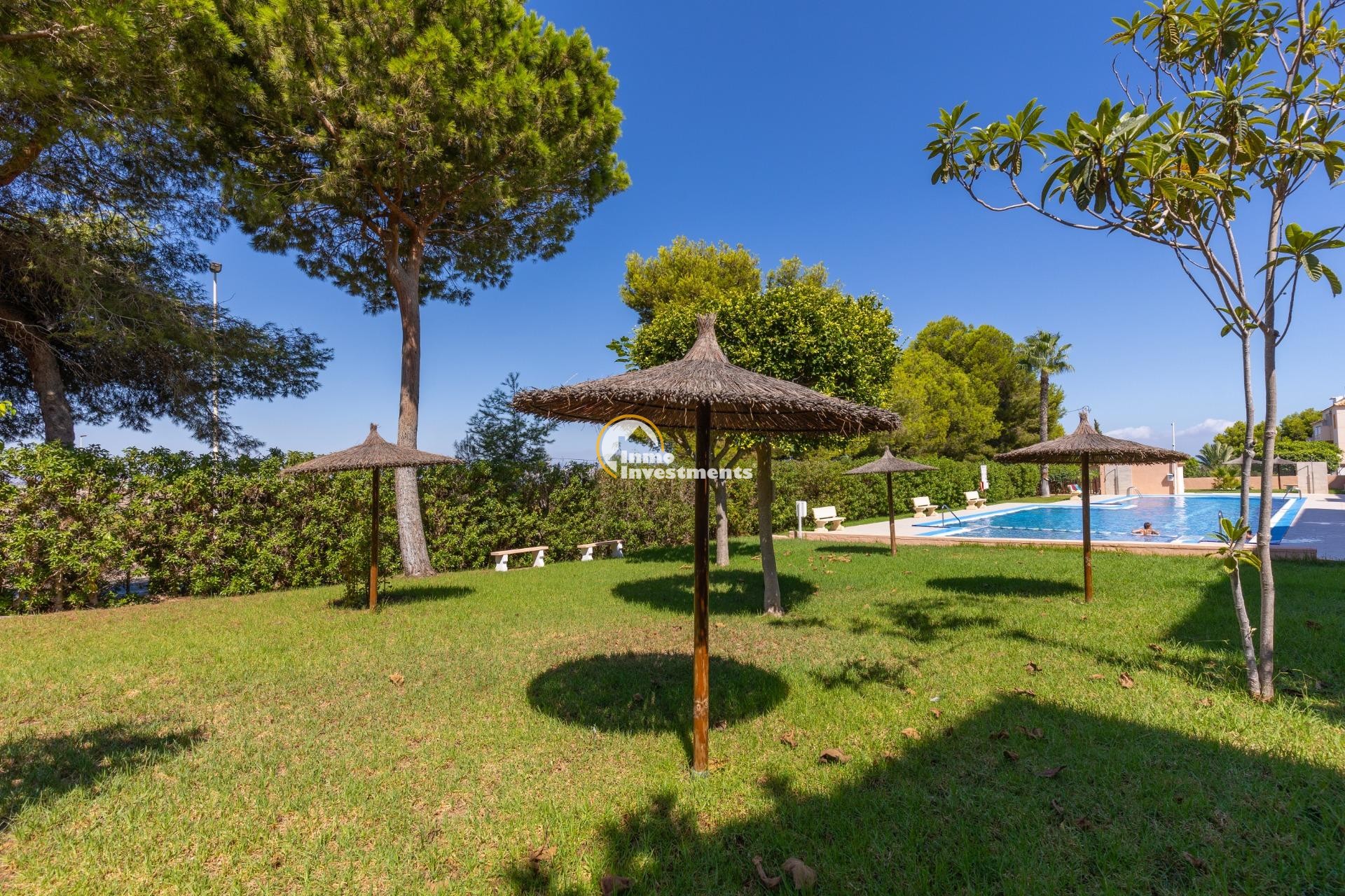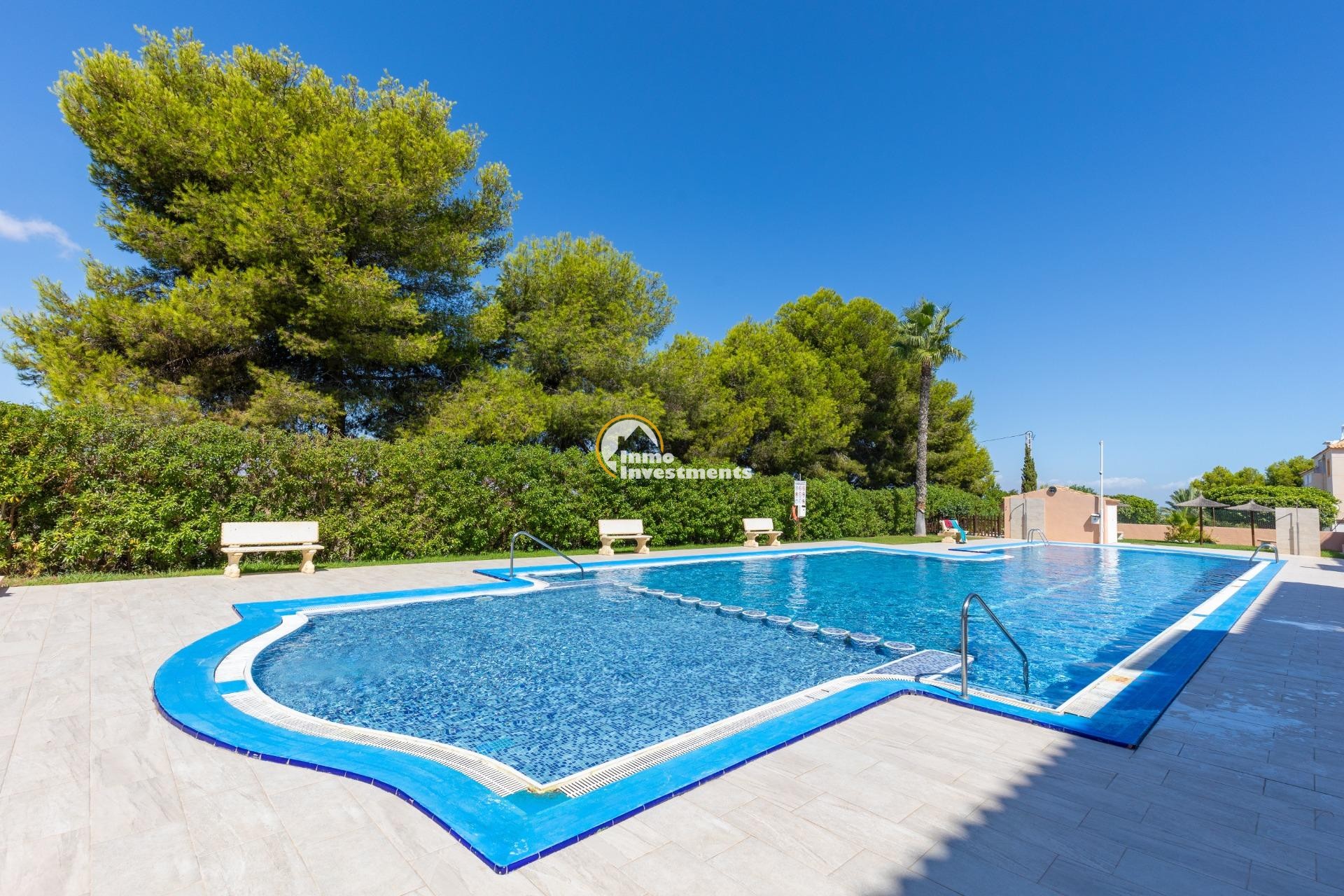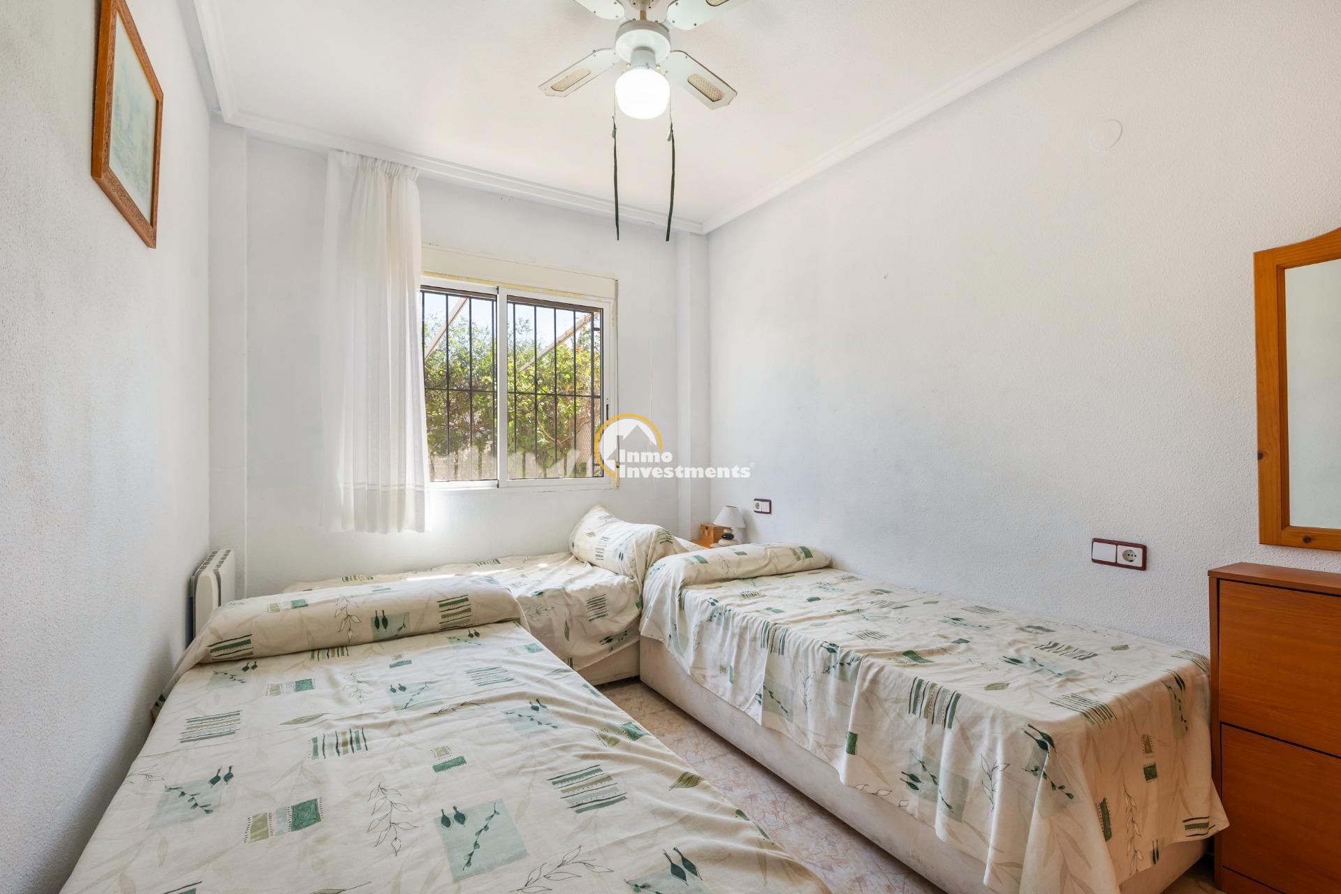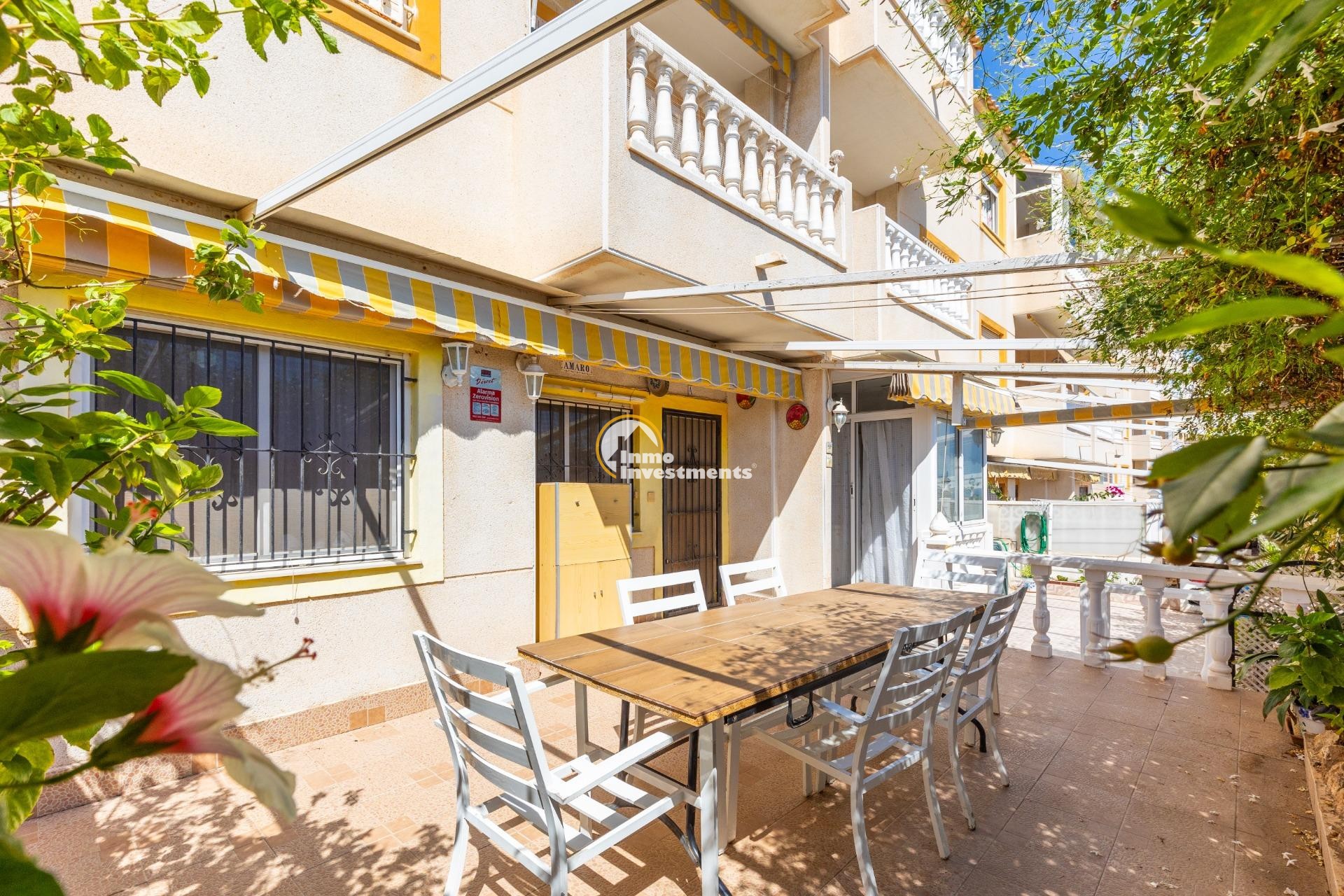 Descubre este encantador bungalow de planta baja situado en la deseada zona de Torre La Mata, a tan solo 1200 metros de las hermosas playas del Mediterráneo. Con una superficie construida de 87 m2, esta propiedad destaca por su excelente estado y luminosidad natural. Cuenta con cuatro amplias habitaciones dobles que ofrecen comodidad para toda la familia o invitados, así como dos baños equipados. Su cocina totalmente equipada es ideal para los amantes del arte culinario.~~La orientación este proporciona un ambiente cálido durante las mañanas y vistas agradables hacia el mar desde diversas áreas del hogar. Entre sus características adicionales se incluyen aire acondicionado instalado, armarios empotrados espaciosos y acceso a un atractivo jardín privado donde disfrutar momentos al aire libre.~~Los residentes también podrán beneficiarse de una piscina comunitaria perfecta para relajarse bajo el sol veraniego.También cuenta con servicios completos cercanos: autobuses que conectan rápidamente diferentes puntos clave; centros comerciales bien surtidos; hospitales locales competentes; campos deportivos como golf e instalaciones recreativas incluyendo parques infantiles ideales para familias.~~Además ,la urbanización está cerrada ofreciendo seguridad adicional .Con unos gastos mensuales razonables (260 Eur), no pierdas la oportunidadde hacer tu sueño realidad viviendo cerca d ela costa