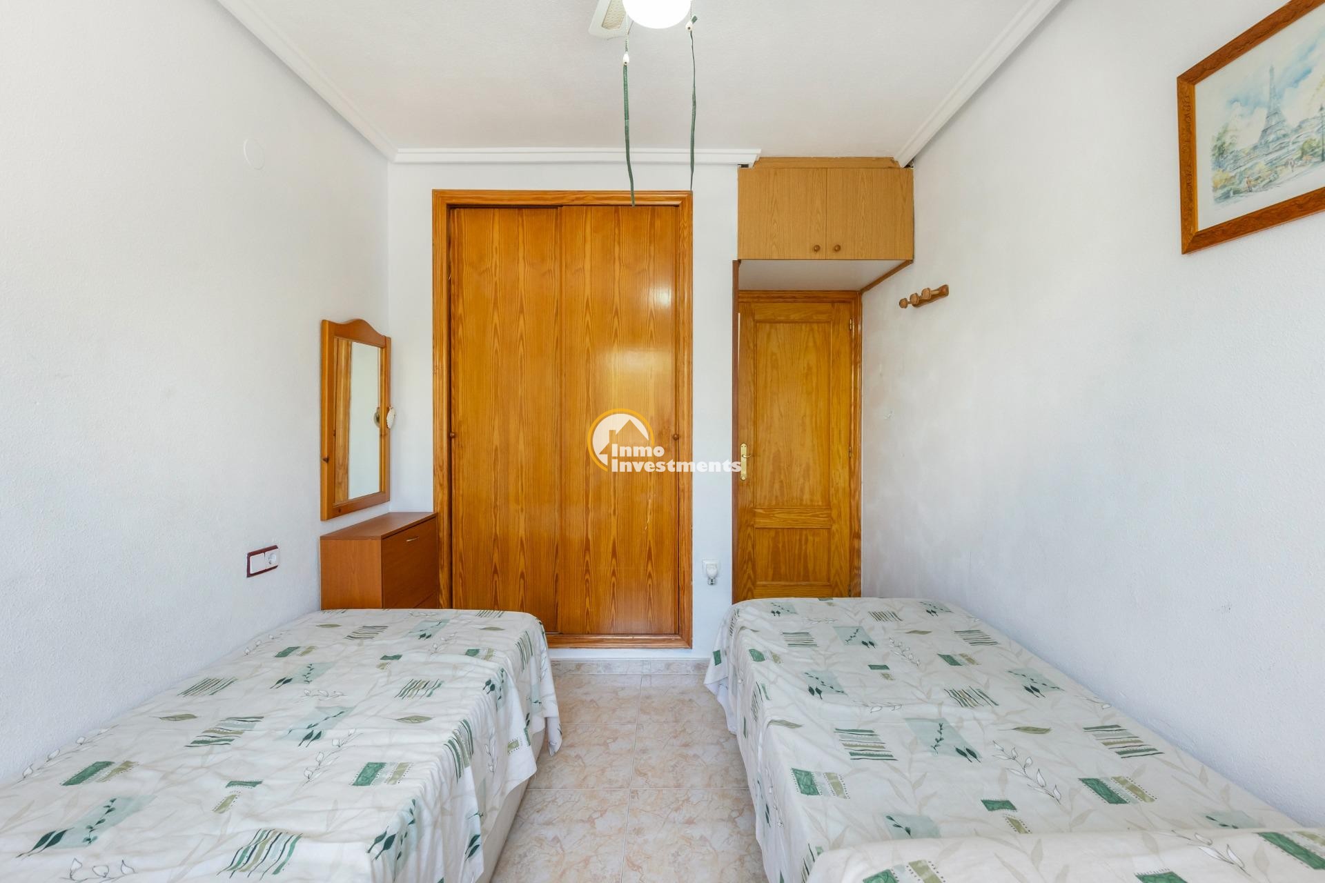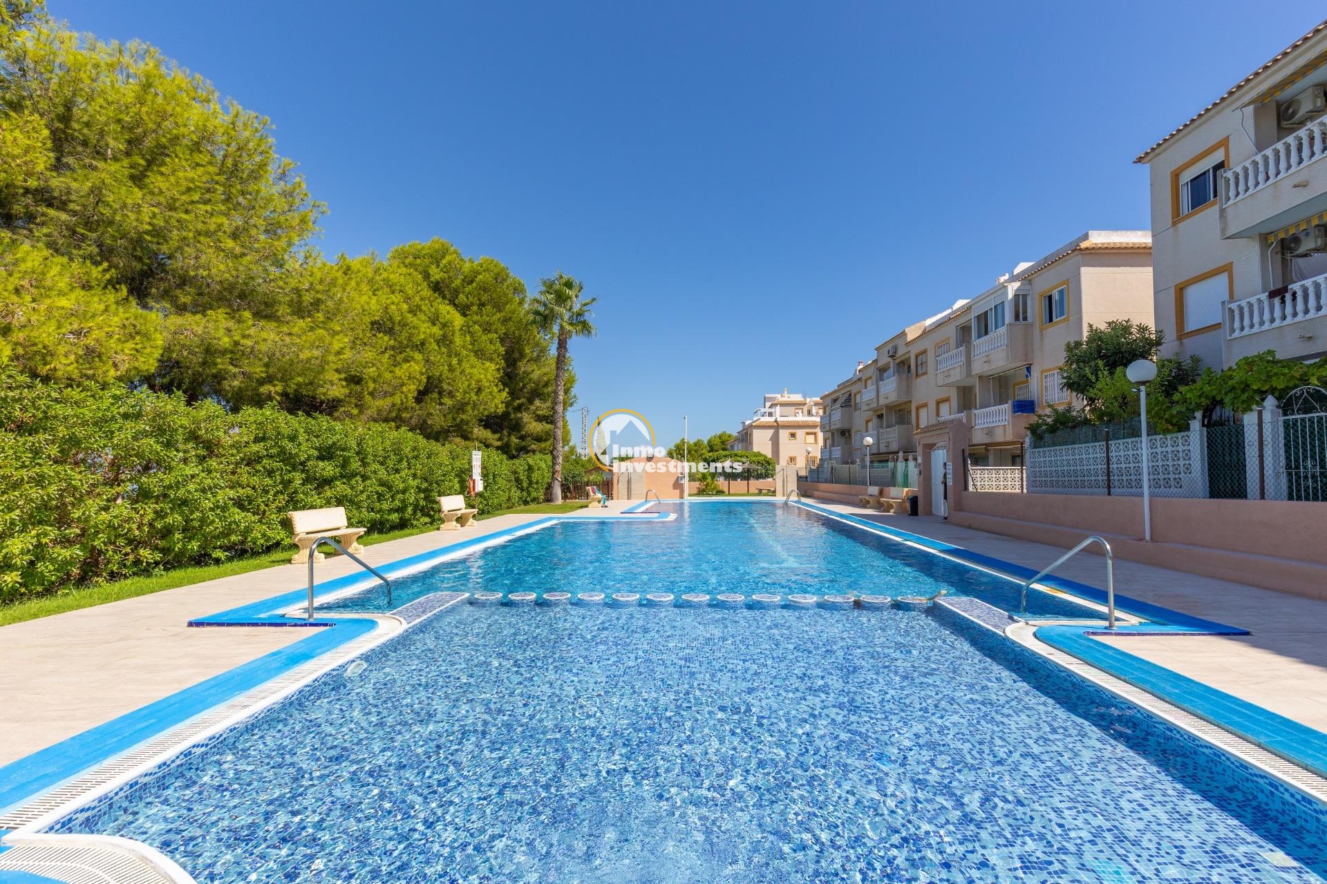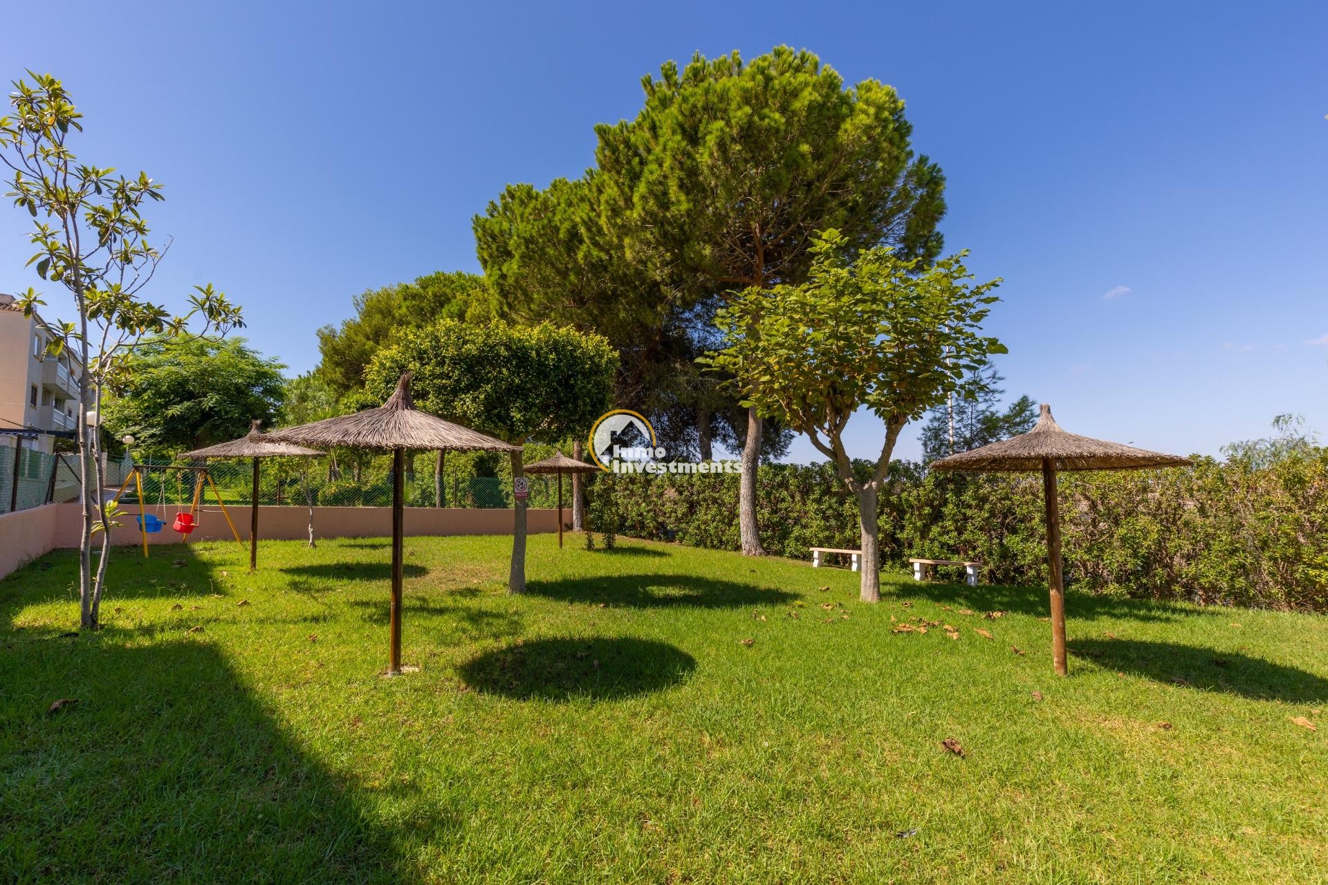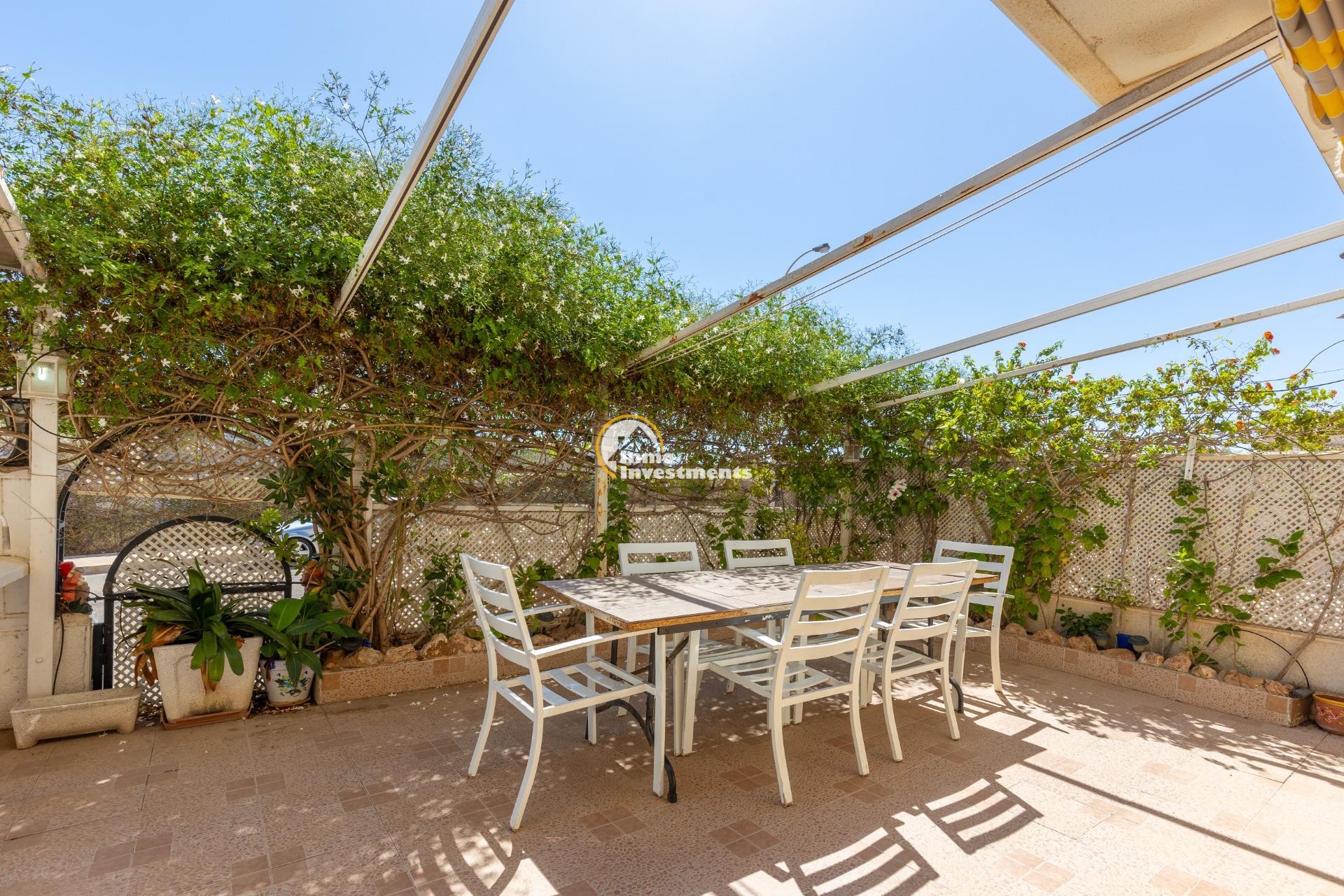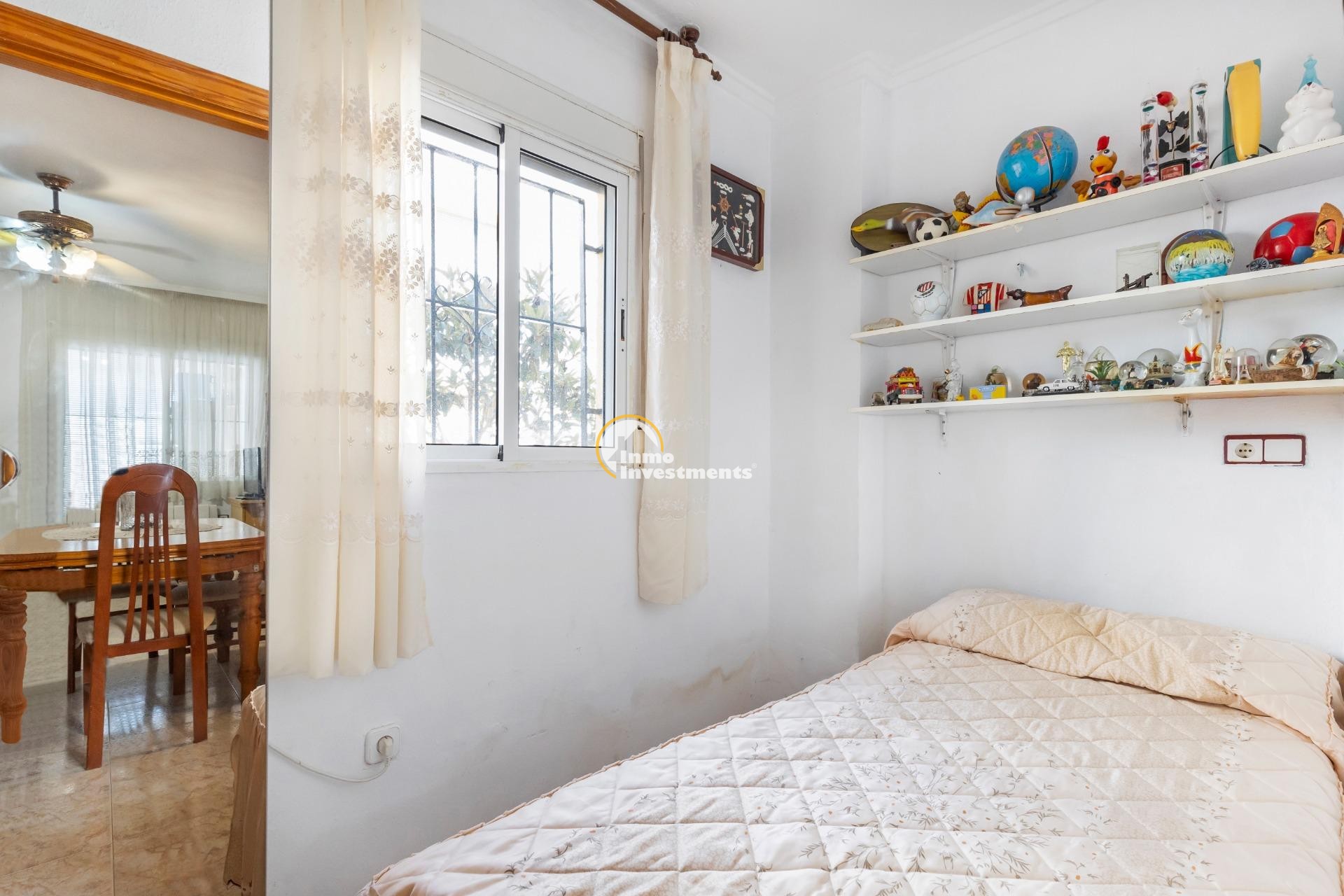 Descubre este encantador bungalow de planta baja situado en la deseada zona de Torre La Mata, a tan solo 1200 metros de las hermosas playas del Mediterráneo. Con una superficie construida de 87 m2, esta propiedad destaca por su excelente estado y luminosidad natural. Cuenta con cuatro amplias habitaciones dobles que ofrecen comodidad para toda la familia o invitados, así como dos baños equipados. Su cocina totalmente equipada es ideal para los amantes del arte culinario.~~La orientación este proporciona un ambiente cálido durante las mañanas y vistas agradables hacia el mar desde diversas áreas del hogar. Entre sus características adicionales se incluyen aire acondicionado instalado, armarios empotrados espaciosos y acceso a un atractivo jardín privado donde disfrutar momentos al aire libre.~~Los residentes también podrán beneficiarse de una piscina comunitaria perfecta para relajarse bajo el sol veraniego.También cuenta con servicios completos cercanos: autobuses que conectan rápidamente diferentes puntos clave; centros comerciales bien surtidos; hospitales locales competentes; campos deportivos como golf e instalaciones recreativas incluyendo parques infantiles ideales para familias.~~Además ,la urbanización está cerrada ofreciendo seguridad adicional .Con unos gastos mensuales razonables (260 Eur), no pierdas la oportunidadde hacer tu sueño realidad viviendo cerca d ela costa