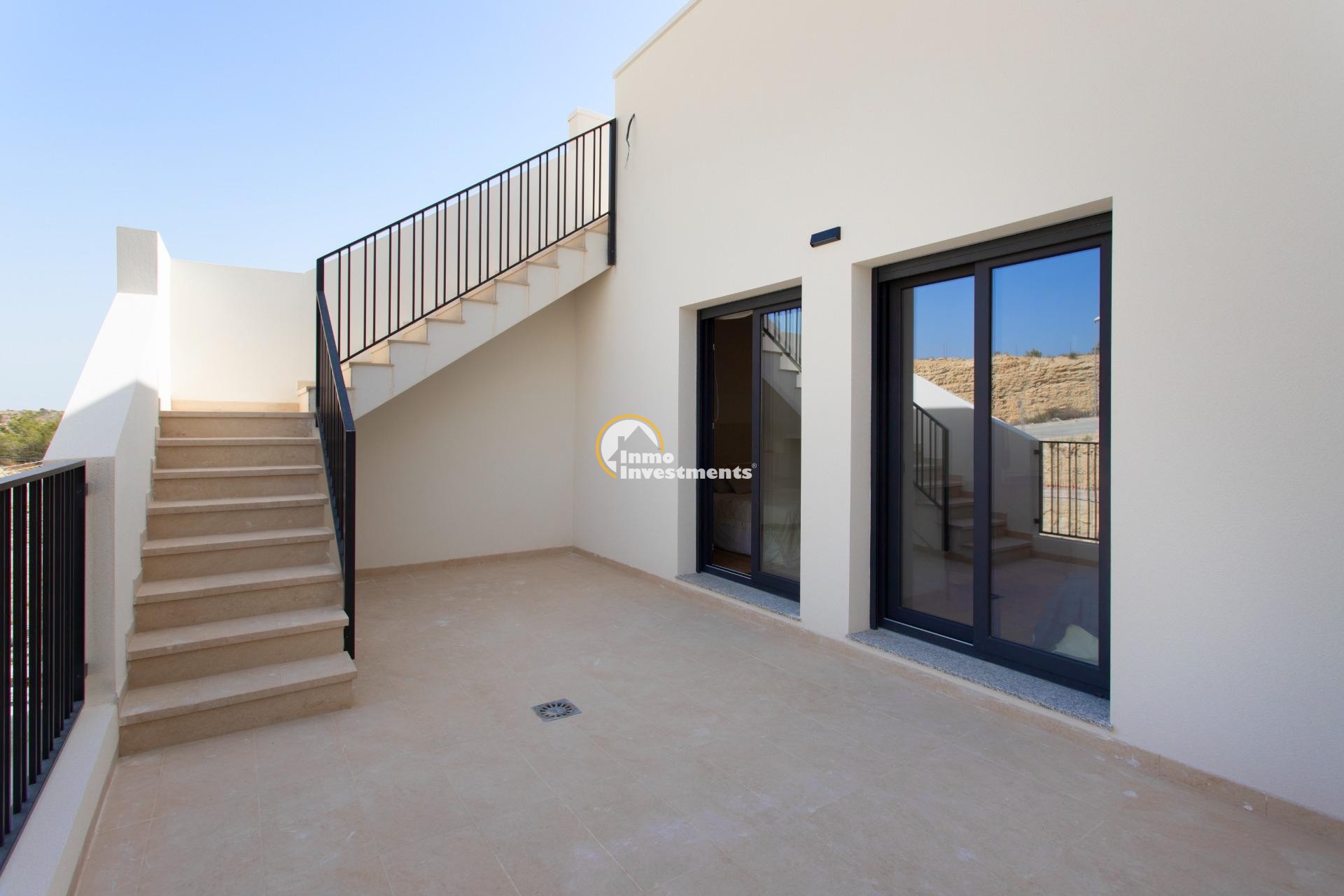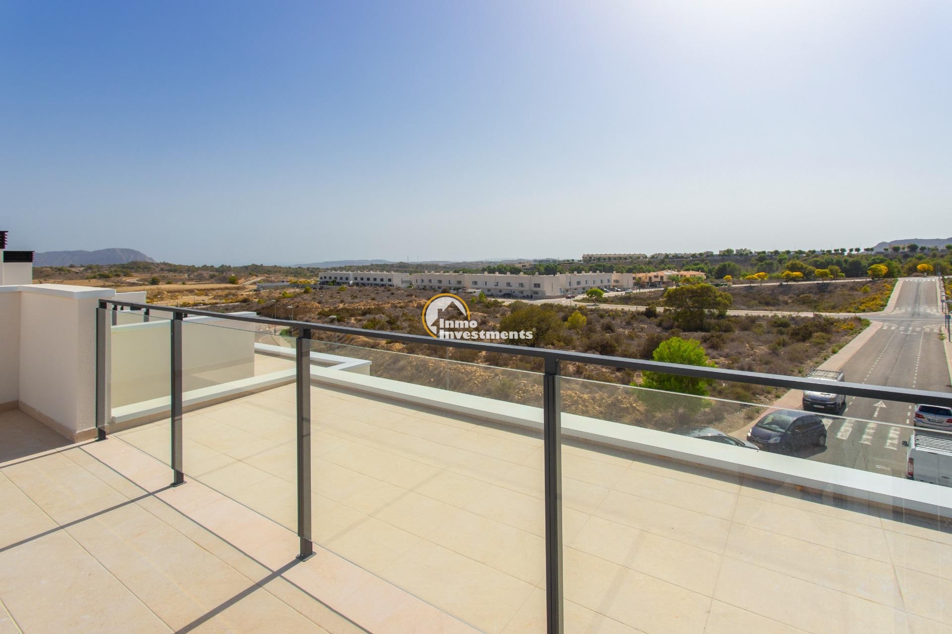 Descubre esta impresionante casa tipo dúplex ubicada en la encantadora localidad de Monforte del Cid, dentro de la Comunidad Valenciana. Con una superficie total de 146 m2 y un amplio espacio exterior que incluye una terraza privada de 69 m2, este inmueble está diseñado para ofrecer confort y estilo a sus residentes. A tan solo 20 km de las hermosas playas mediterráneas, cuenta con tres habitaciones dobles luminosas y dos baños completos más un aseo adicional, garantizando comodidad para toda la familia.~~La propiedad es nueva e incorpora acabados modernos tales como cocina completamente equipada con electrodomésticos integrados, carpintería interior lacada en blanco ofreciendo elegancia al hogar y suelos porcelánicos que combinan durabilidad con diseño contemporáneo. La orientación este asegura cálidos amaneceres mientras disfruta por completo los espacios interiores iluminados naturalmente.~~Entre sus múltiples extras se destacan el aire acondicionado centralizado (bomba frío/calor), calefacción radiante, armarios empotrados tanto funcionales como estéticos; así como elementos adicionales que brindan seguridad: puerta blindada y sistema descalcificador instalado. Relájese o disfrute momentos inolvidables junto a familiares amigos desde el solárium privado o aproveche las instalaciones comunitarias incluyendo piscina rodeada jardines bien cuidados.~~Ubicándose estratégicamente cerca colegios prestigiosos, universidades, centros médicos, supermercados, áreas recreativas, campos golf, hospitales, montañas y vistas despejadas hacia entornos naturales tranquilos le sitúa no sólo cómodo sino también conectado convenientemente con todo lo necesario diariamente! Incluye además garaje exclusivo acceso directo sótano.