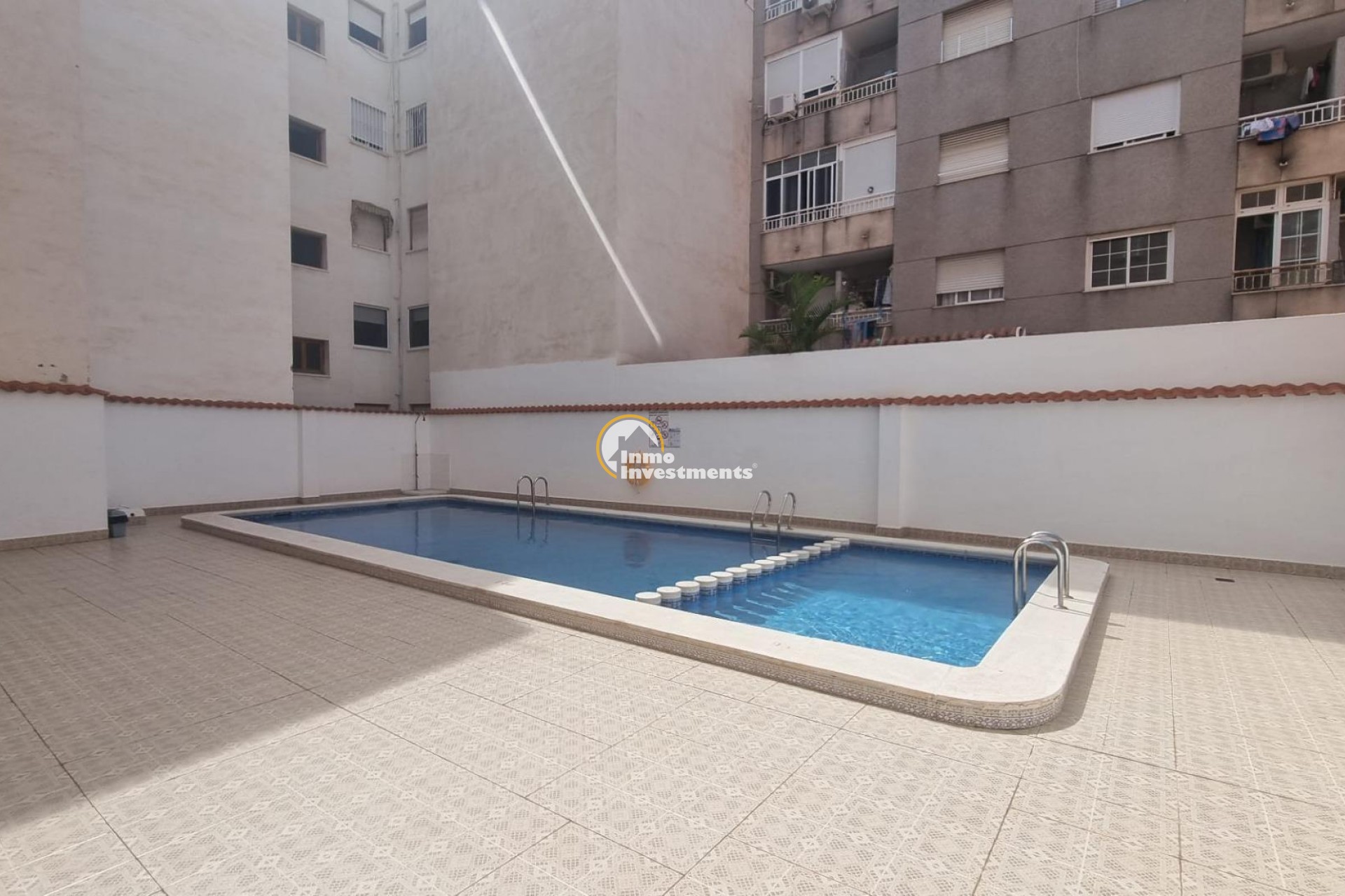 1. Piso → Apartamento en Torrevieja zona Playa del Cura, 64 m. de superficie, 500 m. de la playa, 2 habitaciones dobles, un baño, propiedad para Entrar a vivir, carpinteria interior de aluminio, orientación norte, suelo de baldosa, carpinteria exterior de aluminio.~Extras: acceso pmr, agua, alarma, armarios empotrados, ascensor, balcón, luminoso, muebles, piscina comunitaria, terraza, autobuses, árboles, céntrico, colegios, parques, supermercados, zona de paso~Gastos de comunidad: 65 Eur.~