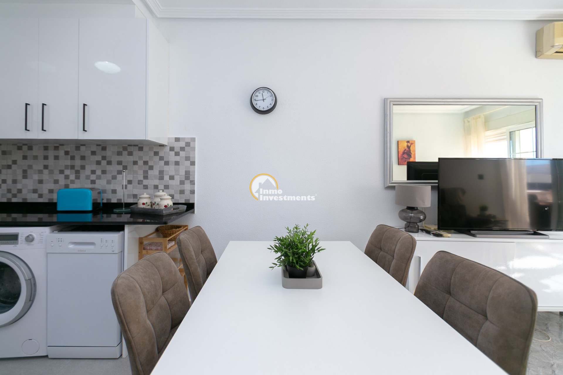El apartamento se encuentra en la primera planta. Al entrar en la vivienda, nos recibe un acogedor salón con cocina abierta. El salón tiene acceso directo a una terraza soleada. La propiedad también dispone de dos dormitorios dobles y un baño completo. Un solárium privado y soleado, accesible mediante una escalera, ofrece un espacio exterior adicional para disfrutar del clima español.
