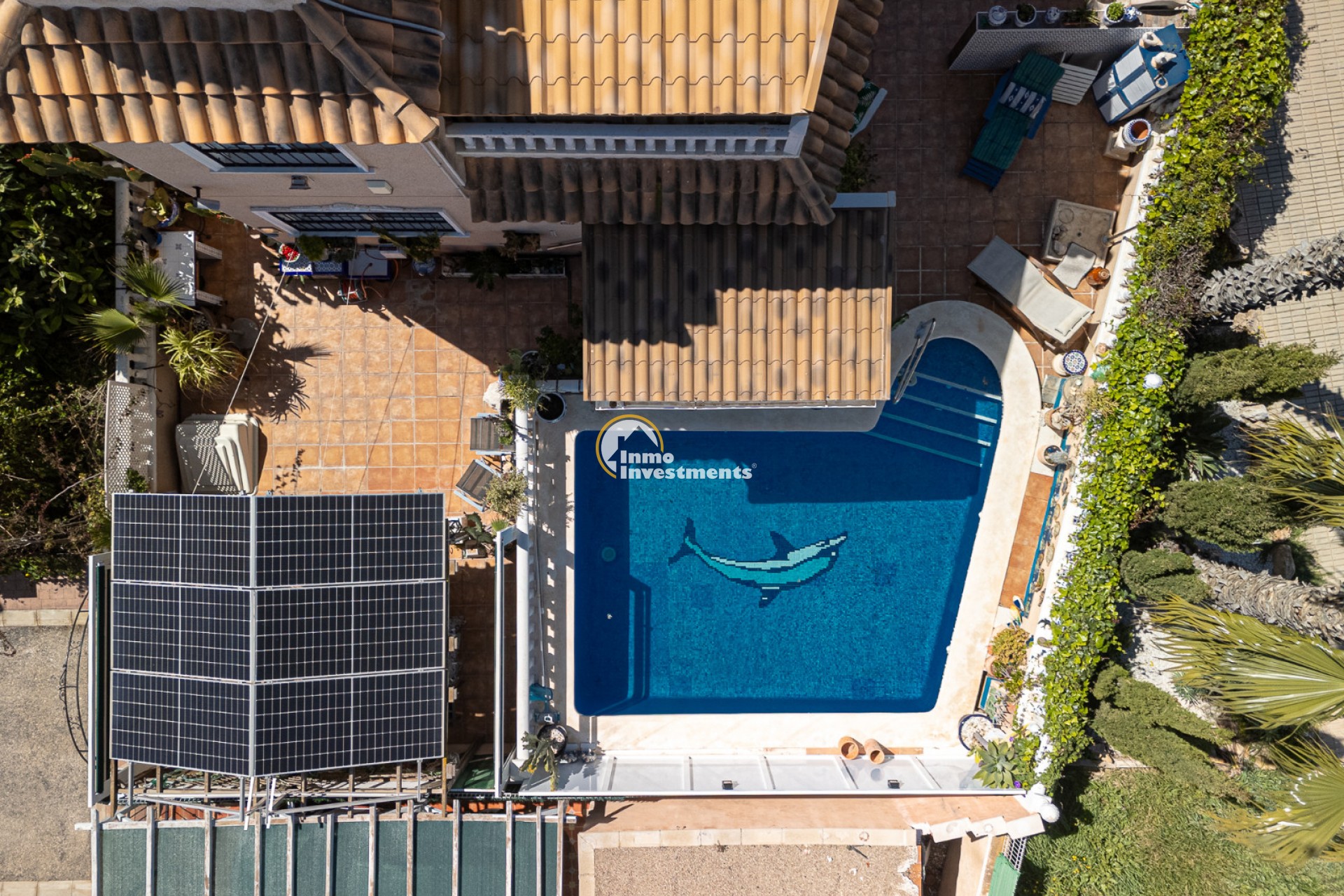 El exterior es uno de sus grandes atractivos: una cuidada parcela en esquina con abundantes detalles florales, perfecta para los amantes de la jardinería, junto a una piscina privada que invita a disfrutar del clima mediterráneo en total intimidad.