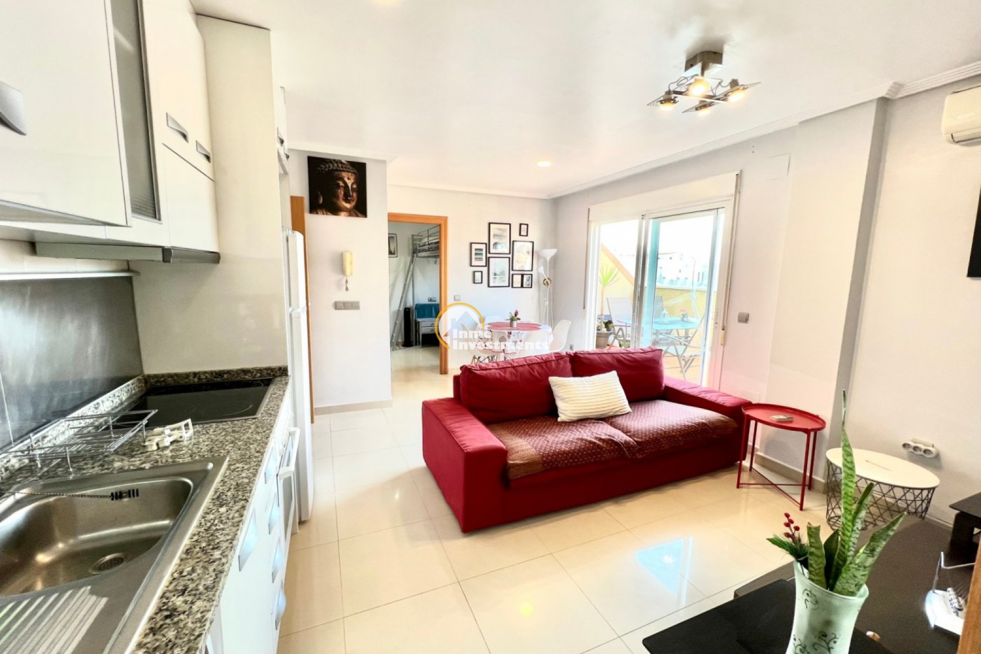 *Ático de Lujo en el Corazón de la Ciudad con Alta Rentabilidad y Vistas Panorámicas*~~Este espectacular ático de 75 m2, situado a solo 400 metros de la playa en Torrevieja, destaca por su diseño moderno y elegante, con una *impresionante terraza privada de 30 m2* que ofrece vistas panorámicas de la ciudad. La propiedad es seminueva y se presenta con acabados de alta calidad, incluyendo suelos de porcelana y carpintería exterior de aluminio/climalit, lo que garantiza una construcción robusta y una estética contemporánea.~~El interior es luminoso y abierto, con grandes ventanales que permiten la entrada de abundante luz natural. La cocina de concepto abierto está equipada con electrodomésticos de última generación, y se integra perfectamente con la sala de estar, que a su vez conecta con la terraza, ideal para disfrutar de momentos al aire libre.~~*Características destacadas:*~- 2 habitaciones dobles amplias y un baño funcional con acabados modernos.~- Ubicación céntrica en Torrevieja, rodeada de todos los servicios esenciales: supermercados, farmacias, comercios y transporte público.~- Acceso directo a la Autopista del Mediterráneo AP7 y a solo 40 minutos del Aeropuerto Internacional de Alicante.~- *Extras*: ascensor, calefacción, luminosidad excepcional y conexión a internet de alta velocidad.~~*Ventajas de inversión:*~- *LICENCIA TURÍSTICA* que ofrece *alta rentabilidad anual*, perfecta tanto para inversores como para quienes buscan una residencia principal.~- *Gastos de comunidad bajos*: 35 euros al mes.~~Este ático no solo ofrece un espacio habitable de lujo, sino que también se presenta como una excelente oportunidad de inversión en una de las zonas más demandadas de Torrevieja. ¡Contáctanos para más detalles o para programar una visita!