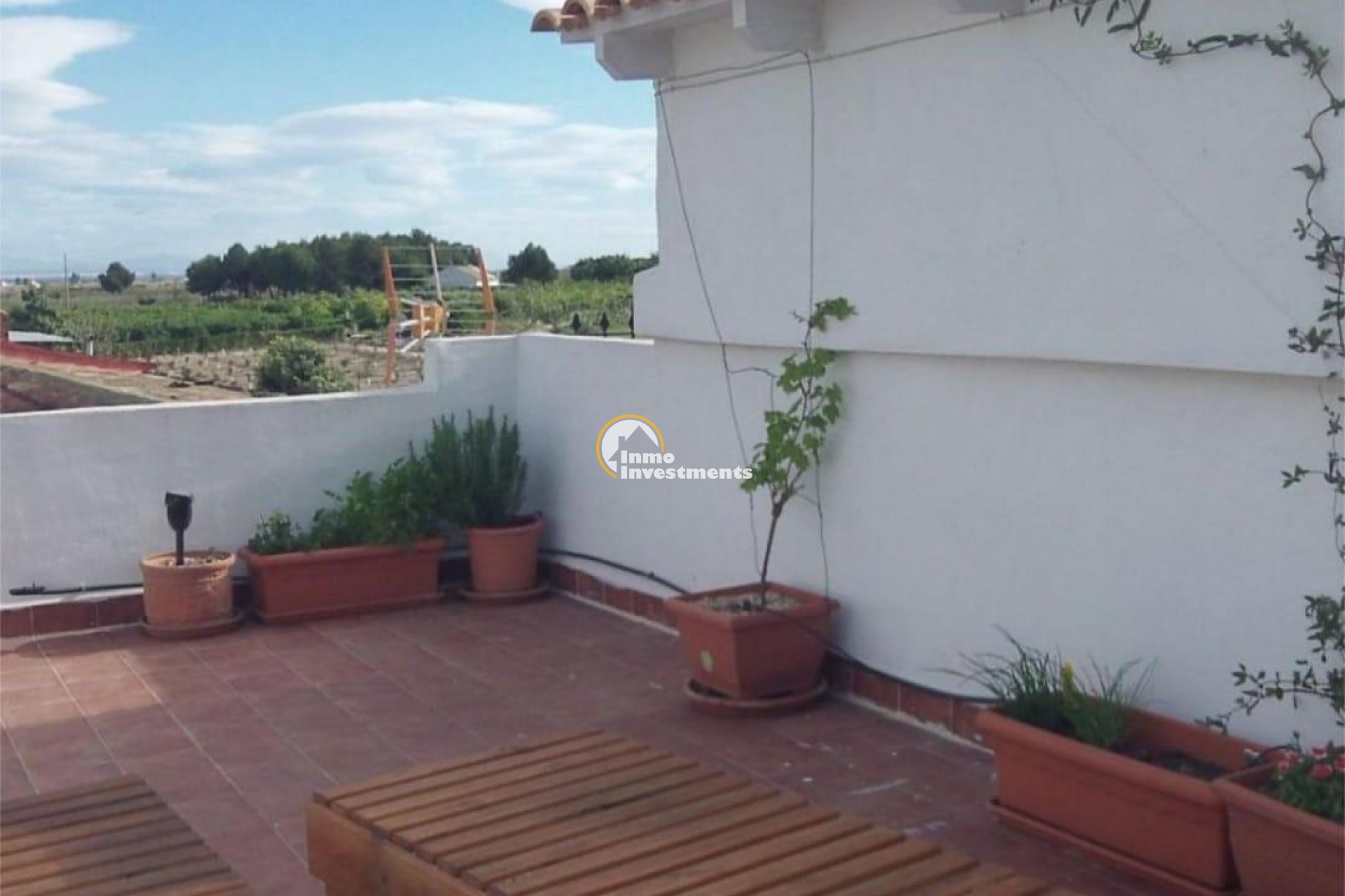 ¡Casa adosada en Venta!~~Características:~~Ubicación: Cerca de Orihuela, a 15 minutos de la playa y a 35 minutos del aeropuerto de Alicante~Plantas: 2~Dormitorios: 4 (3 dobles y 1 individual)~Baños: 2 completos (uno en suite con ducha y WC)~Climatización: Aire acondicionado en el salón comedor, una de las habitaciones dobles y el dormitorio principal~Seguridad: Rejas en todas las ventanas y puertas, sistema de alarma~Ventanas: Doble acristalamiento con mosquiteras fijas~~Descripción:~~Planta Baja:~~Salón Comedor: Amplio, con aire acondicionado, ideal para reuniones familiares y momentos de relajación.~Habitaciones: Dos habitaciones dobles (una con aire acondicionado) y una habitación individual, ofreciendo espacio suficiente para una familia.~Baño Completo: Con ducha y bañera independientes.~Segundo Piso:~~Pasillo: Amplio y aireado, con estanterías y un área de estar.~Dormitorio Principal: Con baño privado (ducha y WC), aire acondicionado, un armario grande, un armario pequeño y estanterías.~Azotea: Grande y abierta al sol, con una parte cubierta y vistas espectaculares a las montañas y el campo hacia Orihuela. Incluye un cobertizo de buen tamaño para herramientas y almacenamiento.~Exterior:~~Jardín: Con preciosas flores y vistas a un campo de naranjos. Parte del jardín está cubierta e incorpora una barbacoa, ideal para disfrutar de comidas al aire libre.~Piscina Municipal: A 5 minutos a pie, cuenta con 4 piscinas de diferentes profundidades, desde infantiles hasta más profundas.~Servicios Cercanos: El pueblo cuenta con una tienda local y un par de bares. Los supermercados más grandes se encuentran a 5 minutos en coche en Almoradí.~~¡No pierdas la oportunidad de adquirir esta encantadora casa con todas las comodidades y una ubicación inmejorable!~~Para más información o para concertar una visita, por favor, contacta