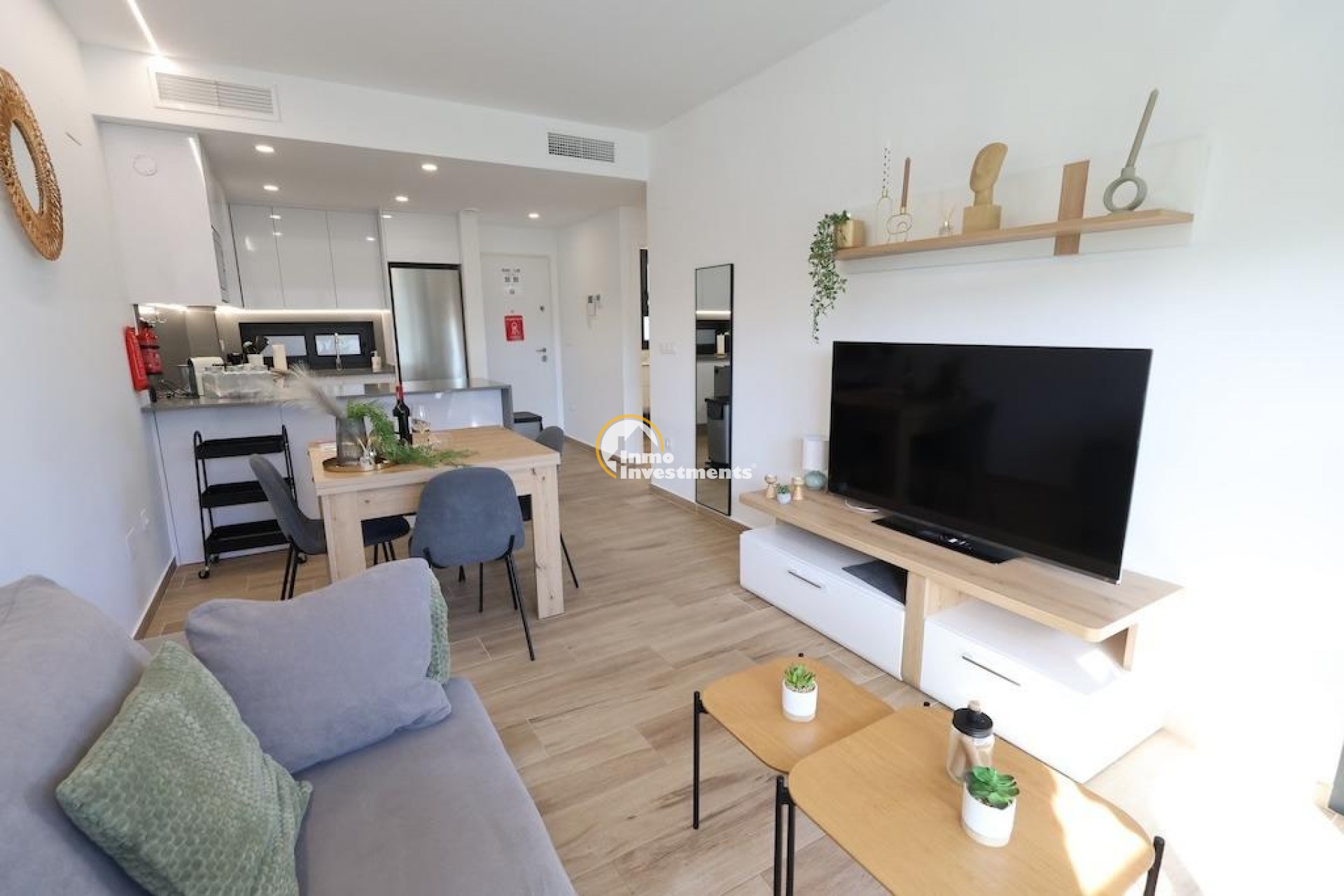 Apartamento Moderno y Listo para Entrar a Vivir en Villamartin ~~Ubicado en la codiciada zona de Villamartin, este impecable apartamento en la segunda planta, con dos dormitorios y dos baños, ofrece una experiencia de vida lujosa en una ubicación céntrica.~~La vivienda forma parte del popular Residential Valentino Golf 3, un moderno complejo residencial con diseño contemporáneo, amplias terrazas y una distribución funcional que garantiza luz natural y confort durante todo el año.~~Las zonas comunes cuentan con una gran piscina con jacuzzi, amplias áreas ajardinadas, zona infantil y gimnasio.~~Características de Valentino Golf 3~~Cerca del centro, campos de golf y playa~~Amplias terrazas~~Piscina y jacuzzi~~Gimnasio y zona infantil~~Plaza de aparcamiento privada para cada apartamento~~Distribución y Comodidades~~Dos amplios dormitorios con armarios empotrados~~Cocina abierta moderna con lavavajillas y lavadora en el cuarto de lavado del balcón~~Salón con acceso directo a una terraza soleada con vistas a la piscina comunitaria~~Extras~~Aire acondicionado y calefacción central~~Totalmente amueblado y equipado (excepto objetos personales)~~Ubicación ideal: a solo 15 minutos a pie del animado Villamartin Plaza, con una amplia oferta de bares y restaurantes. También cerca del encantador clubhouse de Villamartin, decorado con azulejos tradicionales y con terraza solárium.~~A pocos minutos en coche se encuentra el impresionante centro comercial Zenia Boulevard y las preciosas playas de Orihuela Costa, como La Zenia, Cabo Roig, Punta Prima y Playa Flamenca.~~Los amantes del golf disfrutarán de la proximidad a los mejores campos de la zona: Villamartin, Campoamor, Las Ramblas y Las Colinas, mientras que las familias pueden divertirse en el cercano Greenlands Adventure Golf.