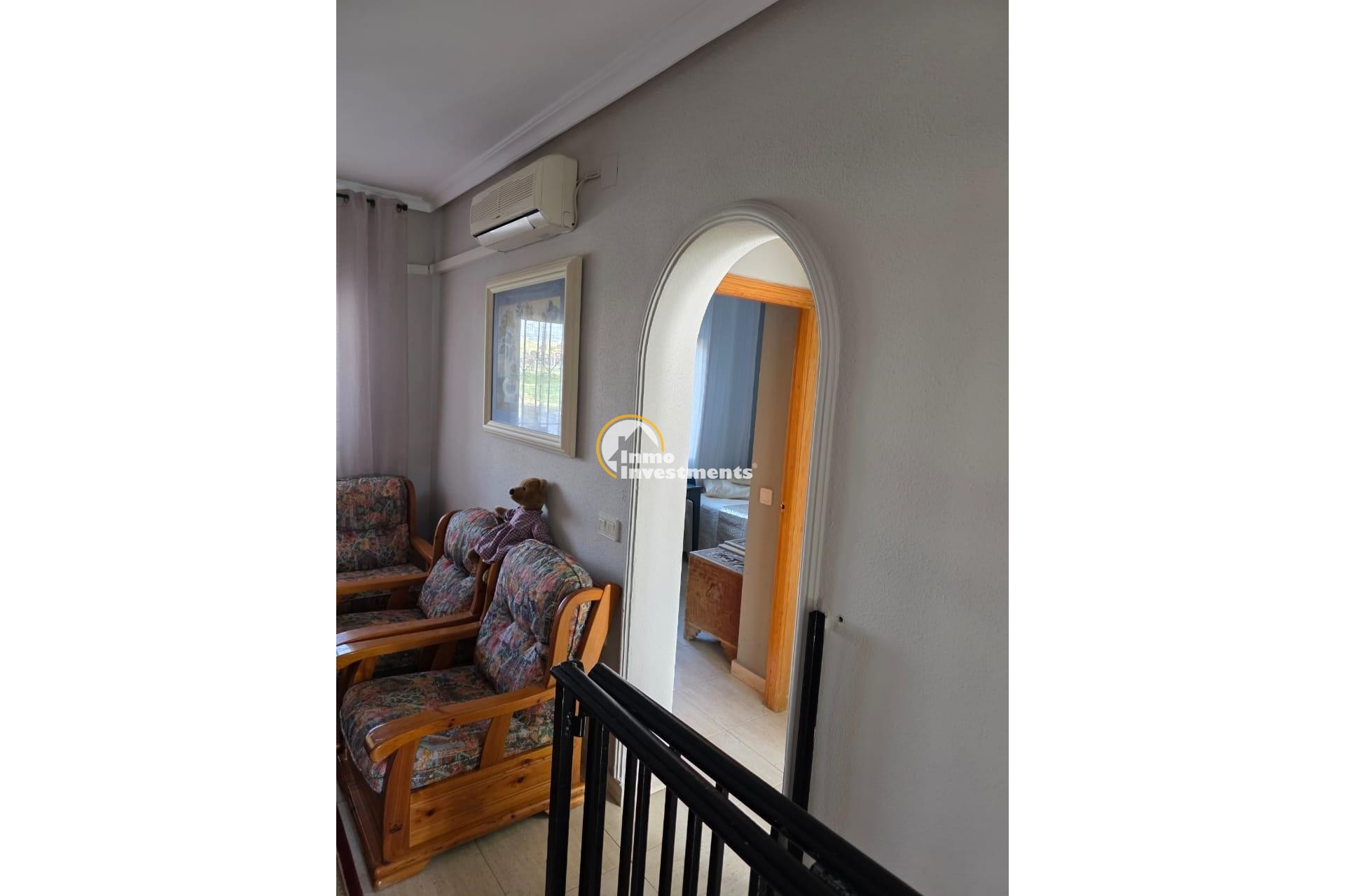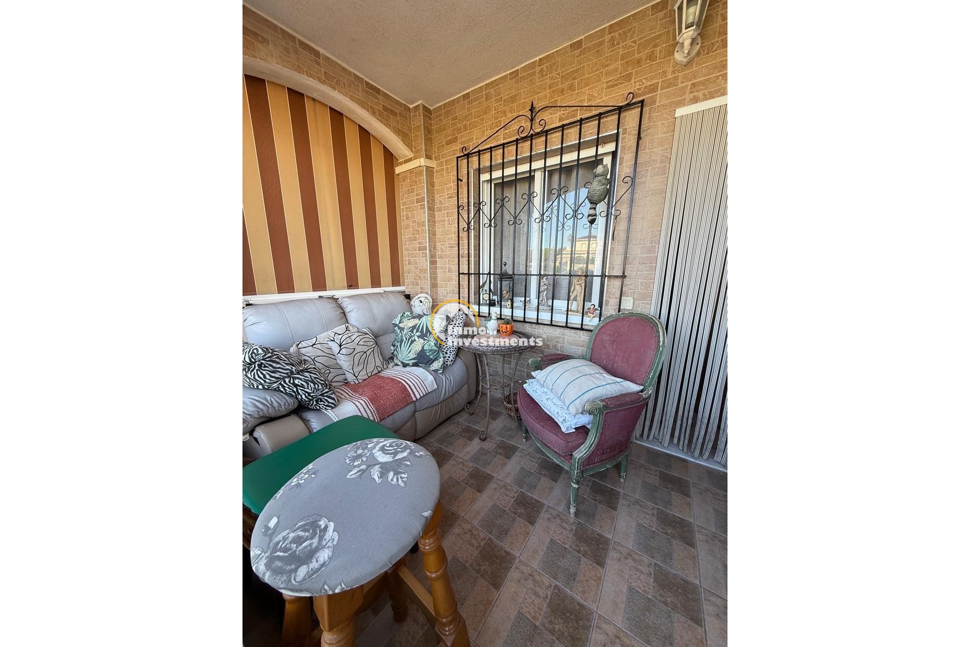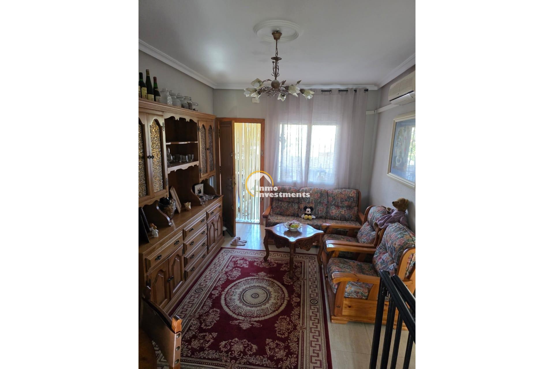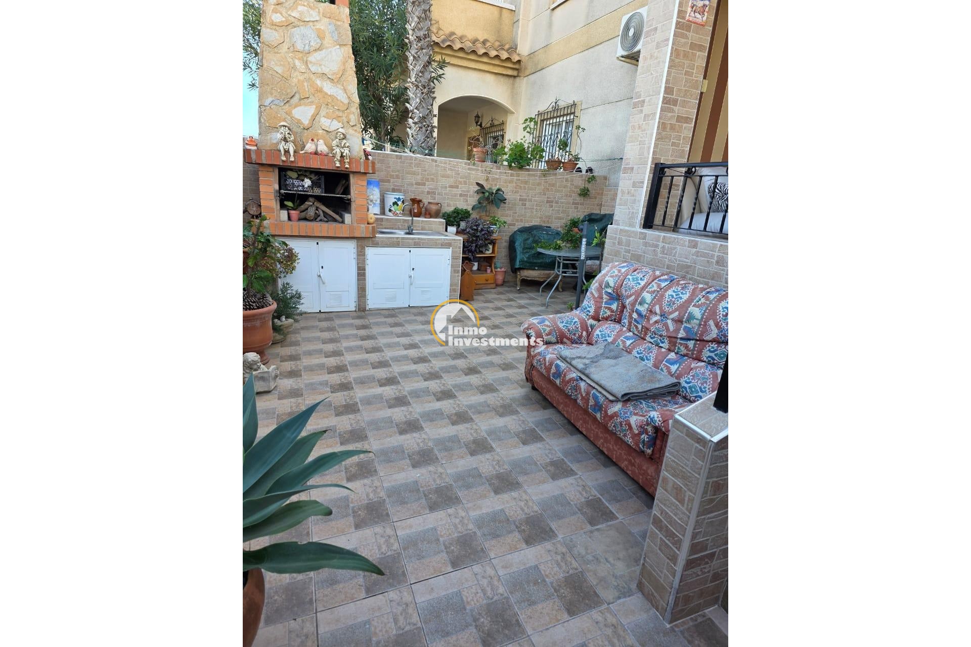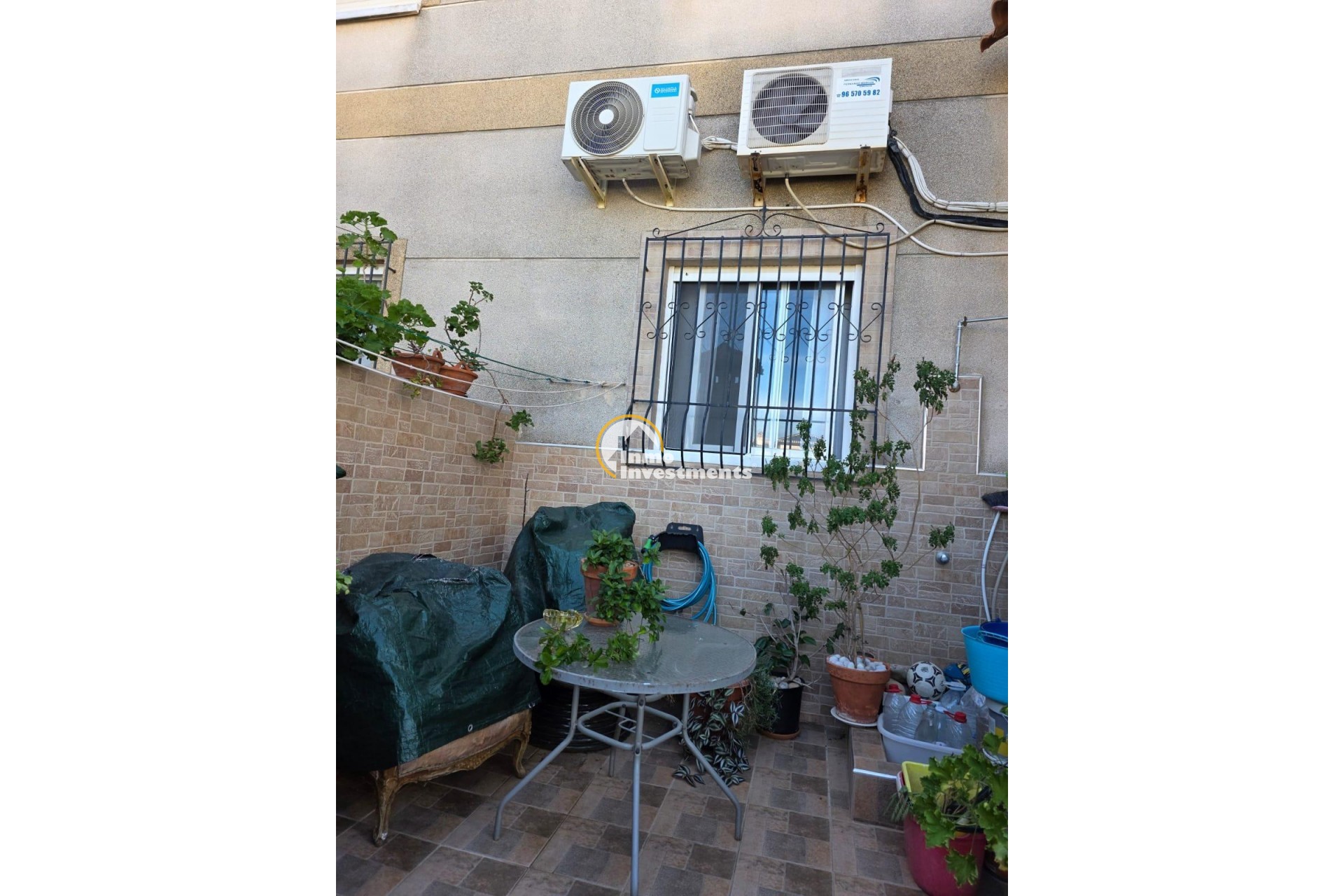 Acogedor chalet adosado en una de las zonas más demandadas de Torrevieja — Aguas Nuevas. La vivienda cuenta con 52 m2 construidos y una parcela de 50 m2, además de un sótano completamente reformado y habilitado como vivienda adicional de 70 m2, lo que ofrece un amplio espacio extra ideal para invitados, zona de ocio o despacho.~~La casa se distribuye en 2 dormitorios, 2 baños, salón luminoso con acceso a una terraza soleada, y cocina equipada. Dispone de armarios empotrados, aire acondicionado y trastero.~~Forma parte de una urbanización privada y segura, con amplias zonas verdes perfectas para disfrutar del aire libre, además de dos grandes piscinas comunitarias y un jardín que aportan un entorno tranquilo y familiar durante todo el año.~~Una propiedad en excelente estado, lista para entrar a vivir, situada cerca de todos los servicios, centros comerciales y las playas de Torrevieja.~~Ubicación: Aguas Nuevas, Torrevieja~Superficie total habitable: 52 m2 + 70 m2 de sótano reformado~2 dormitorios | 2 baños~Parcela de 50 m2 | Urbanización cerrada con piscina y zonas verdes~~Perfecta como residencia habitual, casa vacacional o inversión con alta rentabilidad.