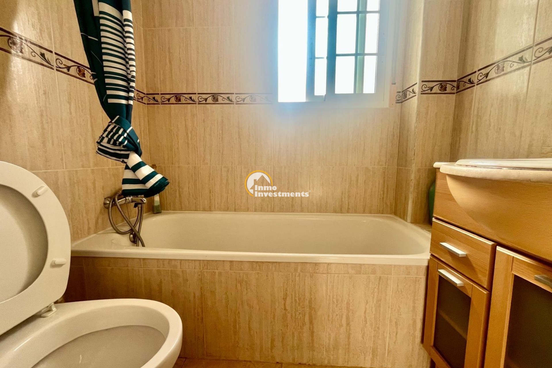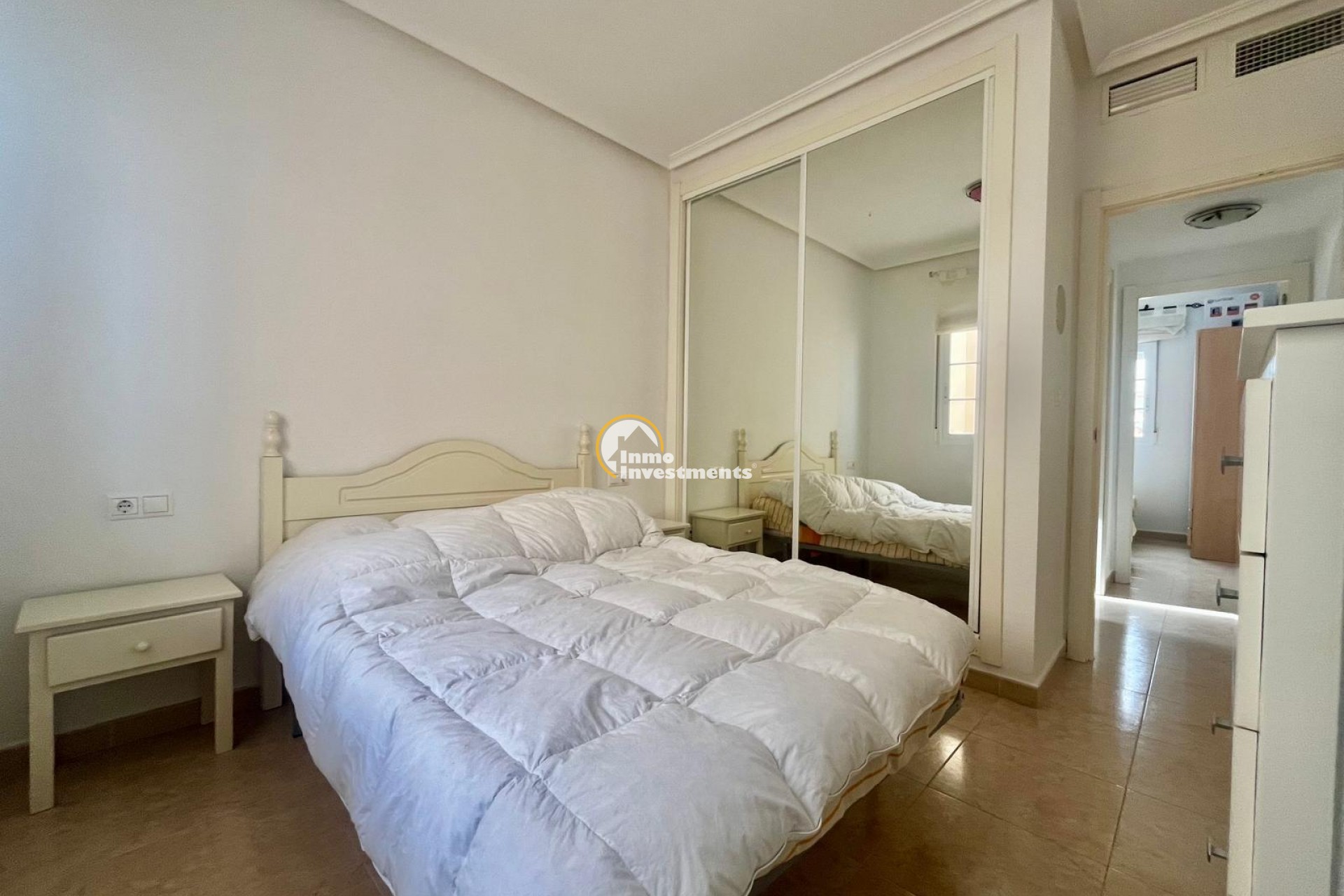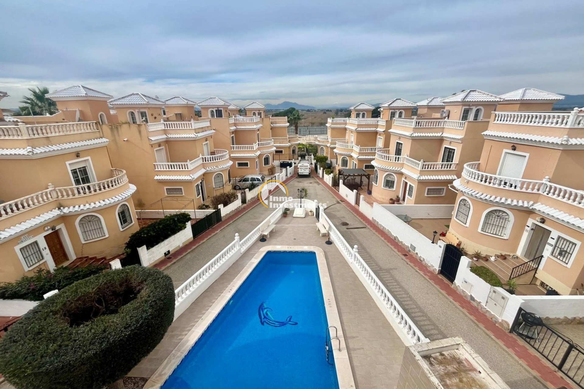 Bungalow planta alta con terraza y solárium en Urbanización La Marina – San Fulgencio~~Se vende acogedor bungalow en primera planta situado en una tranquila y cuidada urbanización con piscina comunitaria en La Marina (San Fulgencio), una zona muy demandada por su ambiente agradable y cercanía al mar.~~La vivienda dispone de terraza privada en planta baja, ideal como zona de acceso y espacio exterior adicional para disfrutar al aire libre. En la primera planta encontramos un luminoso salón-comedor, cocina independiente, dos habitaciones, un baño completo y un aseo, ofreciendo una distribución cómoda y funcional.~~En la planta superior cuenta con un amplio solárium privado con bonitas vistas abiertas a la piscina, a las montañas y al entorno natural, perfecto para disfrutar del sol durante todo el año, relajarse o crear una agradable zona chill-out.~~Dispone de preinstalación de aire acondicionado por conductos ya realizada, lista para instalar equipos.~~Ubicada en urbanización con piscina comunitaria, cerca de servicios, comercios y zonas de ocio, lo que la convierte en una opción ideal tanto como vivienda habitual, segunda residencia o inversión vacacional.~~A tan solo 5 km se encuentran las conocidas playas de La Marina, amplias playas de arena fina y dunas naturales, reconocidas por su belleza y aguas limpias. Un entorno ideal para disfrutar del mar, largos paseos, naturaleza y agradables zonas de restauración durante todo el año.~~Una excelente oportunidad para disfrutar del sol y la tranquilidad de la Costa Blanca en una vivienda con grandes posibilidades.