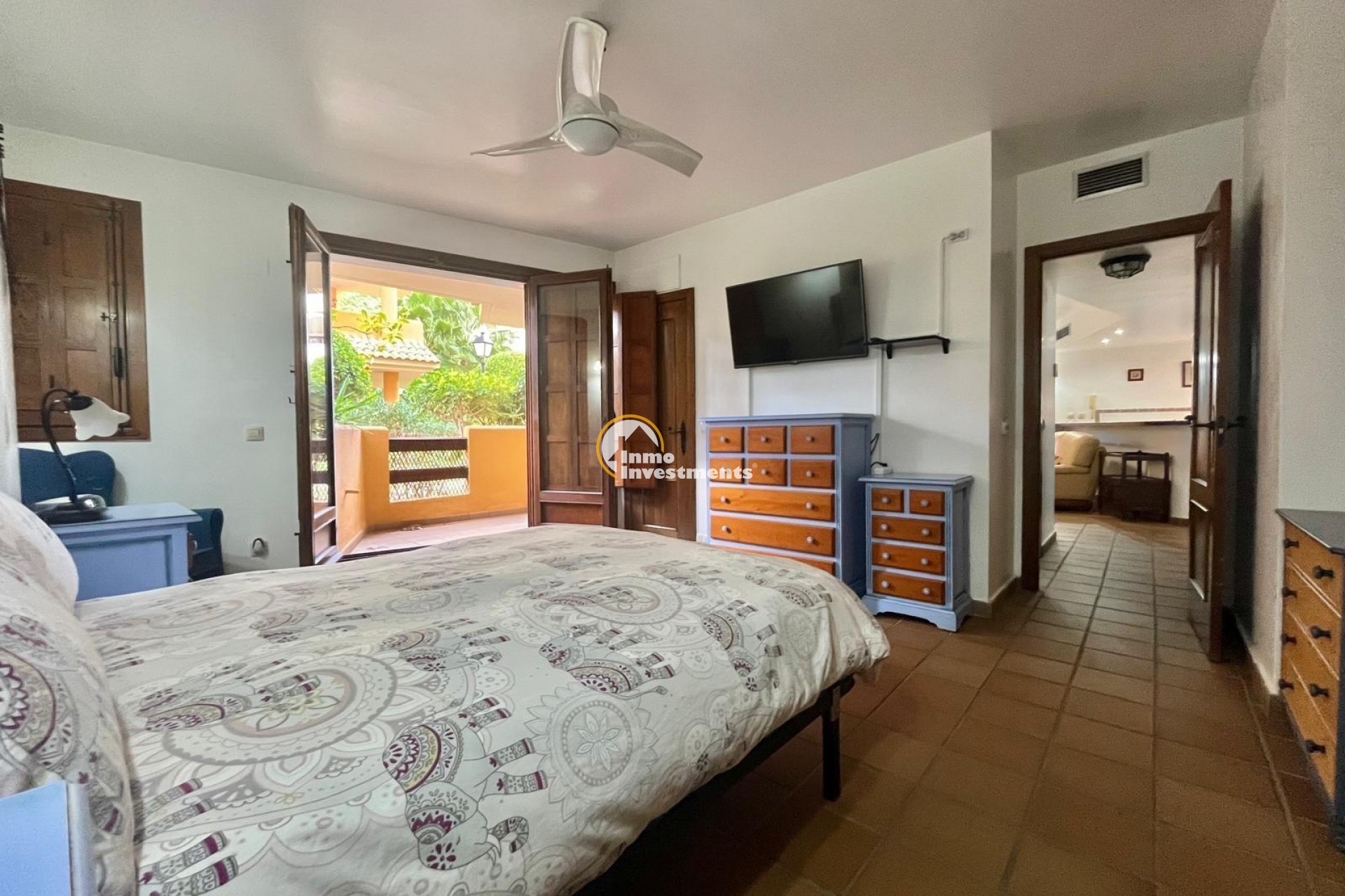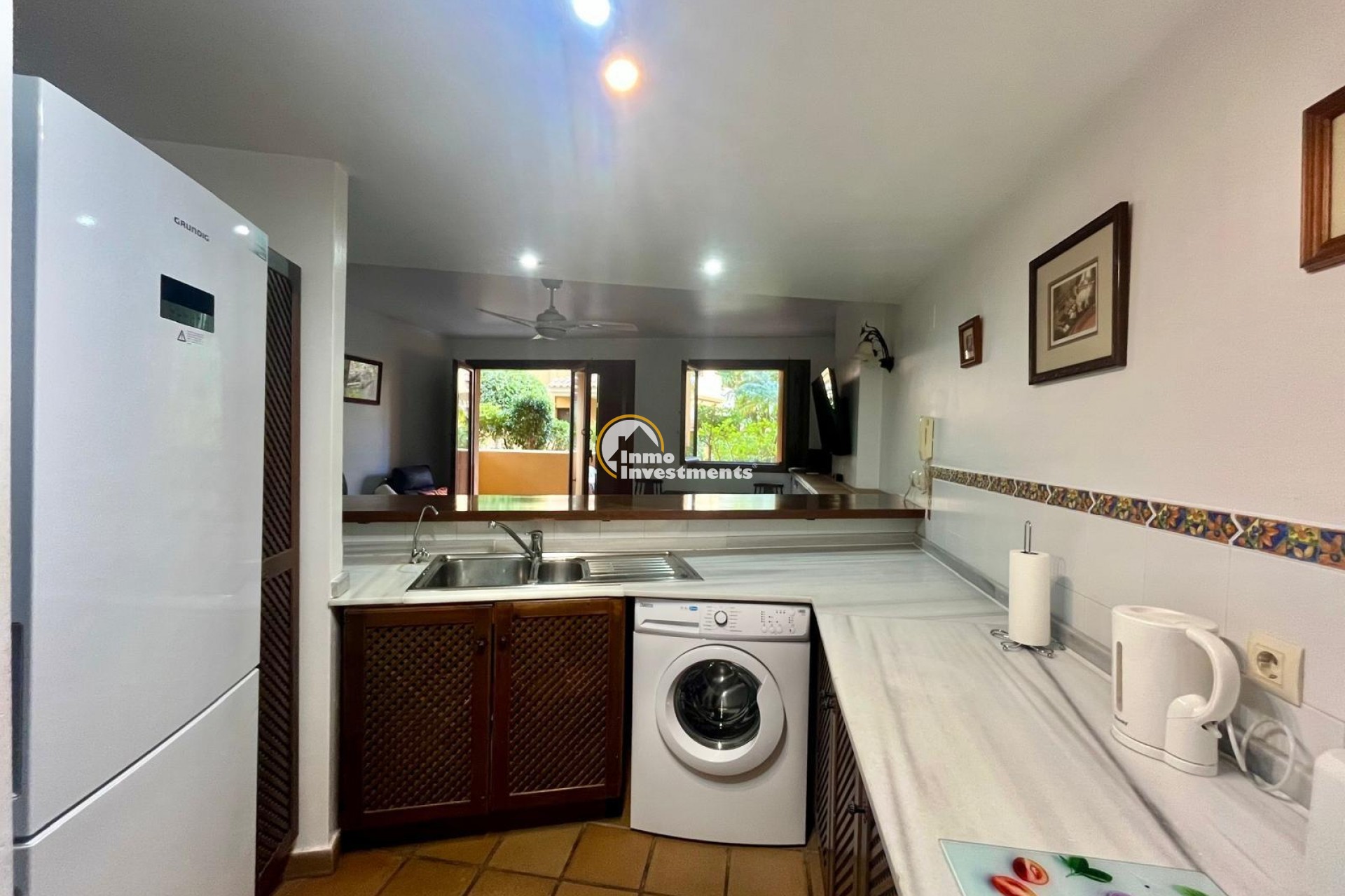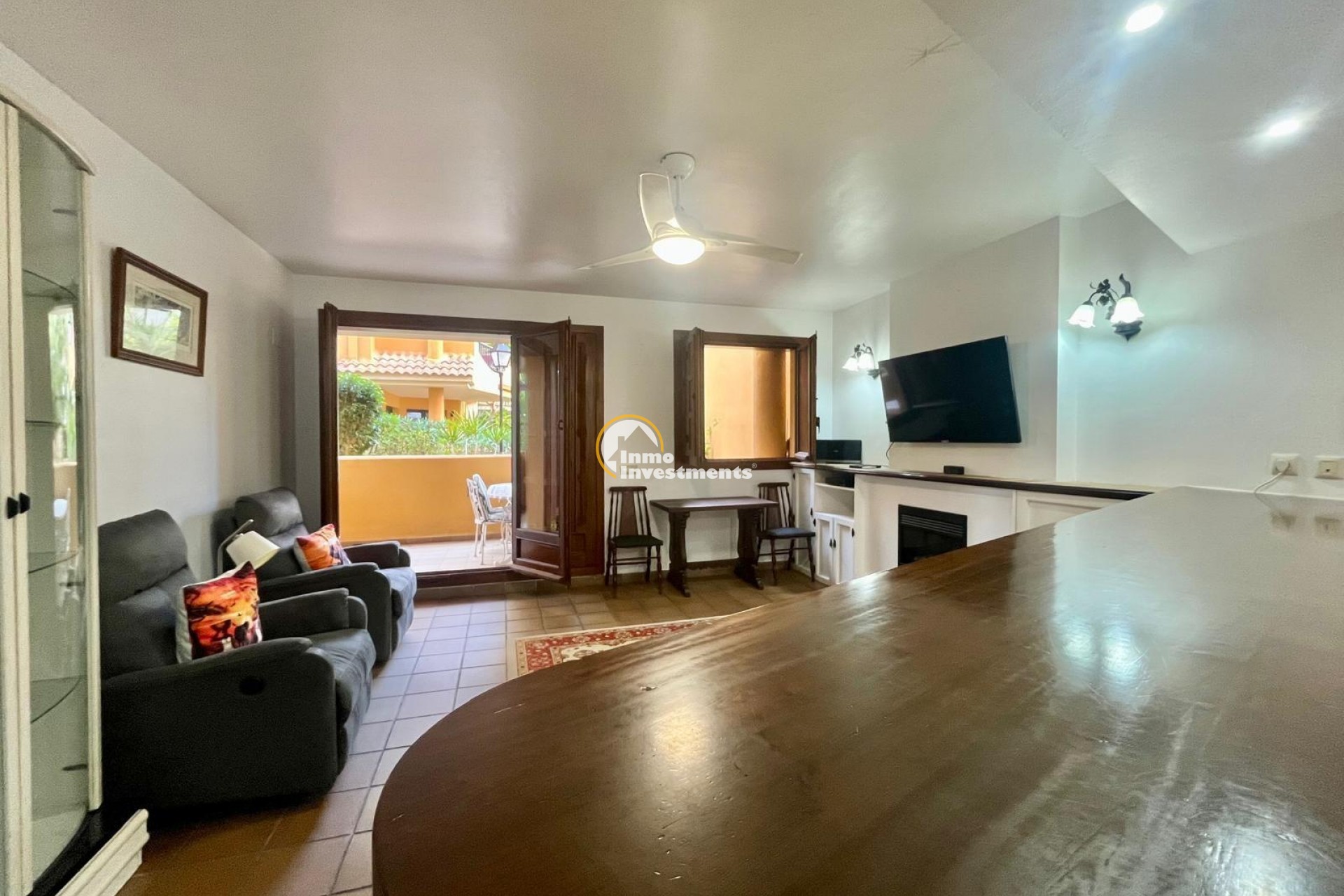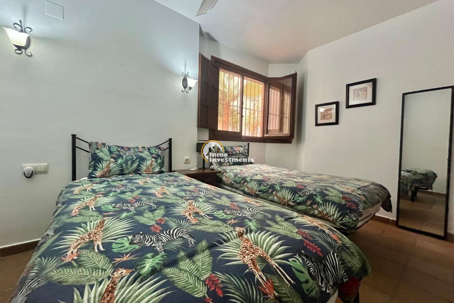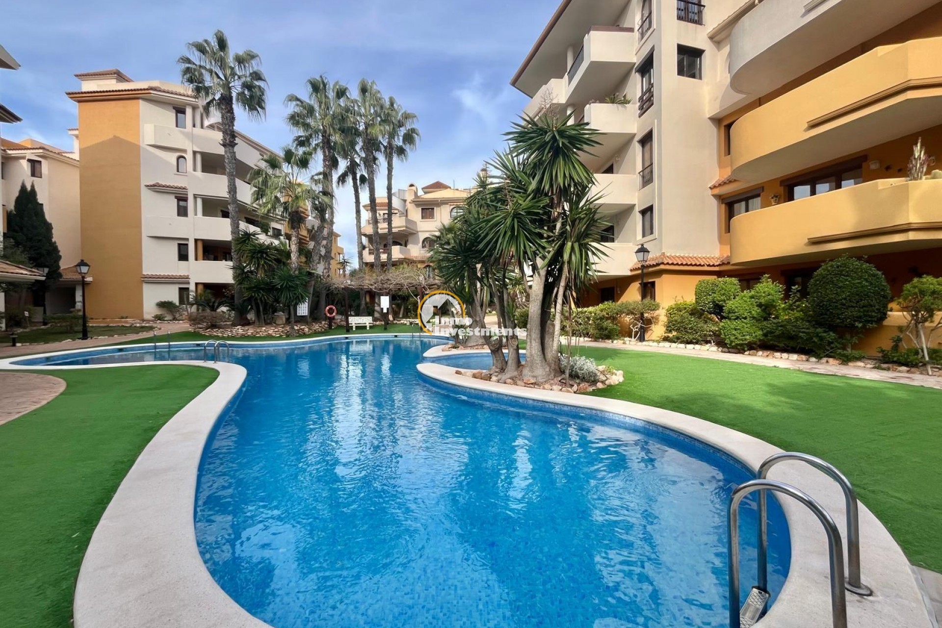 Vive el auténtico estilo mediterráneo a pocos minutos andando del mar – Panorama Park, Punta Prima (Torrevieja)~~Descubre este acogedor bungalow en planta baja situado en la prestigiosa urbanización Panorama Park, una de las más valoradas de Punta Prima por sus jardines tropicales, piscinas comunitarias, seguridad y su cercanía al mar y a todos los servicios. Un entorno residencial tranquilo, exclusivo y a pocos minutos andando de la playa y del paseo marítimo.~~La vivienda se encuentra en buen estado y presenta el característico estilo del residencial. Dispone de dos dormitorios amplios y un baño completo, además de un salón espacioso con cocina abierta y barra hacia el salón, creando un ambiente cómodo, práctico y muy agradable para el día a día.~~Cuenta con aire acondicionado central y una amplia terraza ideal para disfrutar del clima mediterráneo durante todo el año, comidas al aire libre o momentos de relax. Incluye además plaza de parking subterránea con acceso directo a la vivienda, aportando máxima comodidad y seguridad.~~Panorama Park destaca por su ambiente cuidado y sus zonas verdes, con piscinas comunitarias y áreas comunes pensadas para el descanso. Punta Prima es una zona costera consolidada, muy demandada tanto para residencia habitual como para vacaciones, con restaurantes, supermercados, centros comerciales y excelentes conexiones con Torrevieja y Orihuela Costa.