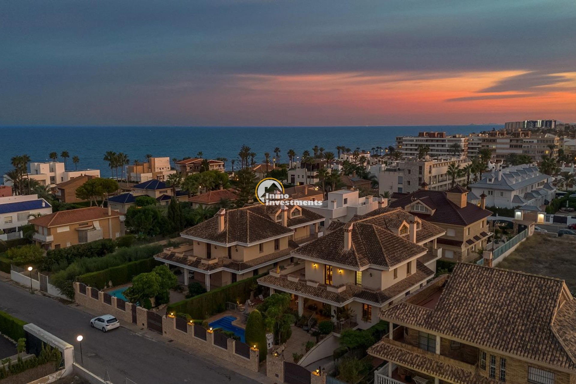 Descubre esta impresionante villa de lujo ubicada en la exclusiva zona de La Veleta, Torrevieja. Con una superficie construida de 728 m2 y una parcela generosa de 700 m2, esta propiedad ofrece un ambiente perfecto para disfrutar del estilo mediterráneo con todas las comodidades modernas que uno podría desear. La vivienda cuenta con seis amplios dormitorios dobles y seis baños completos, garantizando espacio y privacidad para toda la familia o invitados.~~La joya de esta espectacular casa es su piscina privada rodeada por elegantes áreas exteriores donde podrá relajarse bajo el sol o compartir momentos inolvidables en compañía familiares y amigos al aire libre.~~Esta villa se encuentra a tan solo unos pasos del mar (50 metros), lo que brinda acceso rápido a hermosas playas e impresionantes vistas panorámicas desde diversas estancias; además está situada dentro de una urbanización tranquila pero cercana a todos los servicios necesarios como colegios, centros comerciales hospitales y zonas infantiles.~~Con buena conexión mediante autobuses cercanos,y gracias al excelente estado general en el cual se mantiene este hogar puede ser considerado ideal tanto para residencia permanente como inversión vacacional.Si busca confort,luxo,y ubicación privilegiada;esta Villa le espera.