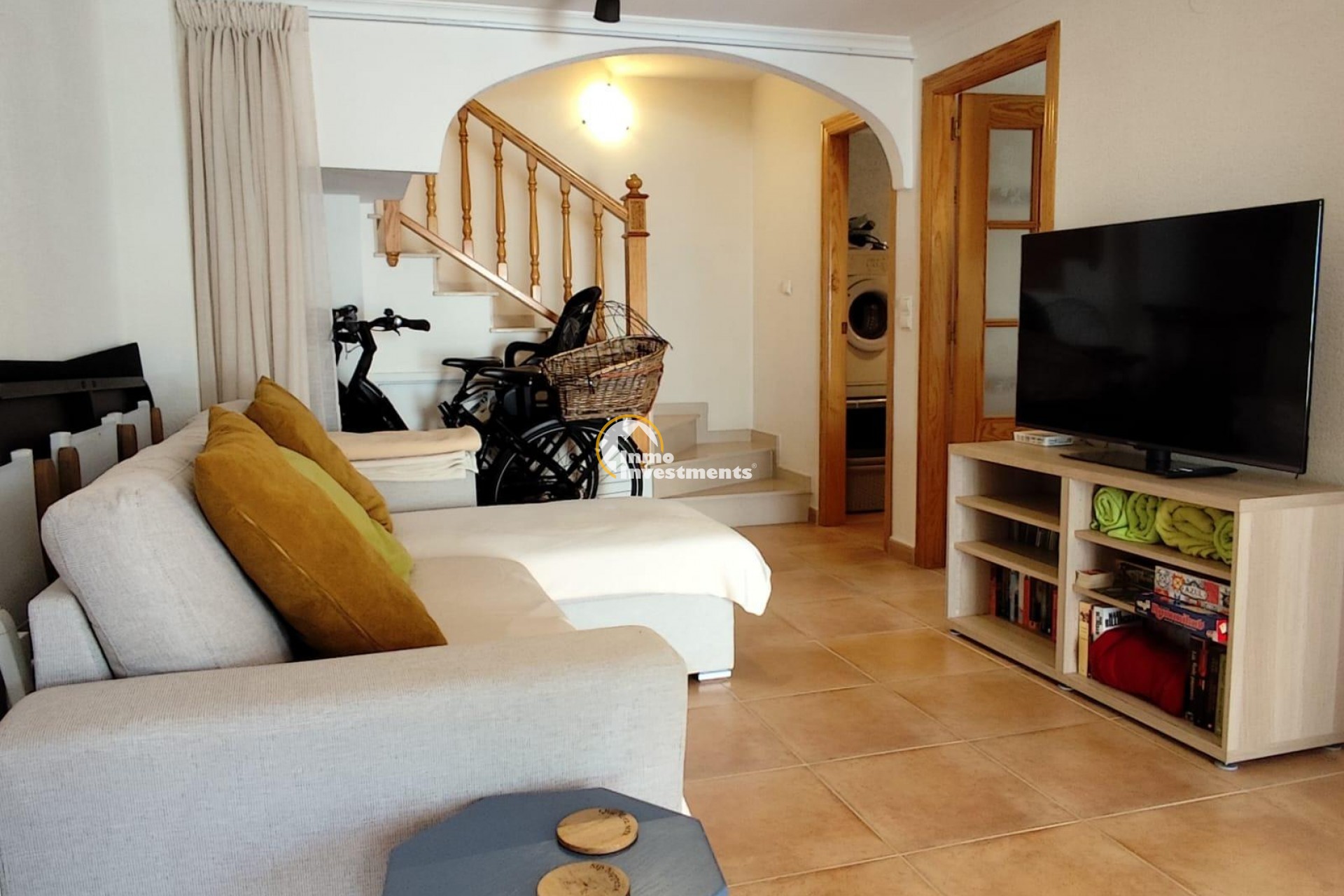 Bungalow con gran jardín, terraza y solárium en Orihuela Costa (Perla del Mar IV)~~Se vende bungalow en la urbanización Perla del Mar IV, en Orihuela Costa, en una zona tranquila y bien comunicada, ideal tanto como vivienda habitual, segunda residencia o inversión.~~La vivienda dispone de 2 dormitorios y 2 baños, un amplio salón-comedor, cocina equipada y galería. Se vende completamente amueblada y equipada con aire acondicionado, lista para entrar a vivir.~~Destaca por su gran espacio exterior: jardín privado de 60 m2, amplia terraza y solárium, perfectos para disfrutar del sol durante todo el año.~~La urbanización cuenta con piscina comunitaria y zonas comunes bien cuidadas.~~2 habitaciones~2 baños~Jardín privado de 60 m2~Terraza y solárium~Aire acondicionado~Amueblado~Piscina comunitaria~Año de construcción: 2002~~Ubicada en una zona con todos los servicios cercanos, playas, comercios y ocio.~~Una excelente oportunidad en la Costa Blanca.