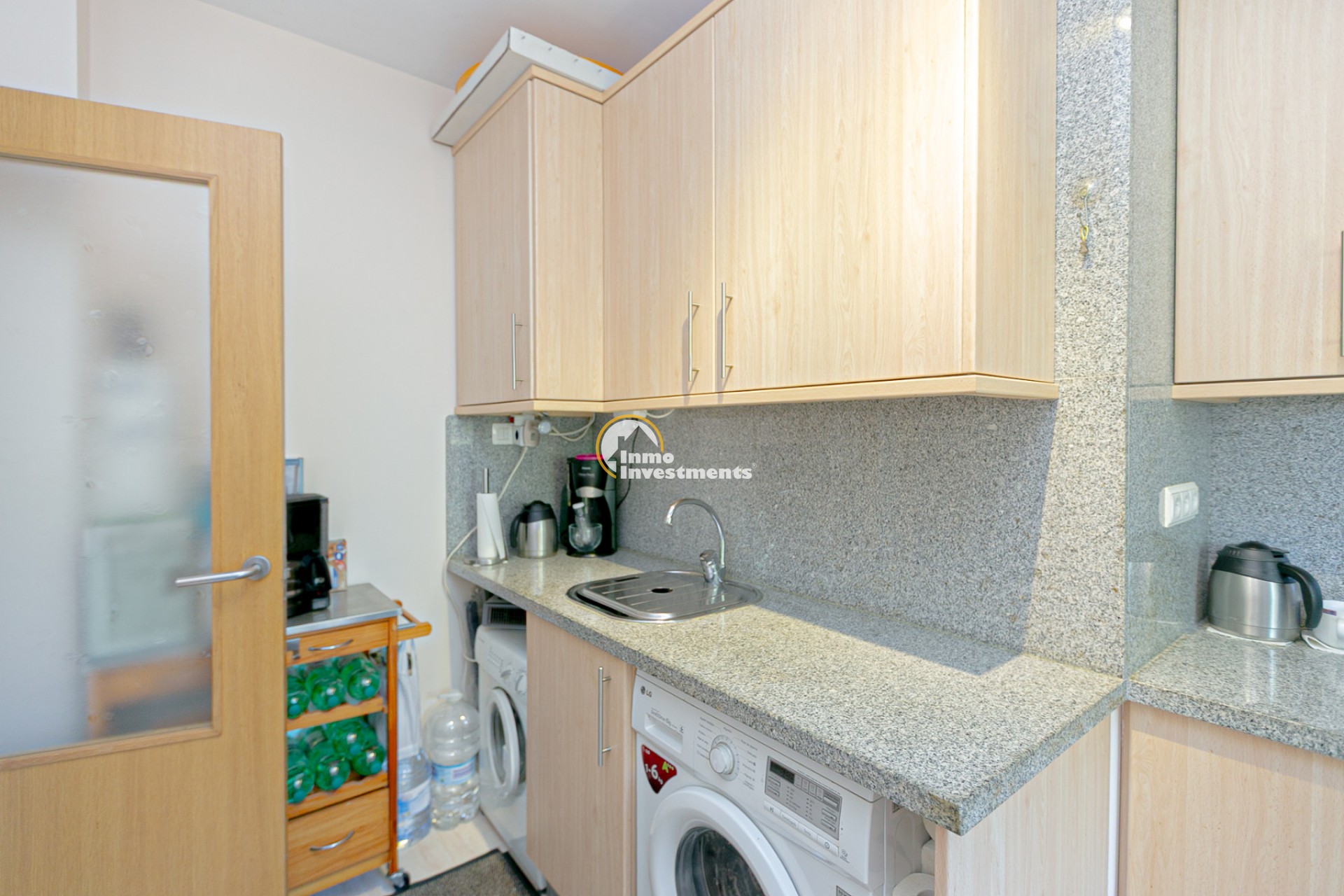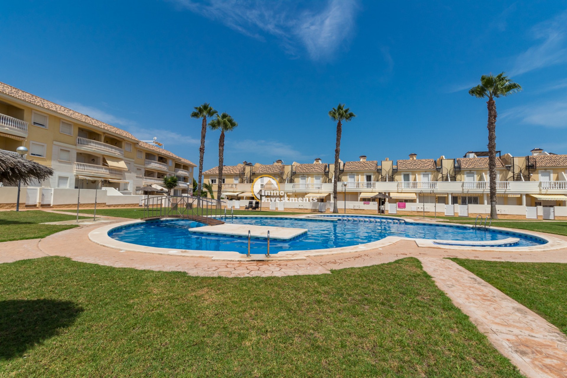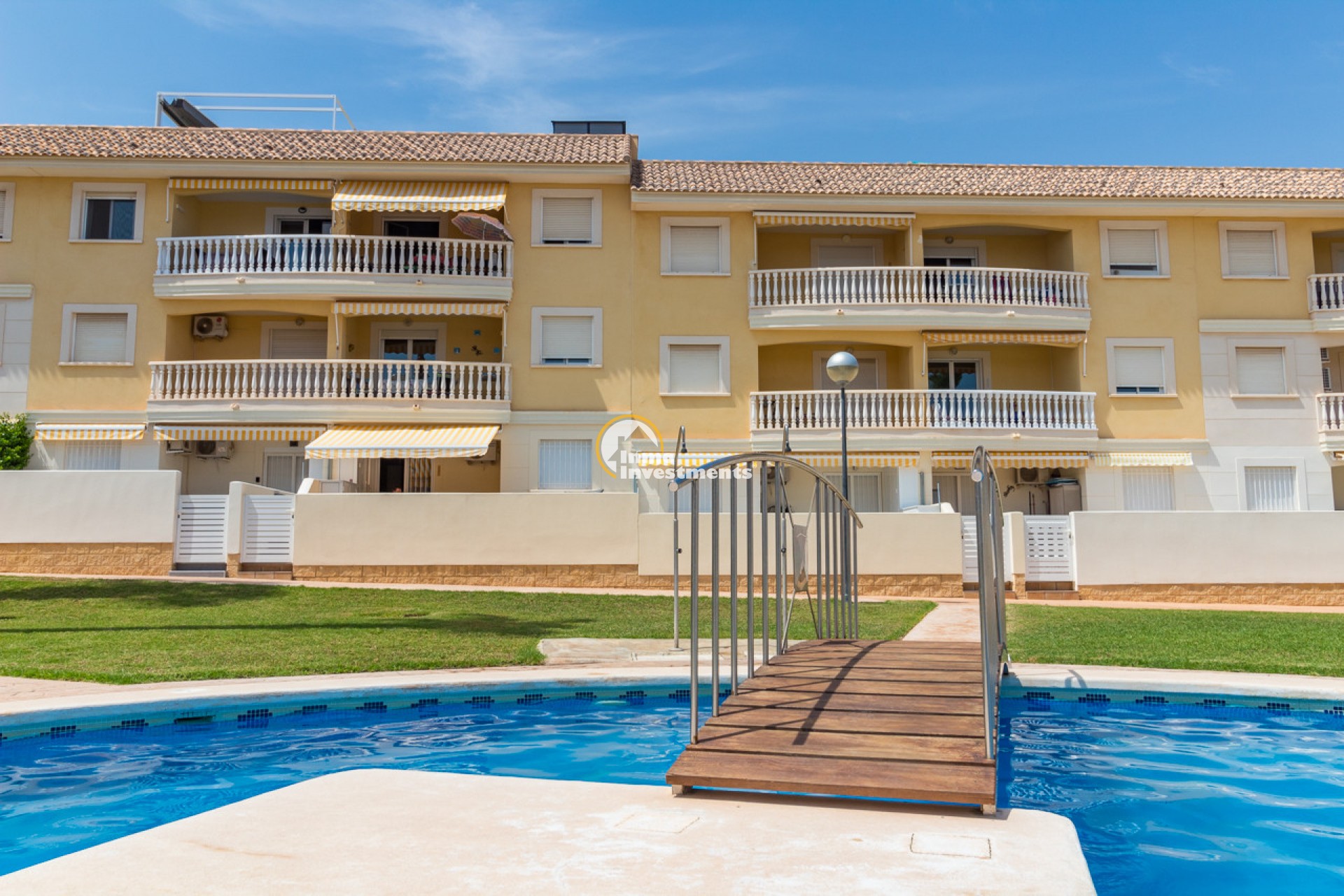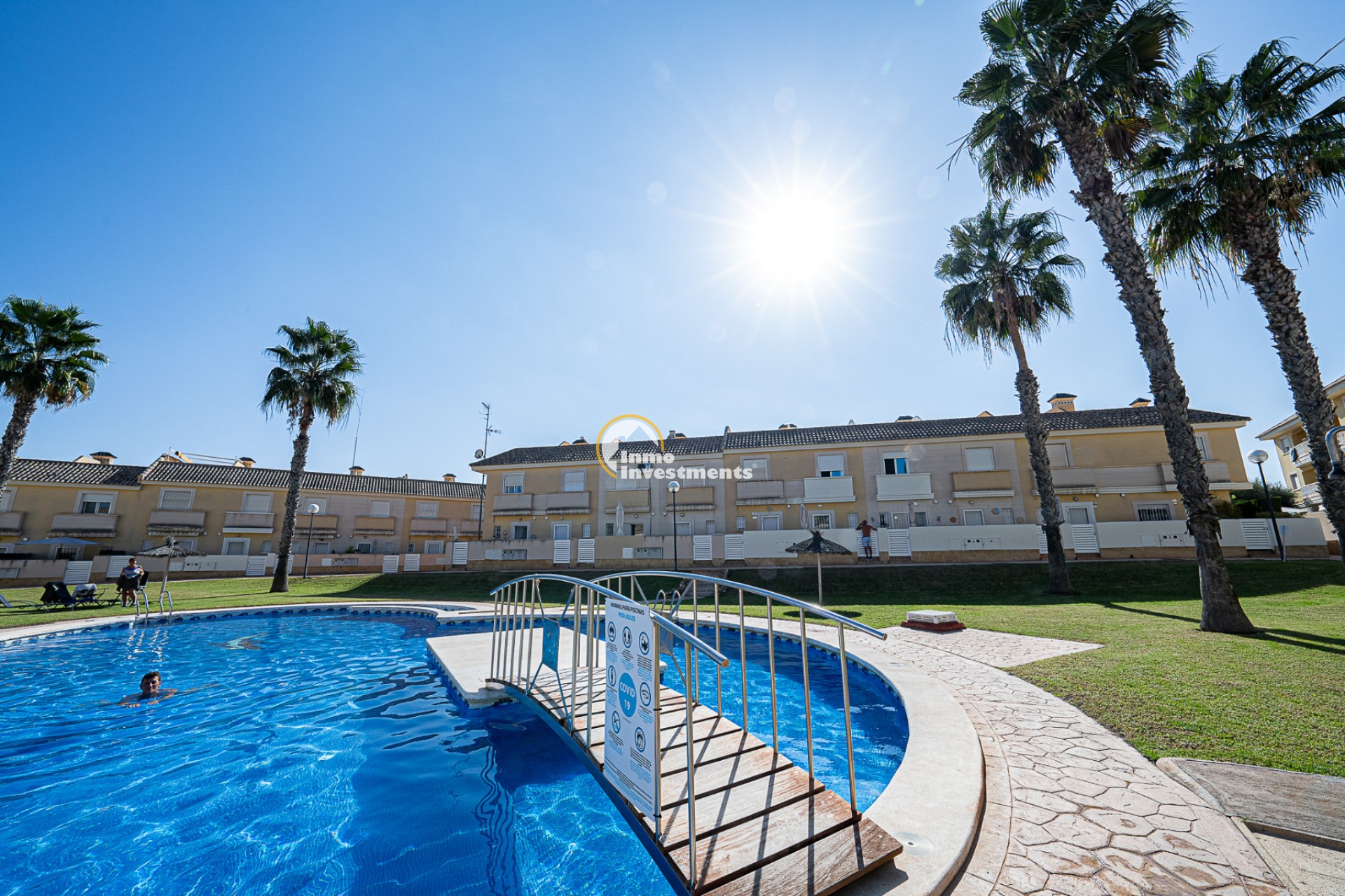 Le complexe résidentiel offre de vastes espaces verts particulièrement bien entretenus ainsi qu’une grande piscine commune. Boutiques, bars et restaurants se trouvent à quelques minutes à pied, tandis que certaines des plus belles plages de la Costa Blanca sont accessibles en quelques minutes en voiture.